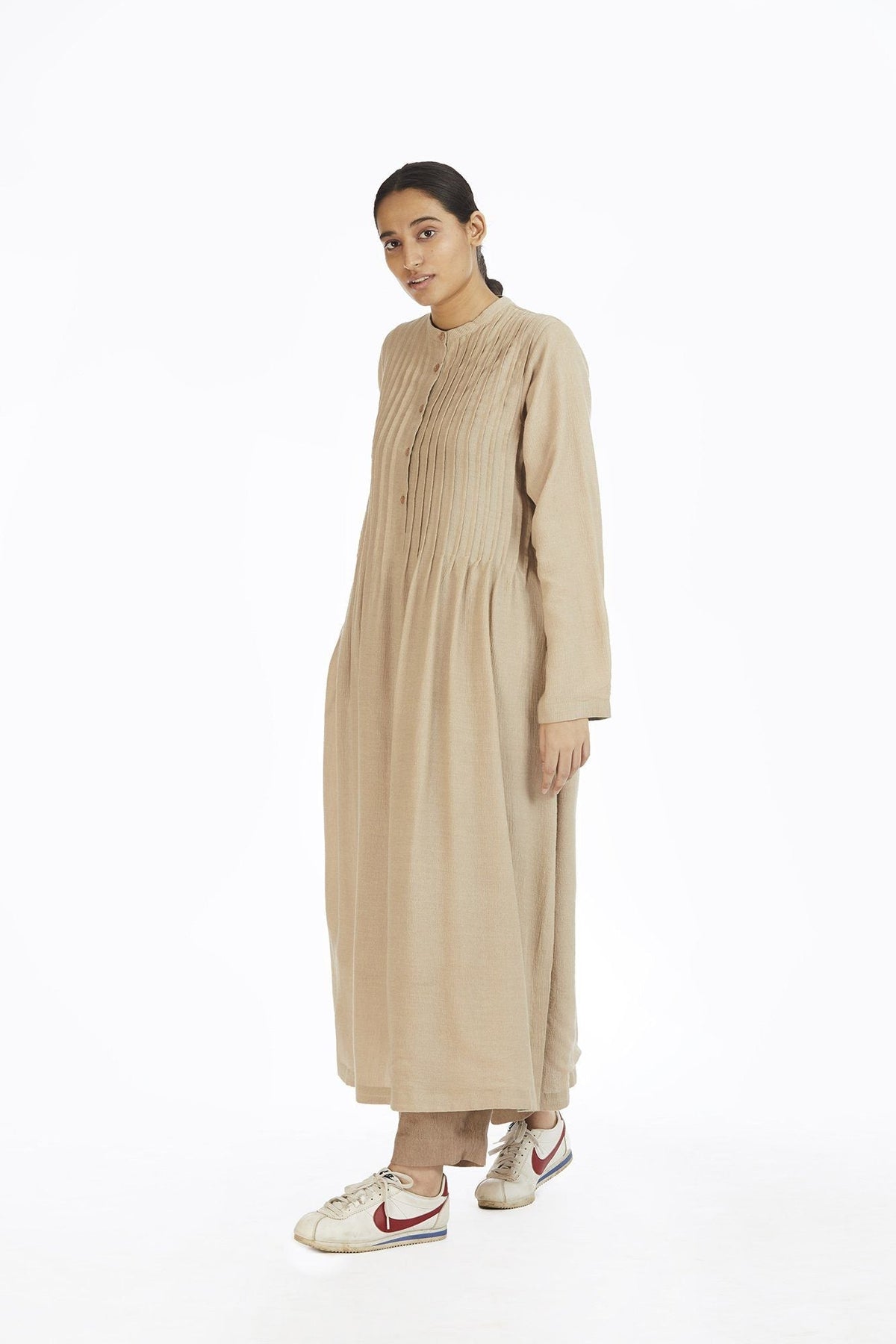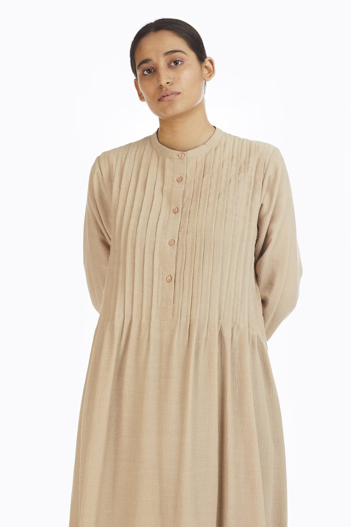 Handwoven in Bamboo , this dress makes for a structured and comfortable silhouette. It can be dressed up or down making this dress a wardrobe essential. Made with 100% upcycled bamboo fabric; hand woven in West Bengal , India.