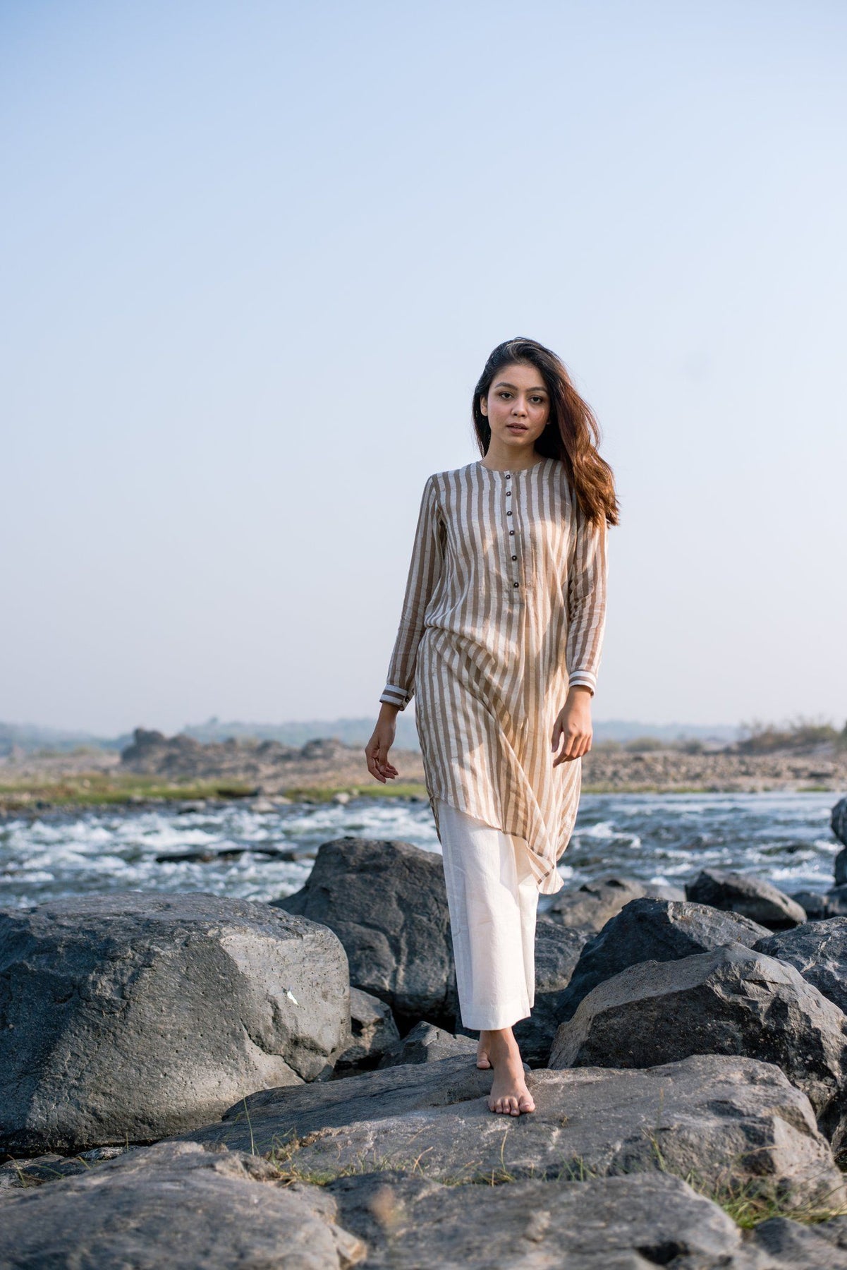 Alter Ego means “second self.” A youth-centric, sustainable brand from India, designing conscious apparel using handwoven fabrics with a focus on age-old Indian crafts and techniques. The label was started by Vishwa Sorathia with a vision to unify sartorial brilliance and culture. Based in Gujarat, this earth-friendly fashion house prides itself on a design philosophy rooted in minimalism and the art of slow living. Simplicity runs through their eclectic collections, preserving the raw and organic feel of handloom fabrics.