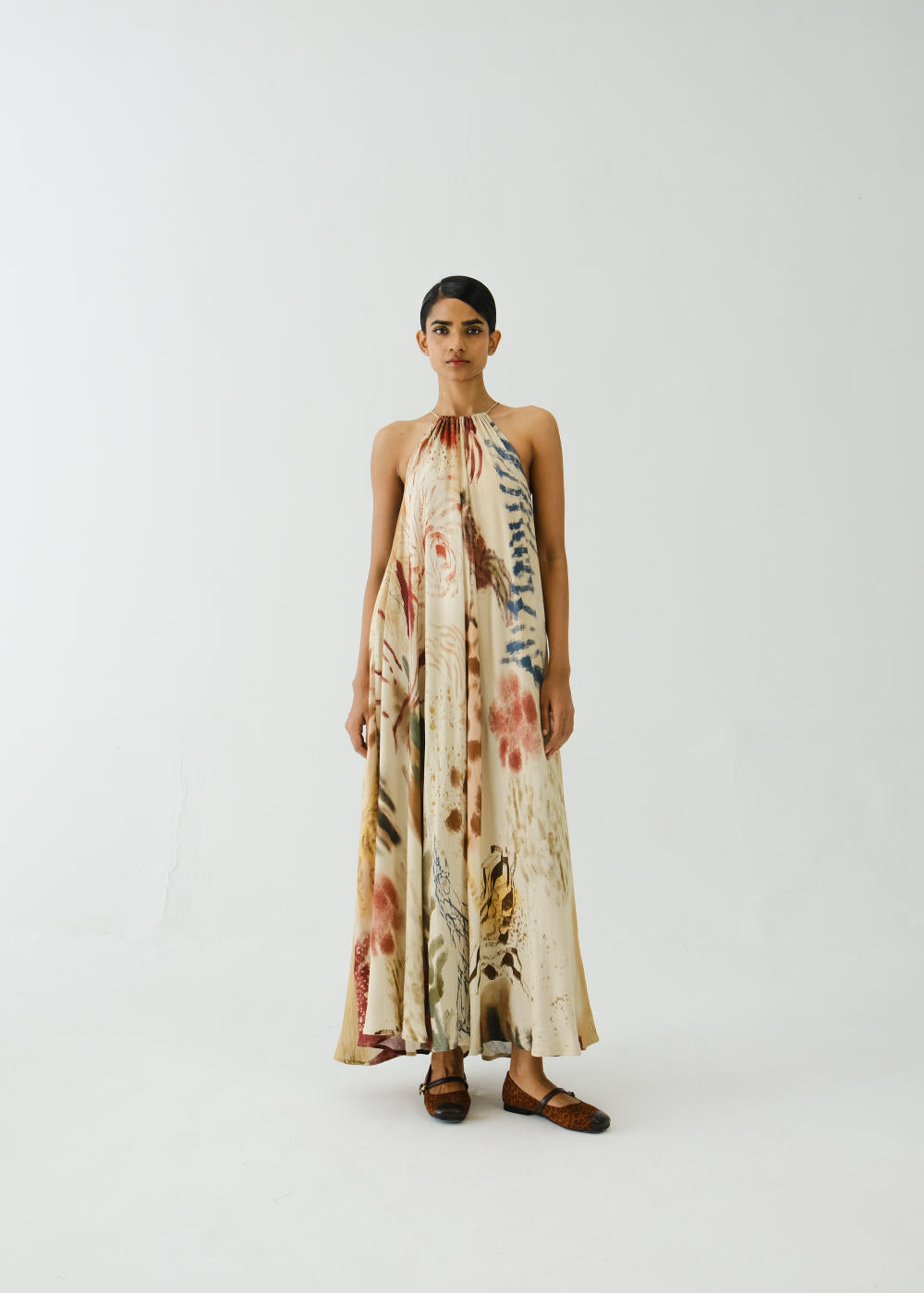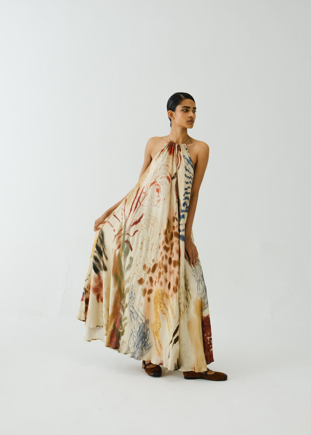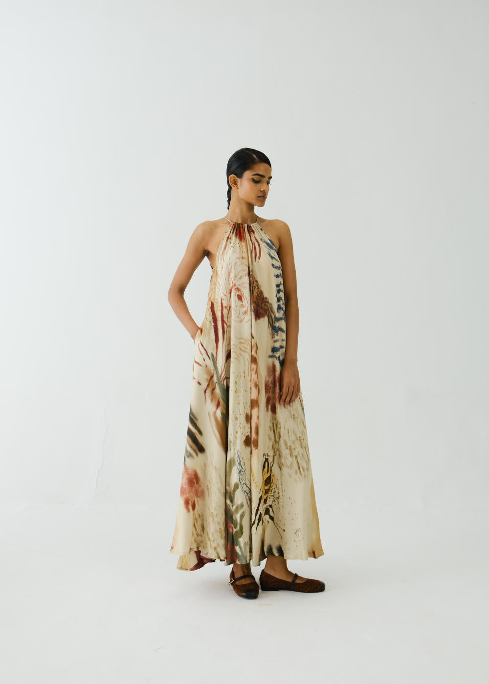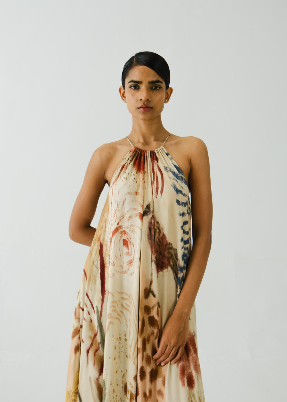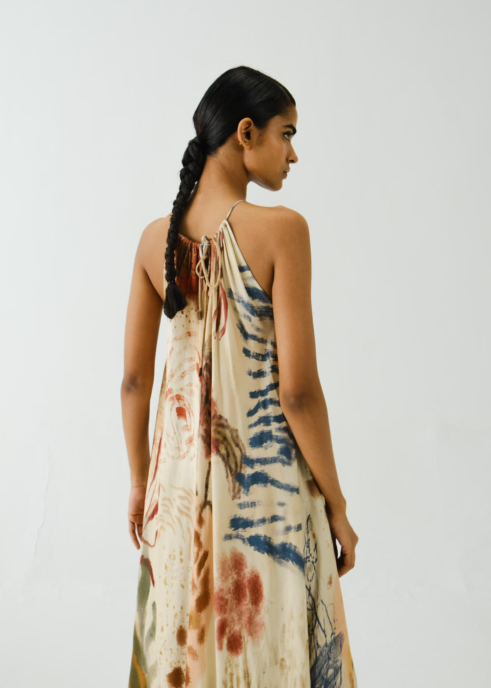 A flowy Dress crafted with careful attention to detail, the adjustable drawstring neckline allows for a customizable fit, ensuring comfort and style tailored to your preference. Its ankle length strikes the perfect balance between chic and practicality, while the sleeveless design provides freedom of movement and breathability.