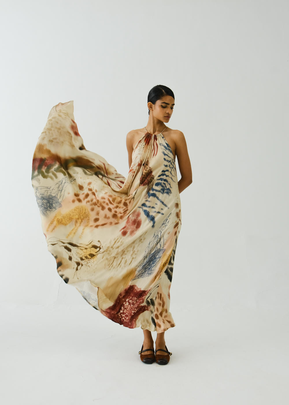 CORD blurs the line between art and attire in a way few labels dare to. Here, fabrics become canvases; illustrations—drawn by hand, steeped in imagination—flow across silhouettes that feel sculptural yet deeply wearable. Each piece has a texture of memory to it, as if it carries echoes of a past life, now reframed for a contemporary world.