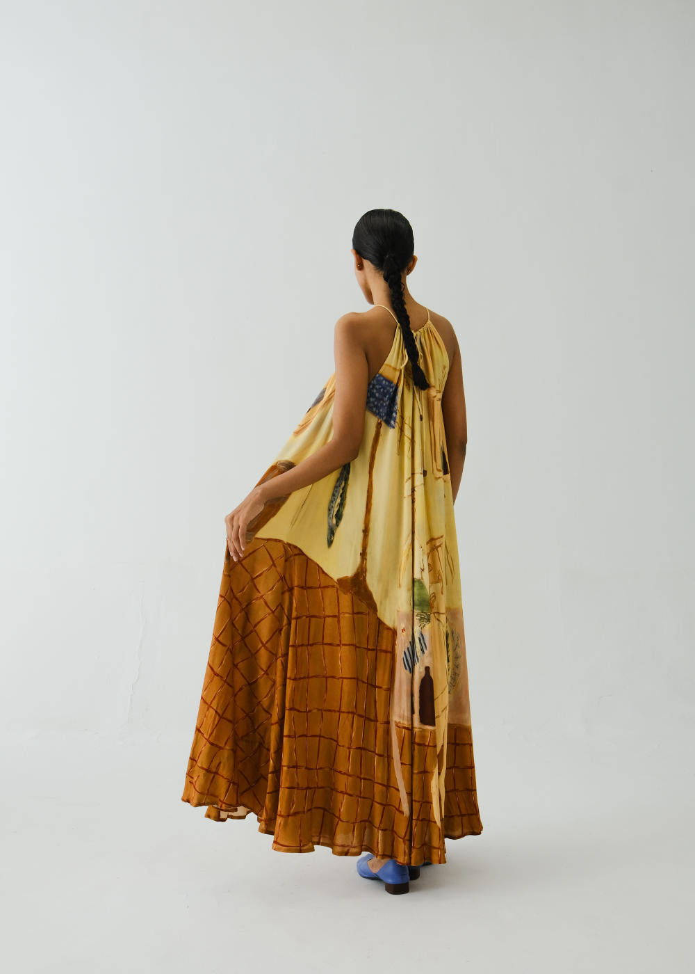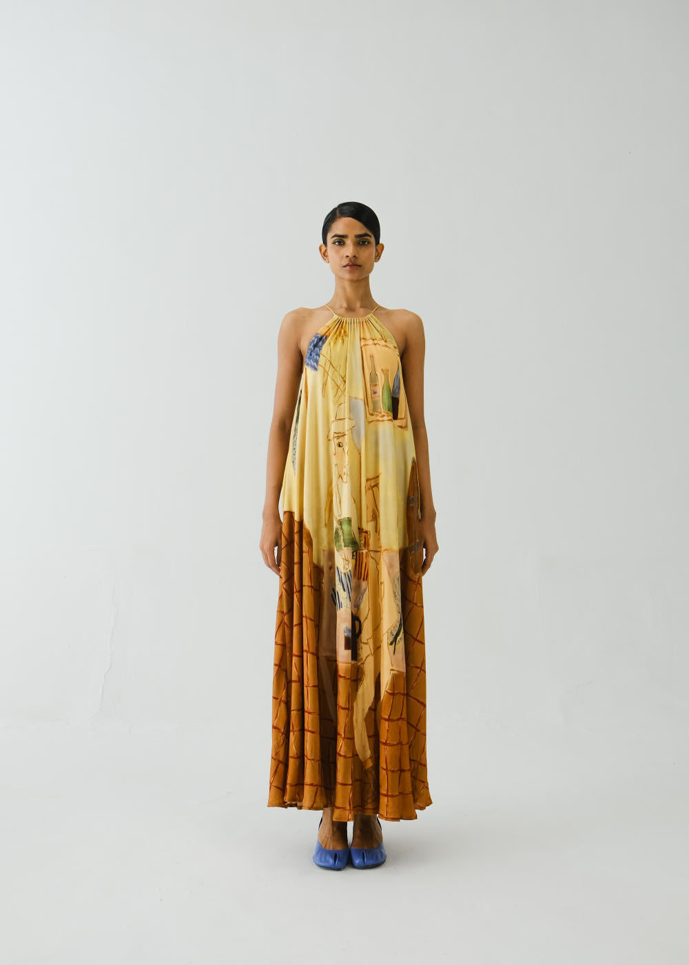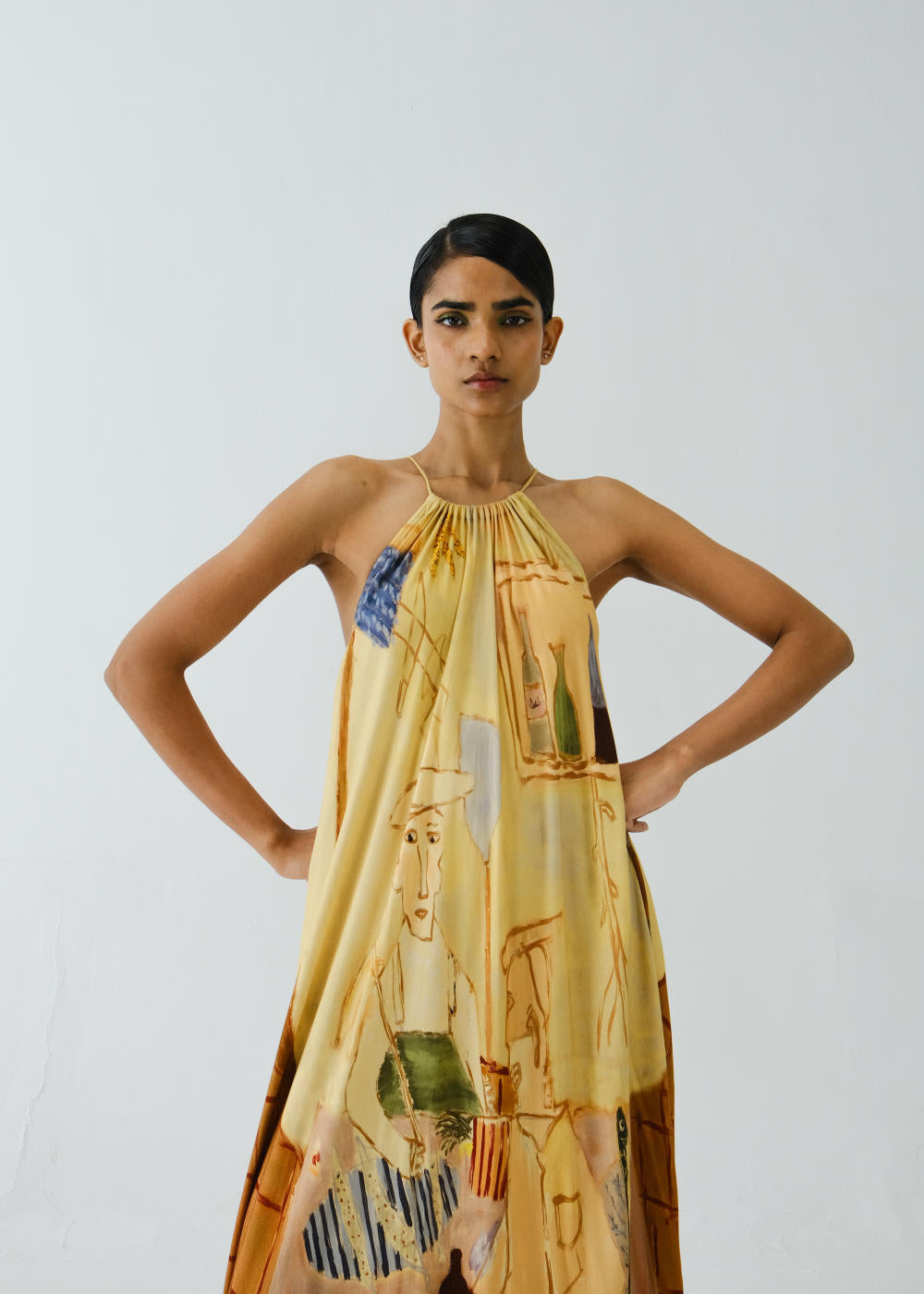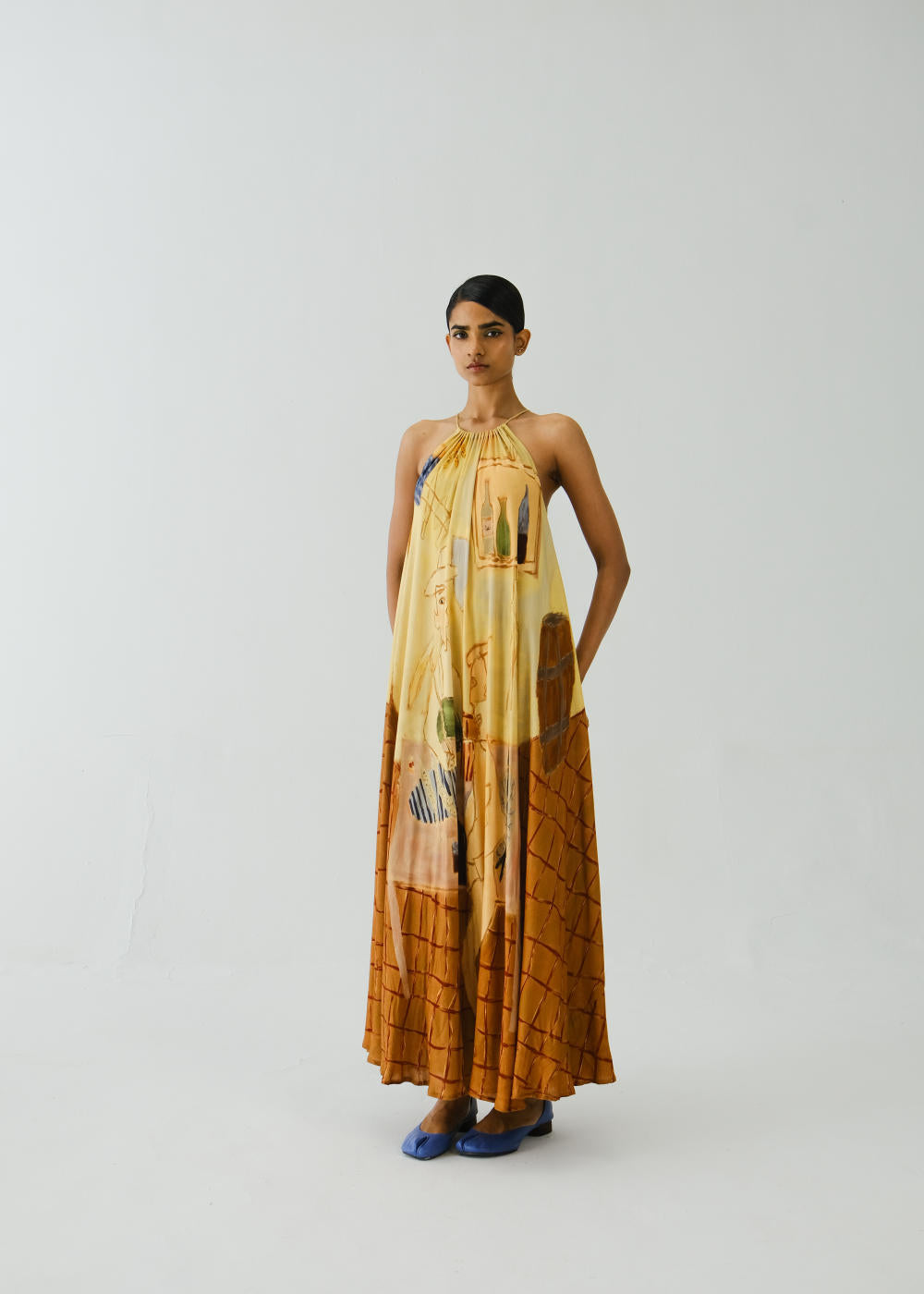 A flowy Dress crafted with careful attention to detail, the adjustable drawstring neckline allows for a customizable fit, ensuring comfort and style tailored to your preference. Its ankle length strikes the perfect balance between chic and practicality, while the sleeveless design provides freedom of movement and breathability