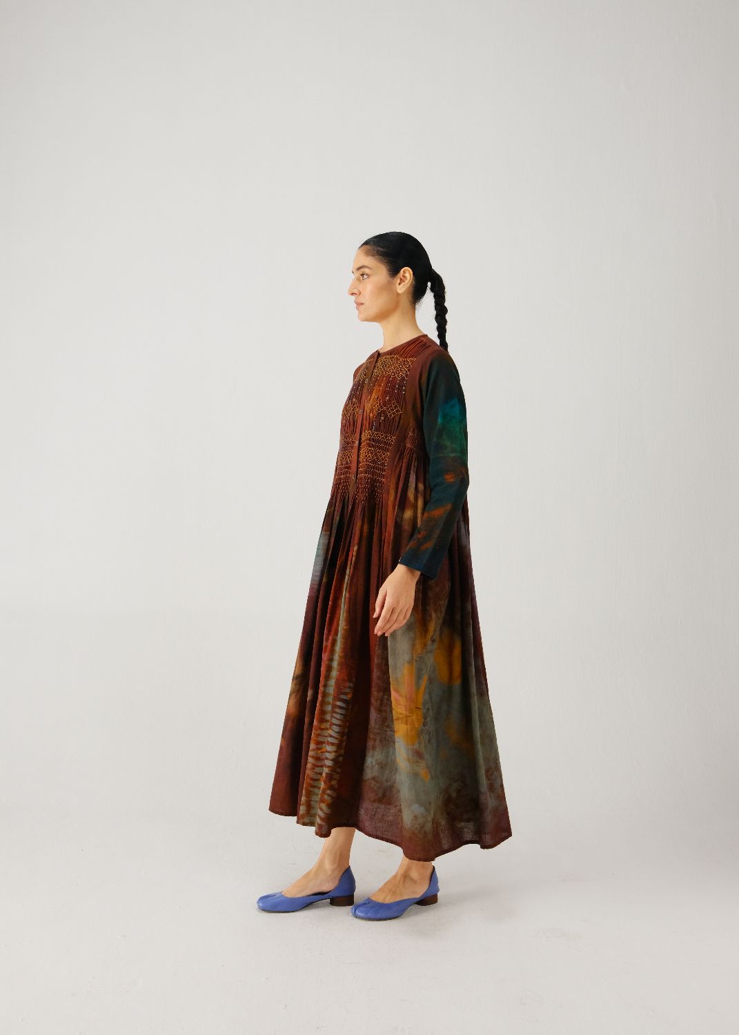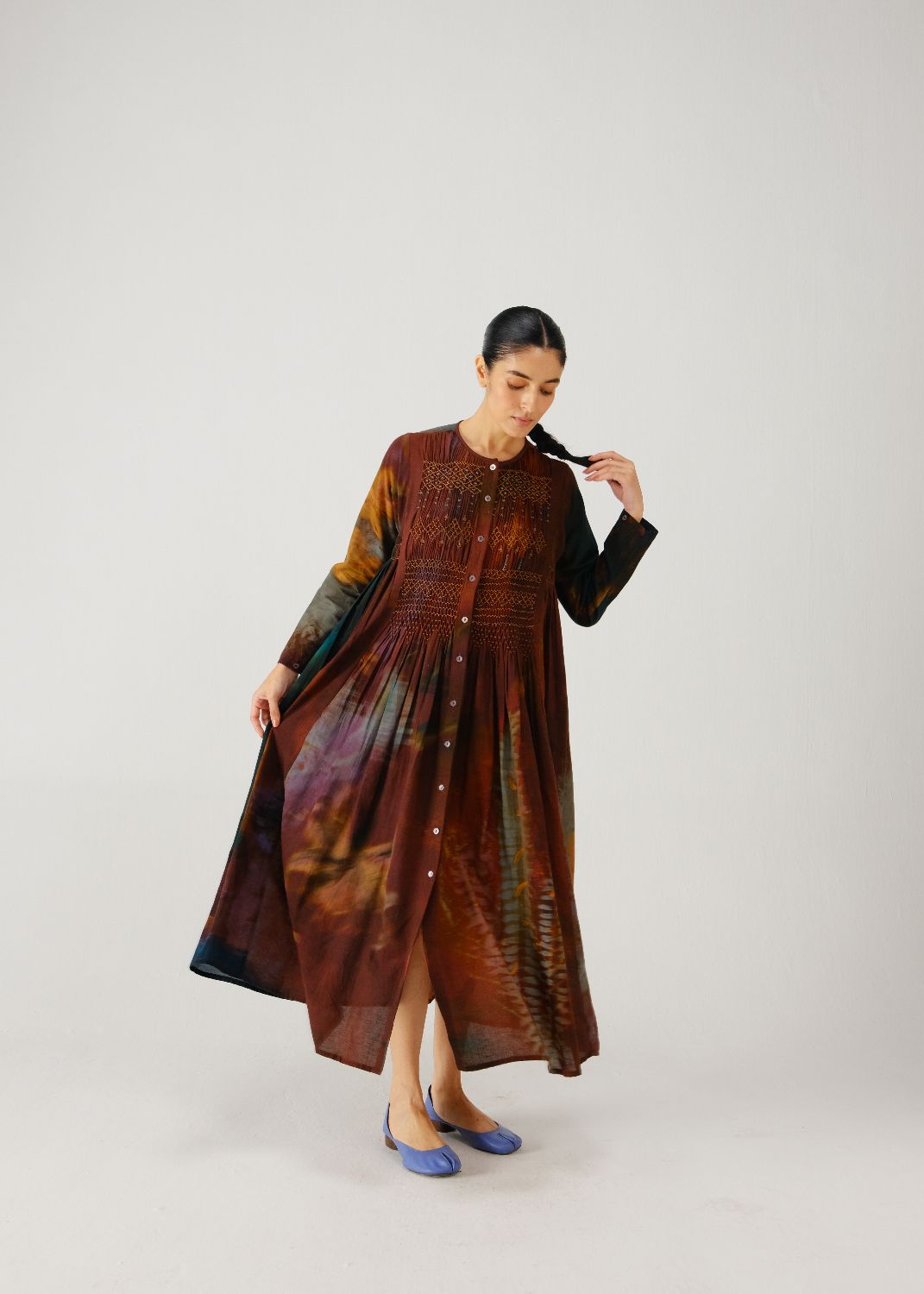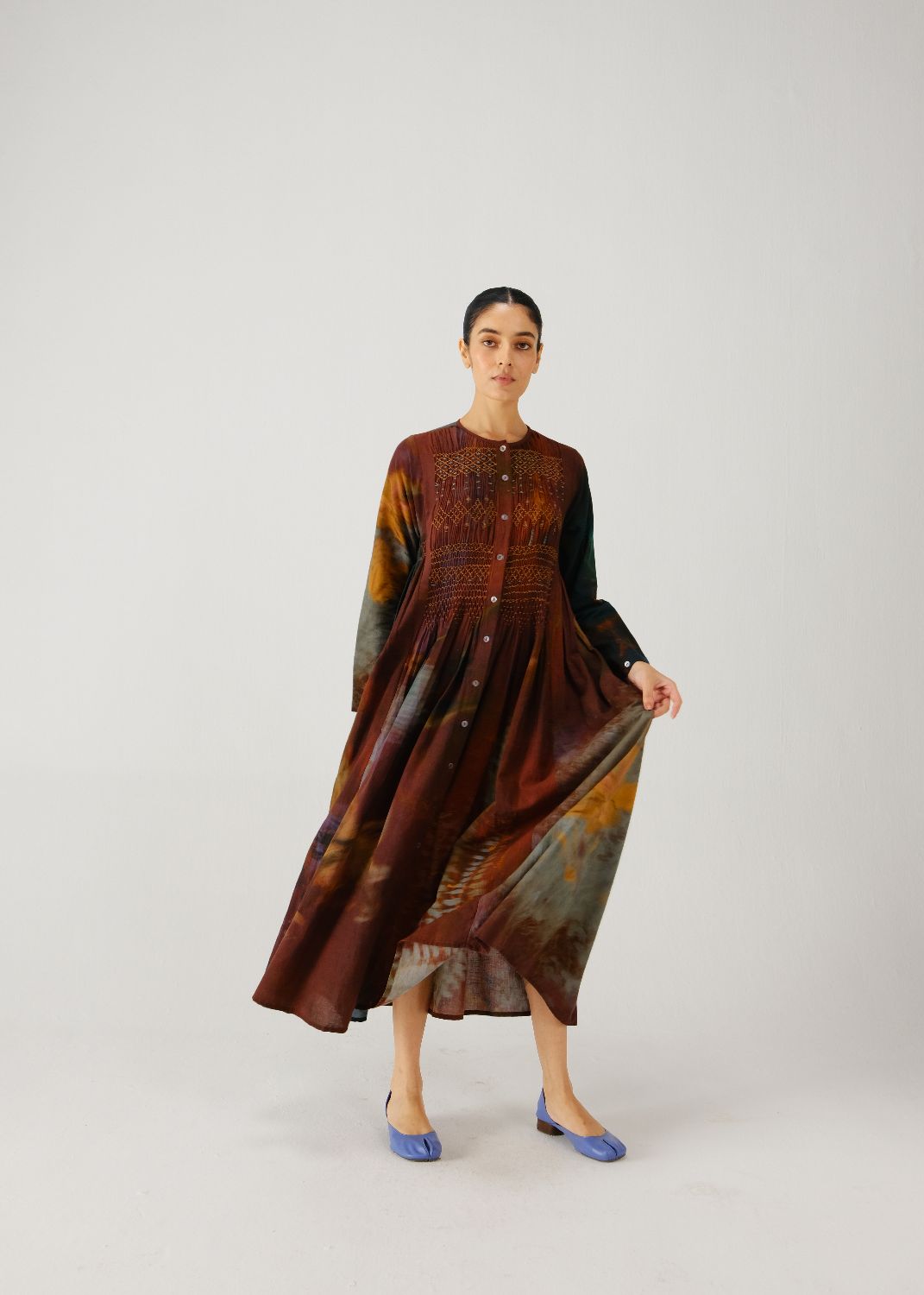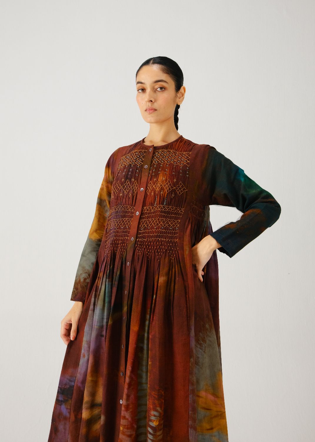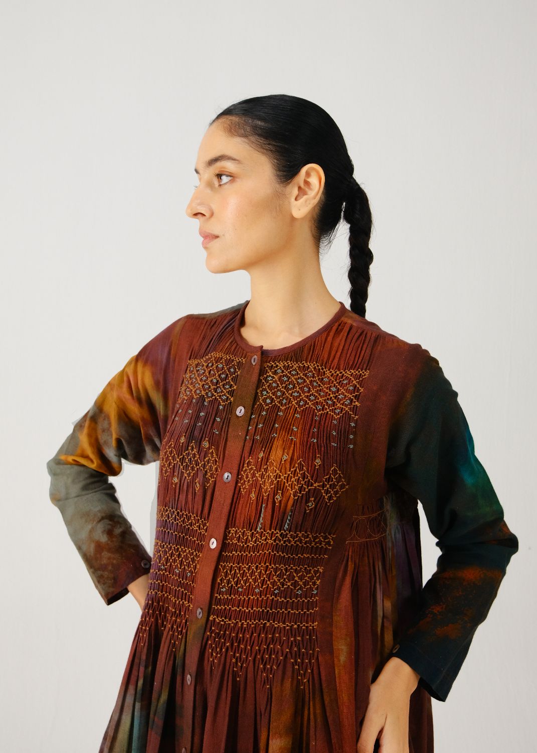 Details: Smocking on the yoke, gathers on the sides