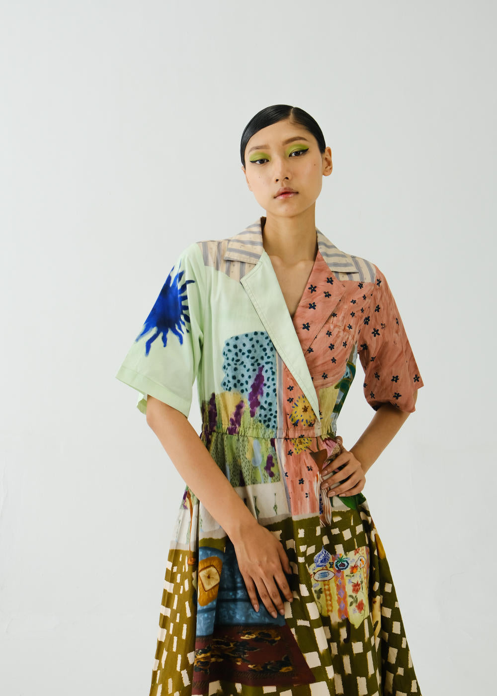 CORD blurs the line between art and attire in a way few labels dare to. Here, fabrics become canvases; illustrations—drawn by hand, steeped in imagination—flow across silhouettes that feel sculptural yet deeply wearable. Each piece has a texture of memory to it, as if it carries echoes of a past life, now reframed for a contemporary world.
