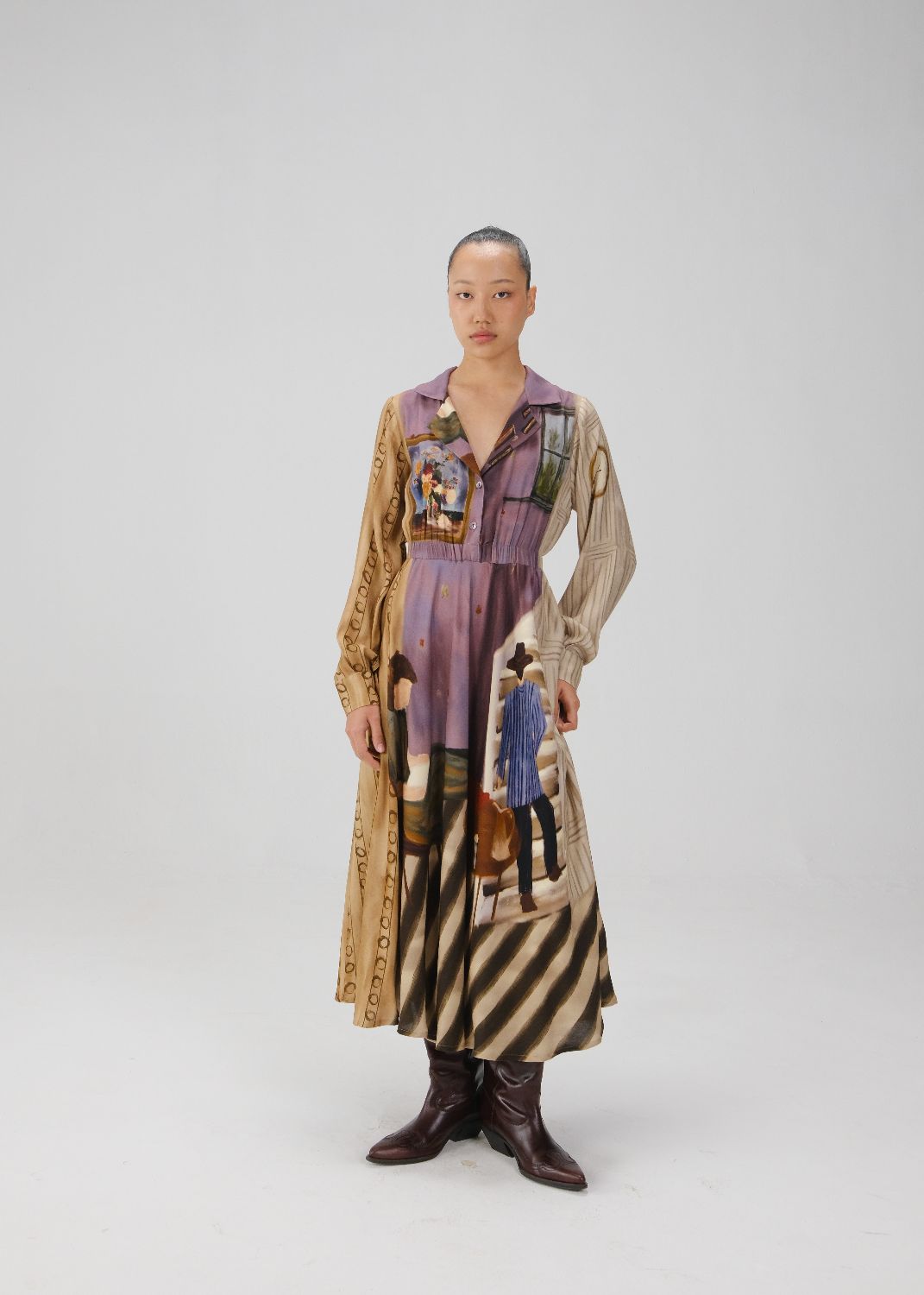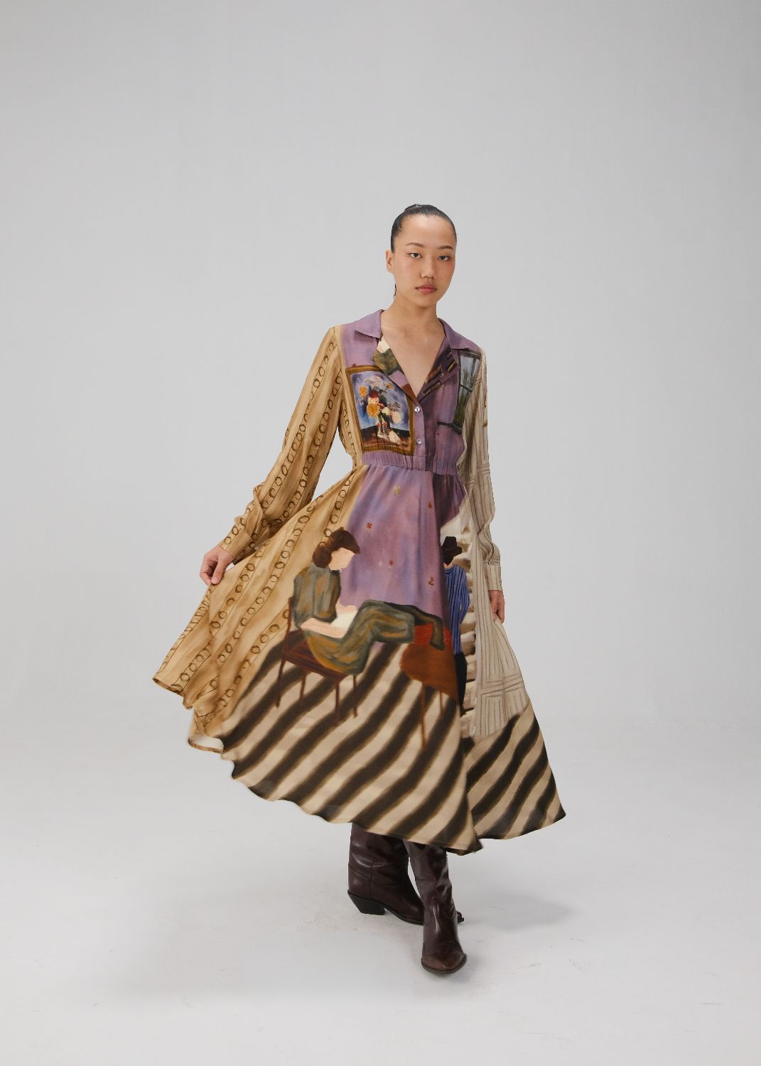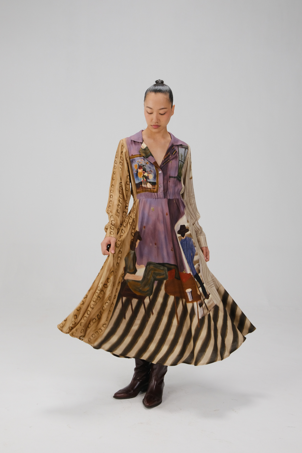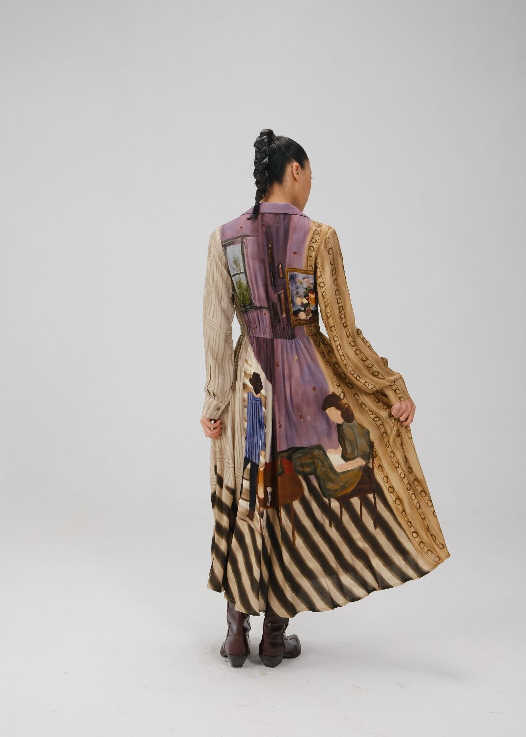 CORD blurs the line between art and attire in a way few labels dare to. Here, fabrics become canvases; illustrations—drawn by hand, steeped in imagination—flow across silhouettes that feel sculptural yet deeply wearable. Each piece has a texture of memory to it, as if it carries echoes of a past life, now reframed for a contemporary world.