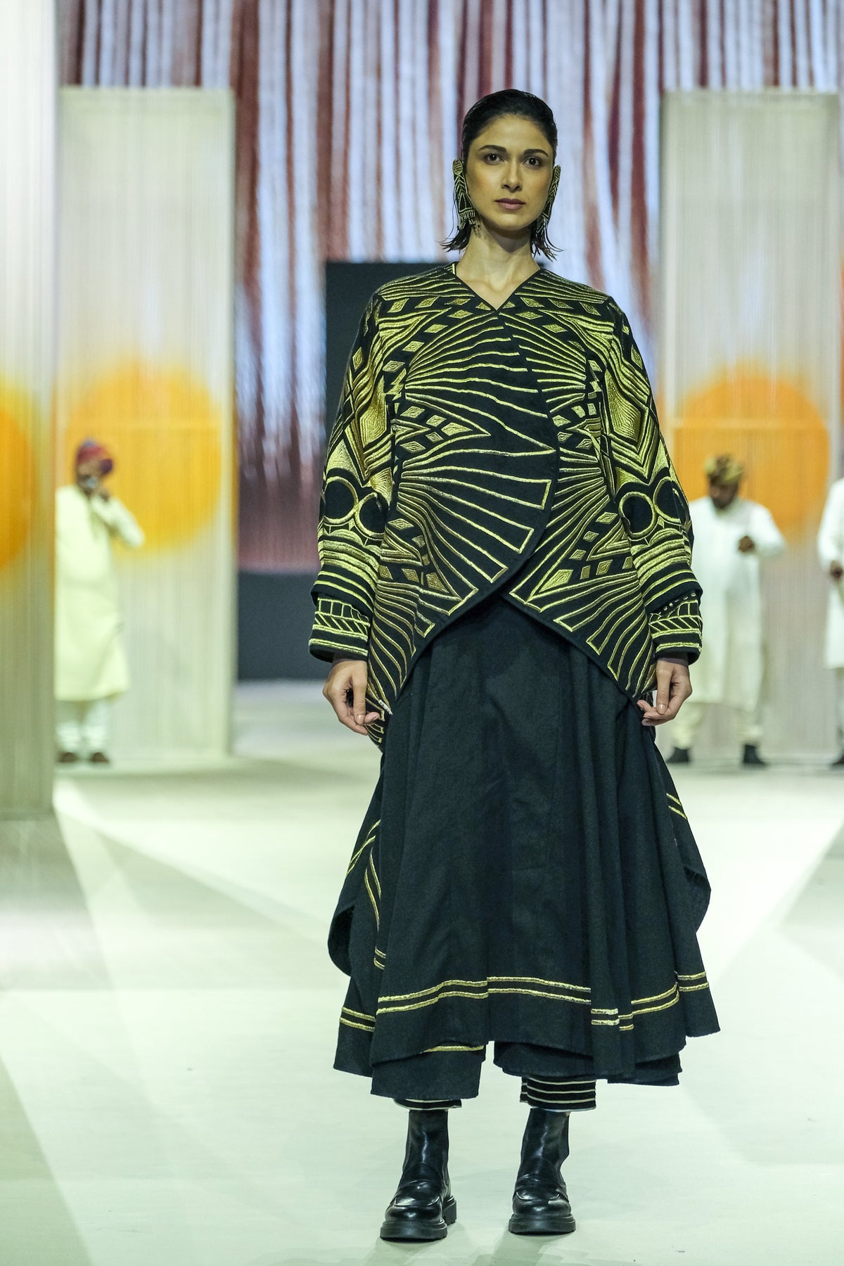 Patchwork, hand-stitching, appliqué, natural dyeing, layering — each technique is a way of honouring the textile traditions that shape India’s visual language. Their dresses, wraps, jackets, and separates carry that unmistakable Ka-Sha signature: fluid, tactile, deeply human.
