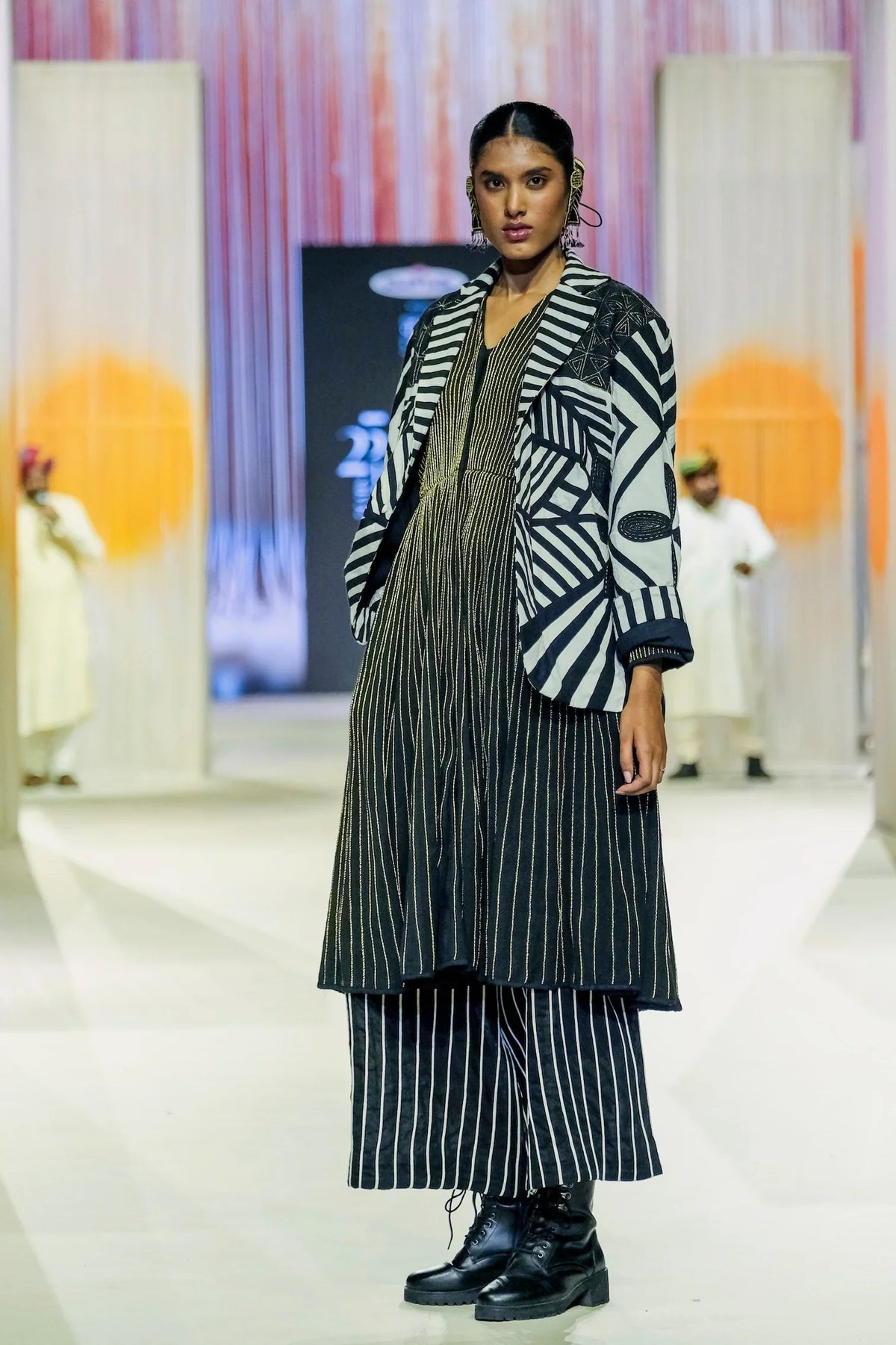 Patchwork, hand-stitching, appliqué, natural dyeing, layering — each technique is a way of honouring the textile traditions that shape India’s visual language. Their dresses, wraps, jackets, and separates carry that unmistakable Ka-Sha signature: fluid, tactile, deeply human.