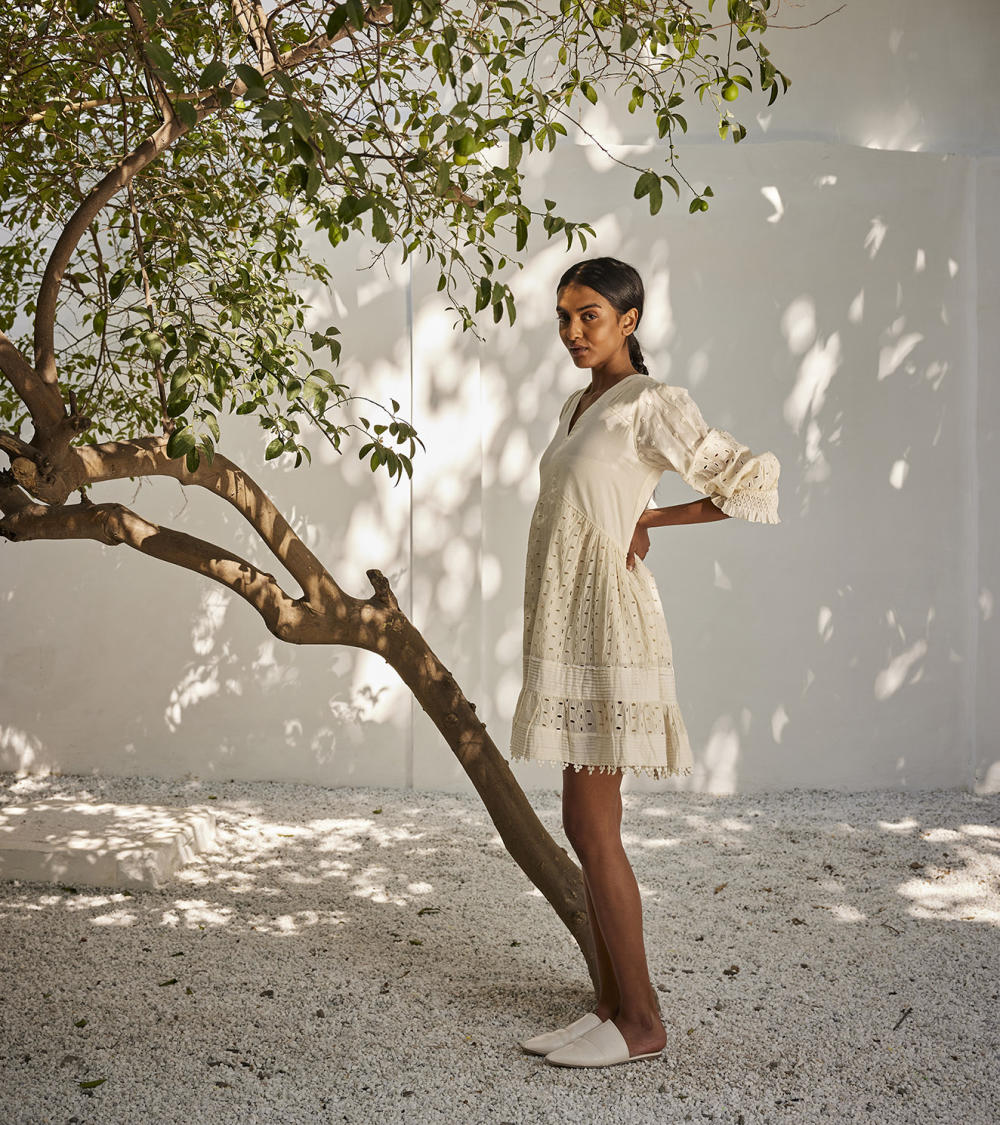 Each piece is grounded in India’s textile heritage yet designed for a woman who moves easily between cultures and climates. The brand’s commitment to homegrown cotton, artisanal processes, and clean, breathable shapes has made these garments not just beautiful, but deeply wearable.