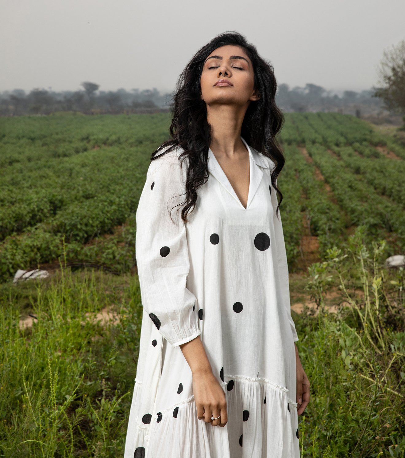 Each piece is grounded in India’s textile heritage yet designed for a woman who moves easily between cultures and climates. The brand’s commitment to homegrown cotton, artisanal processes, and clean, breathable shapes has made these garments not just beautiful, but deeply wearable.