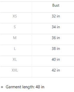 Garment Measurements (in inches):