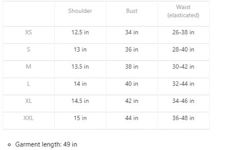 Garment Measurements (in inches):