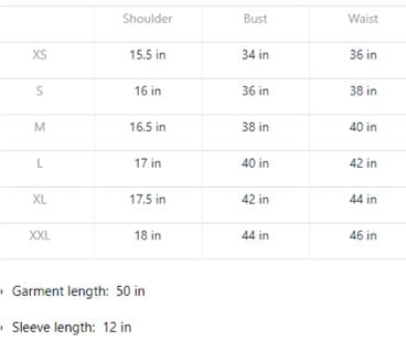 Garment Measurements (in inches):