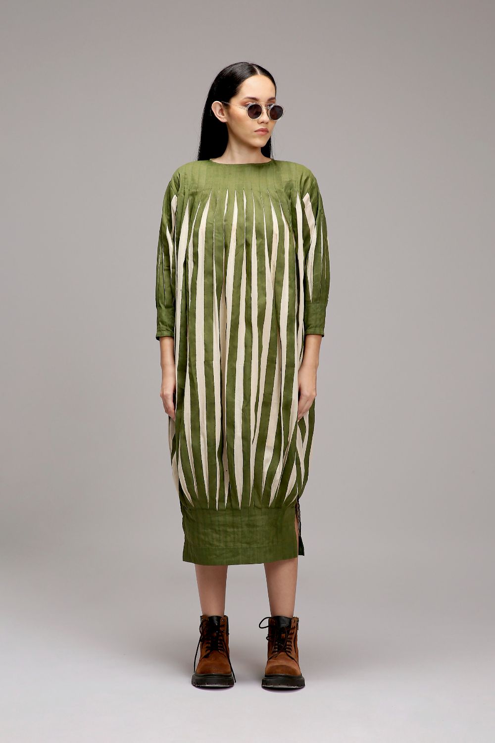 Egg-Shell Green Striped Balloon Dress