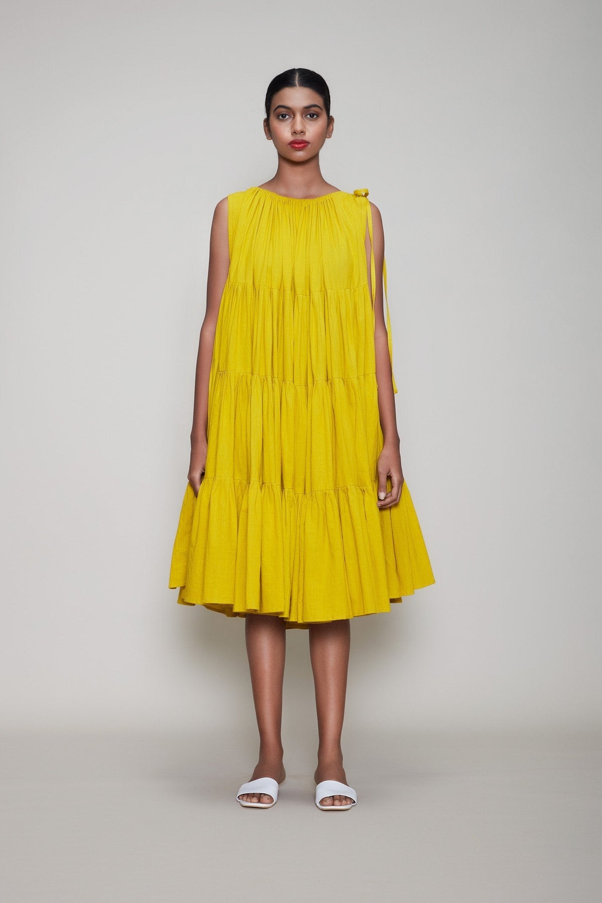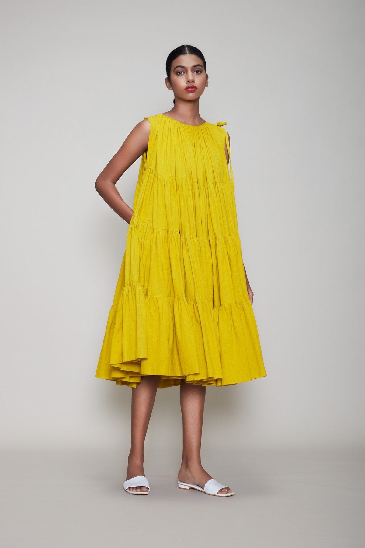 A Beautiful layered dress, another take on our Vena Aakaar. Draw string at the shoulder and pockets on the side. A dressy and comfortable dress for this summer !!
