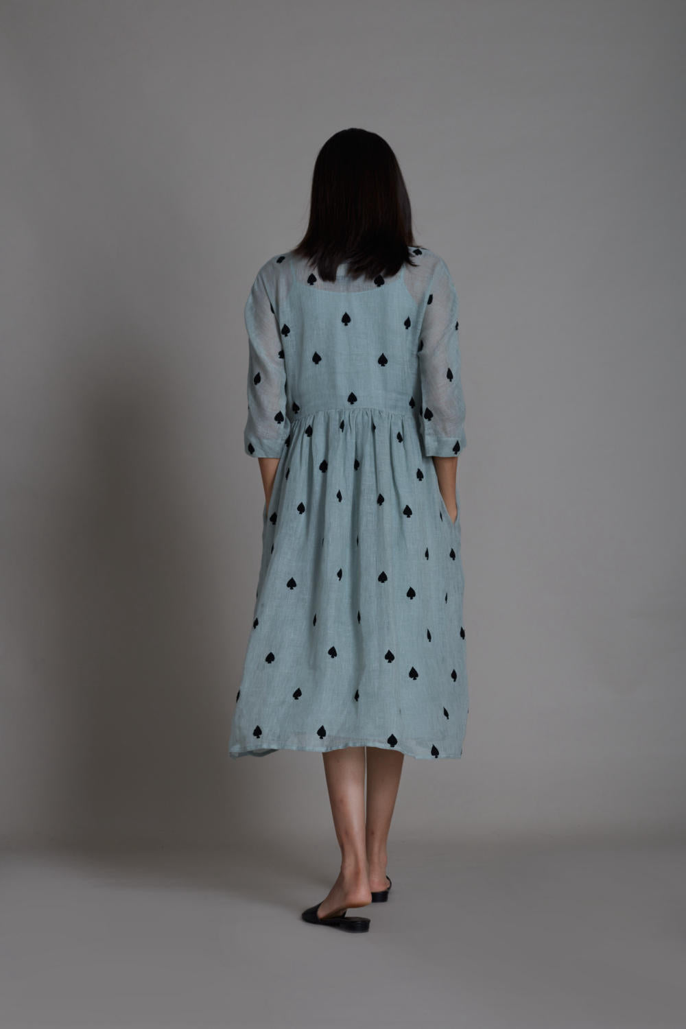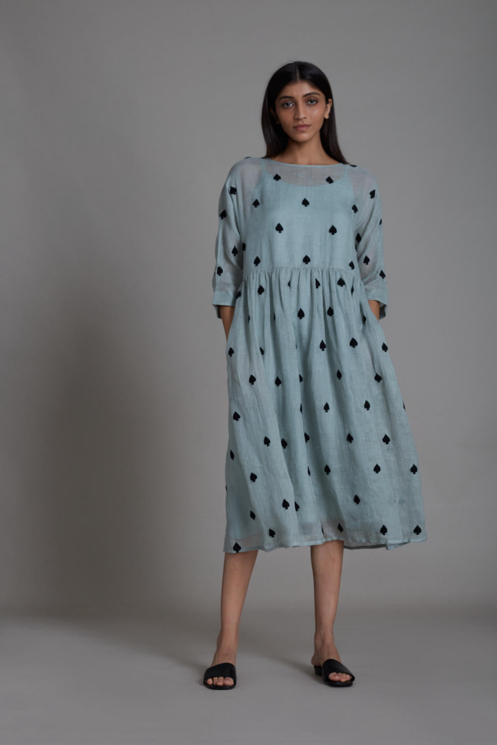 This sleek and modern dress is perfect for all occasions. The unique extended sleeve adds character to the dress crafted in pure linen with intricate thread embroidery. Pair it up with a jacket or pants from our collection or wear it as a dress, this versatile outfit can be styled the way you want. Comes with handwoven cotton full-length inner.