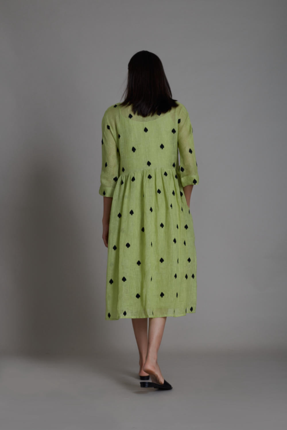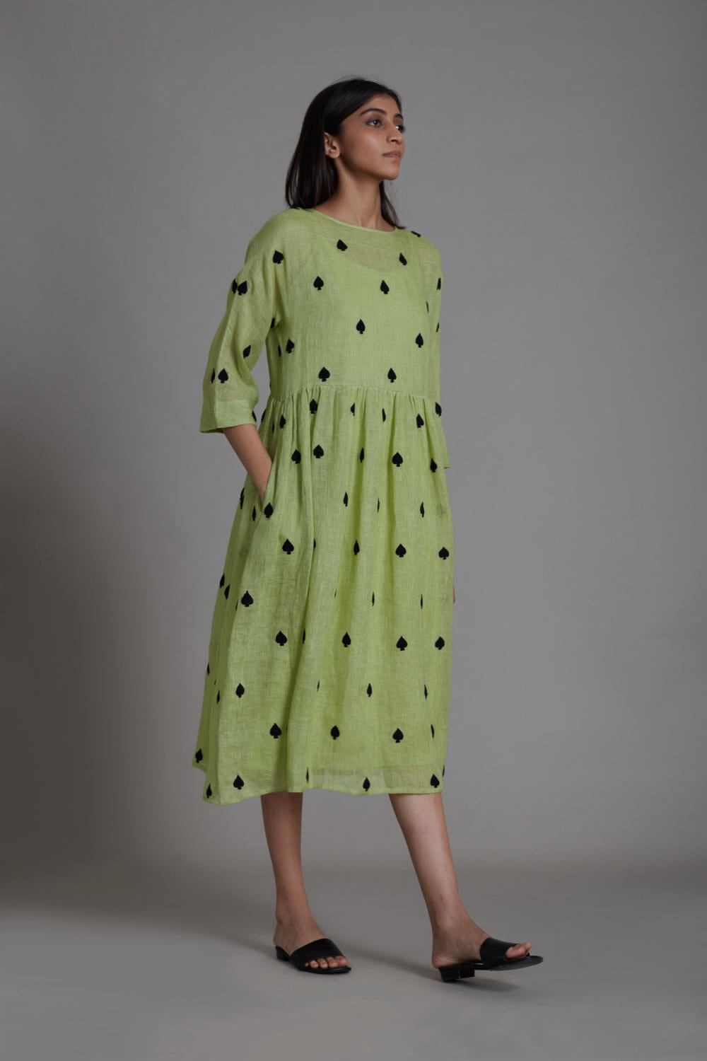 This sleek and modern dress is perfect for all occasions. The unique extended sleeve adds character to the dress crafted in pure linen with intricate thread embroidery. Pair it up with a jacket or pants from our collection or wear it as a dress, this versatile outfit can be styled the way you want. Comes with handwoven cotton full-length inner.