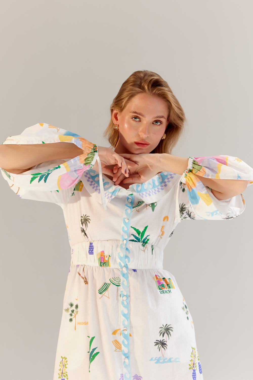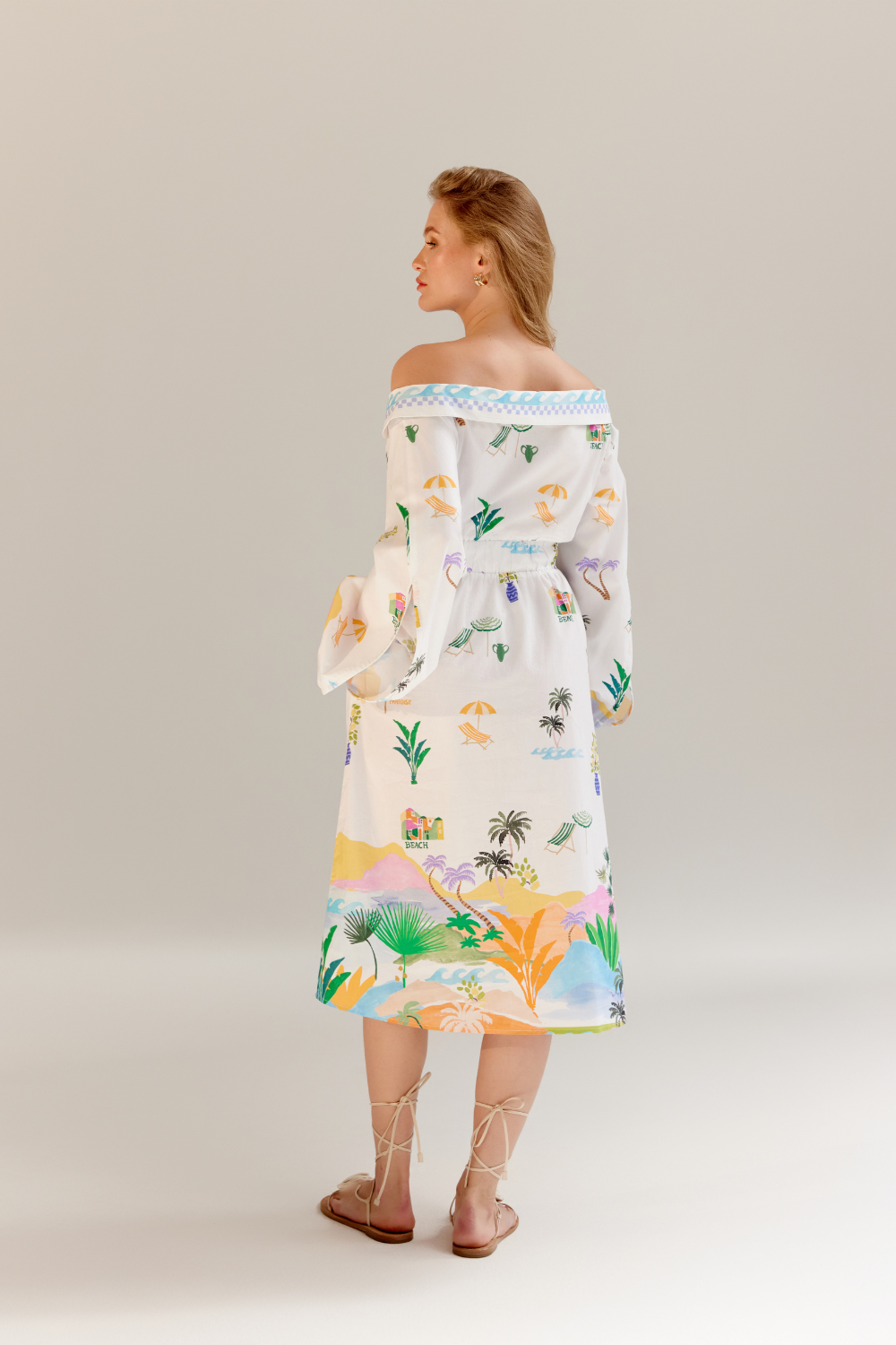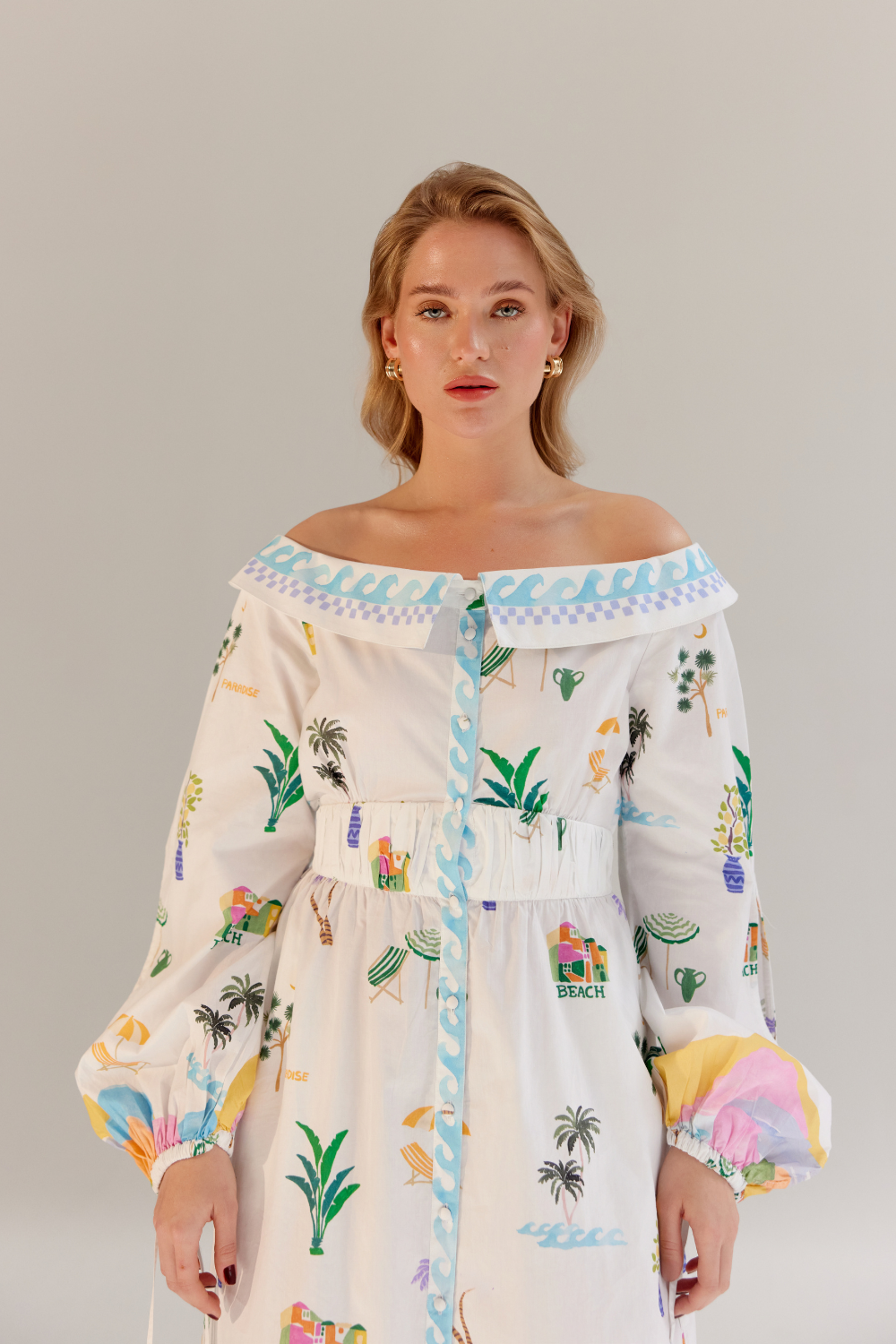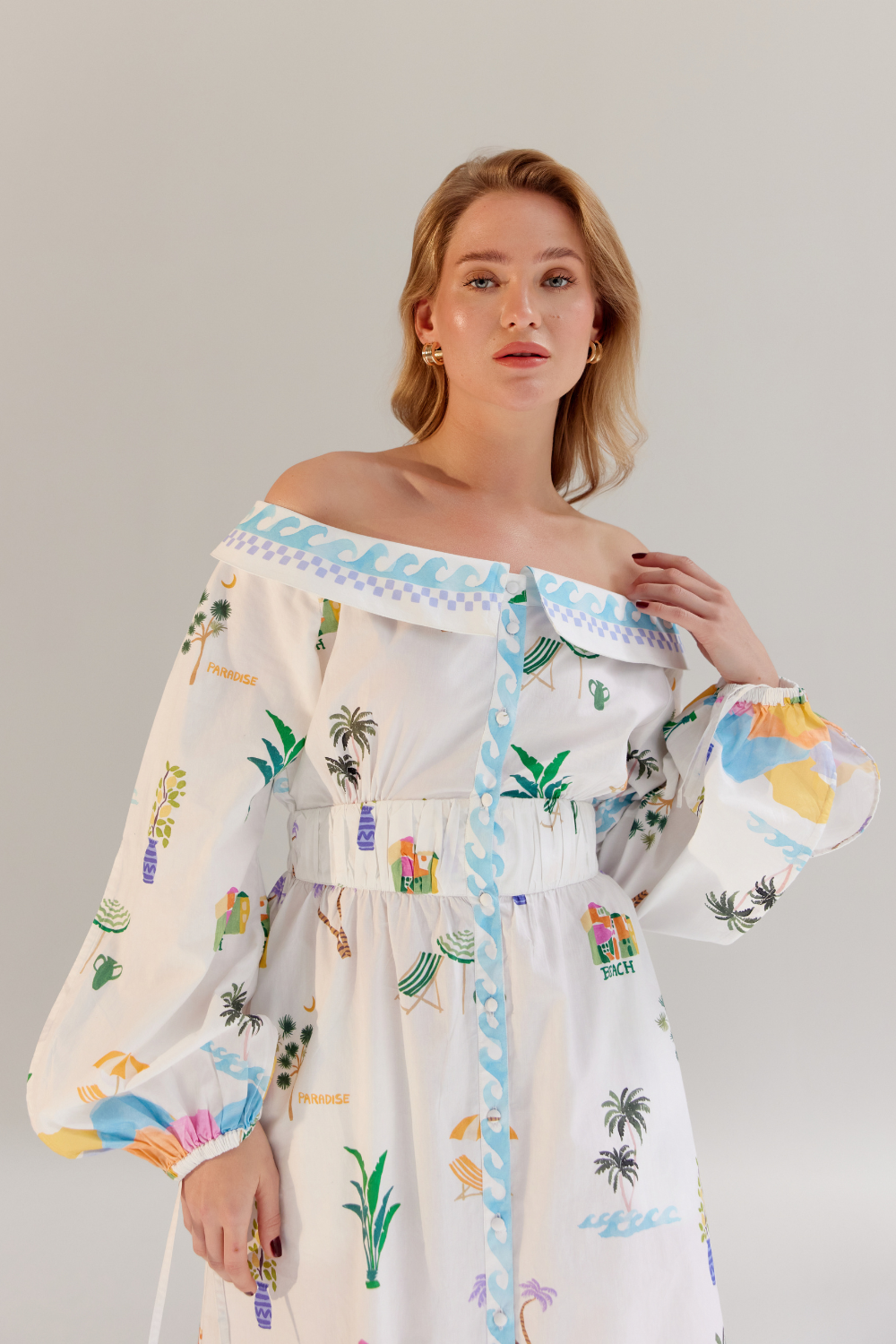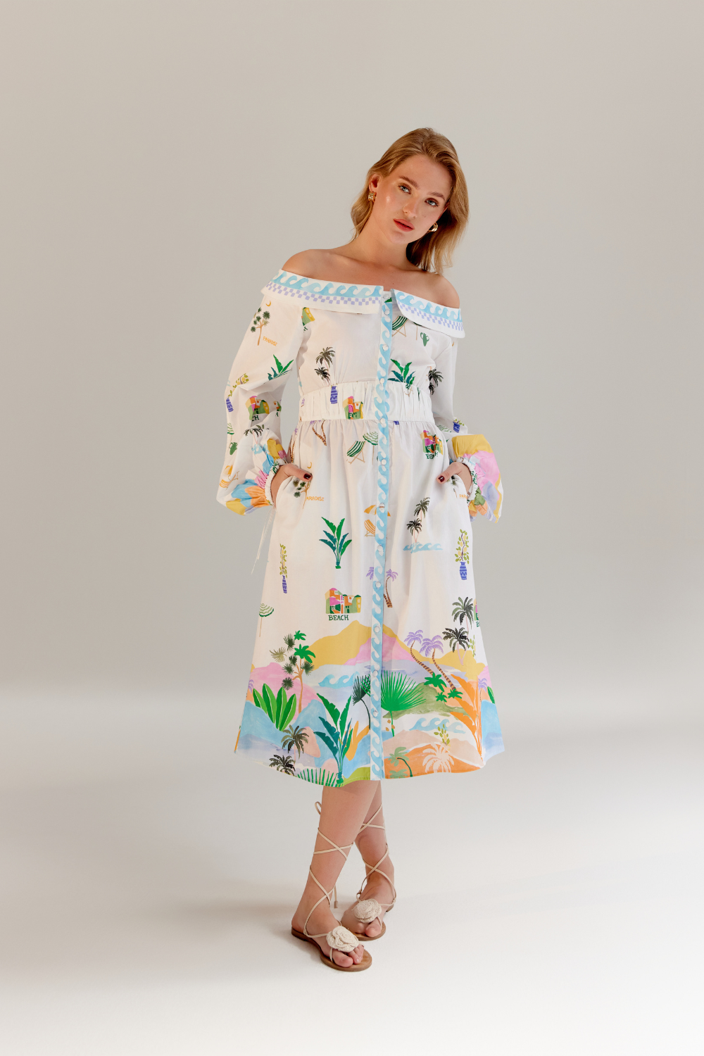 The Sage Midi is an off-shoulder masterpiece crafted from premium Giza poplin, offering a perfect blend of elegance and ease. Available in two stunning variations—By the Sea, featuring a placement print, and an all-over embroidered design—this dress captures the essence of summer charm. Thoughtfully placed pleating near the waist and an elasticated back provide a flattering fit while ensuring comfort and flexibility.