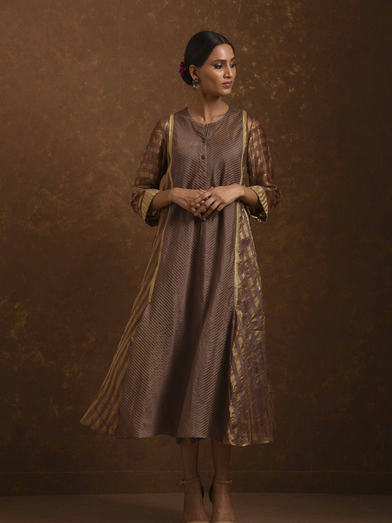 Shagufta Mocha and Gold Dress