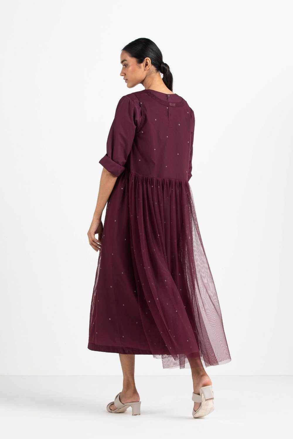Side Gather Overdress Co-ord Wine Polka Fashion THREE
