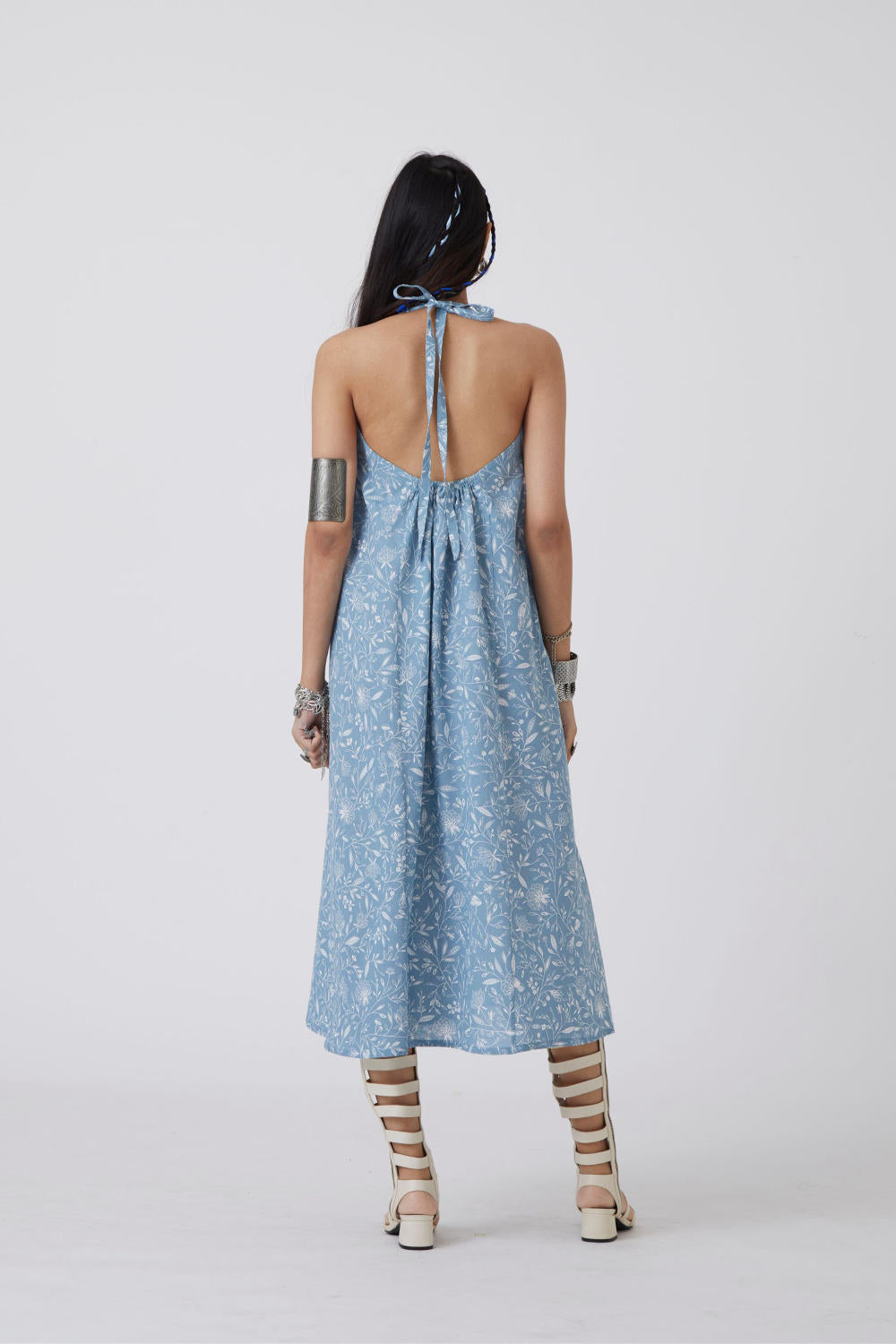 Truly effortless. Signature print halter neck dress. Elasticated back for proper fit. In-seam pockets. Print placement may vary from garment to garment.