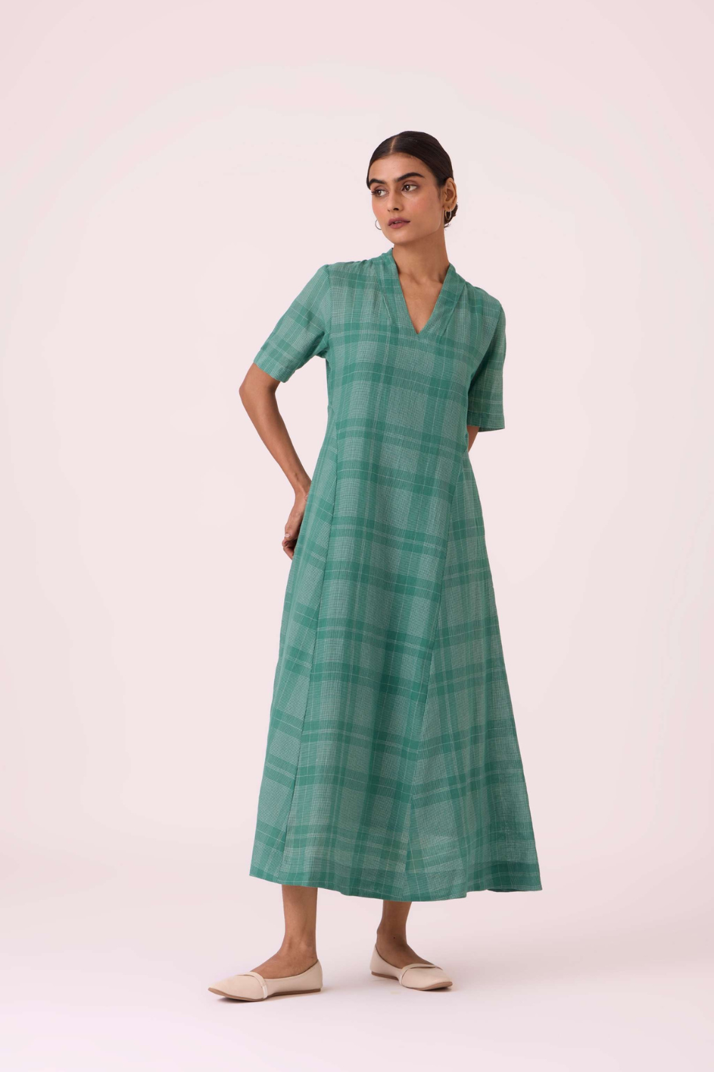 This fabric design is developed in our studio and handwoven by artisans in Bengal.