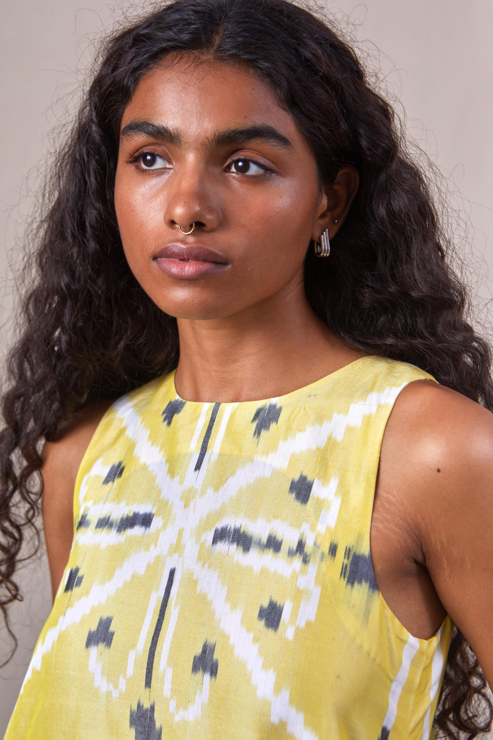 - Silk x Cotton Ikat woven by generational artisans. Ikat is one of the most difficult to weave and valued craft techniques in the world.