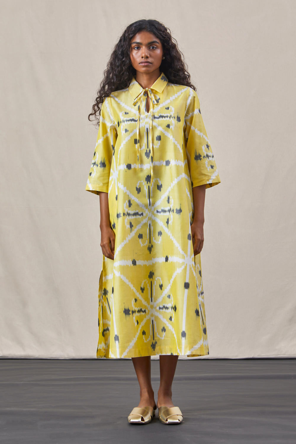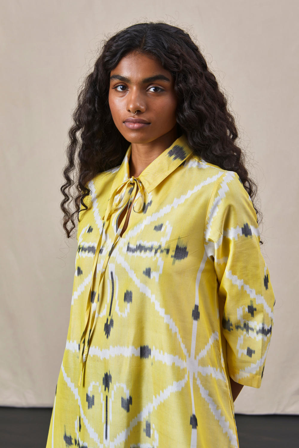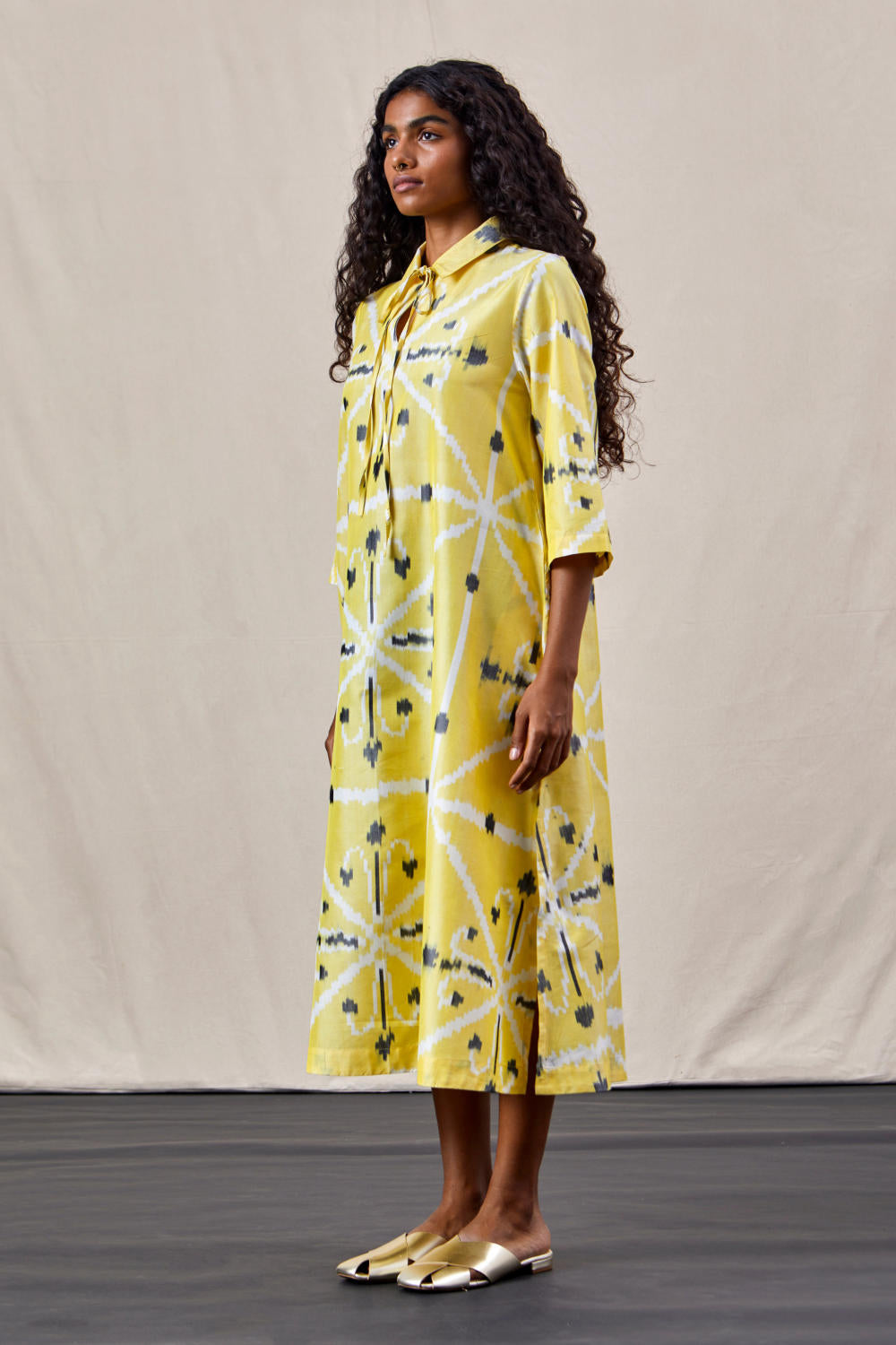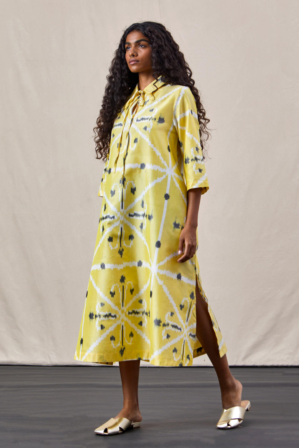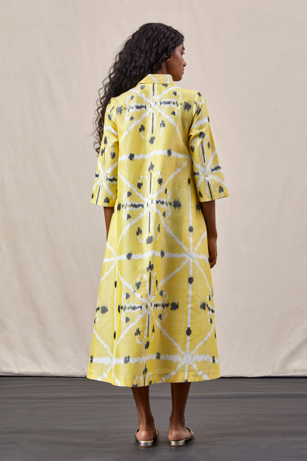 Timeless dress in handwoven Ikat silk.