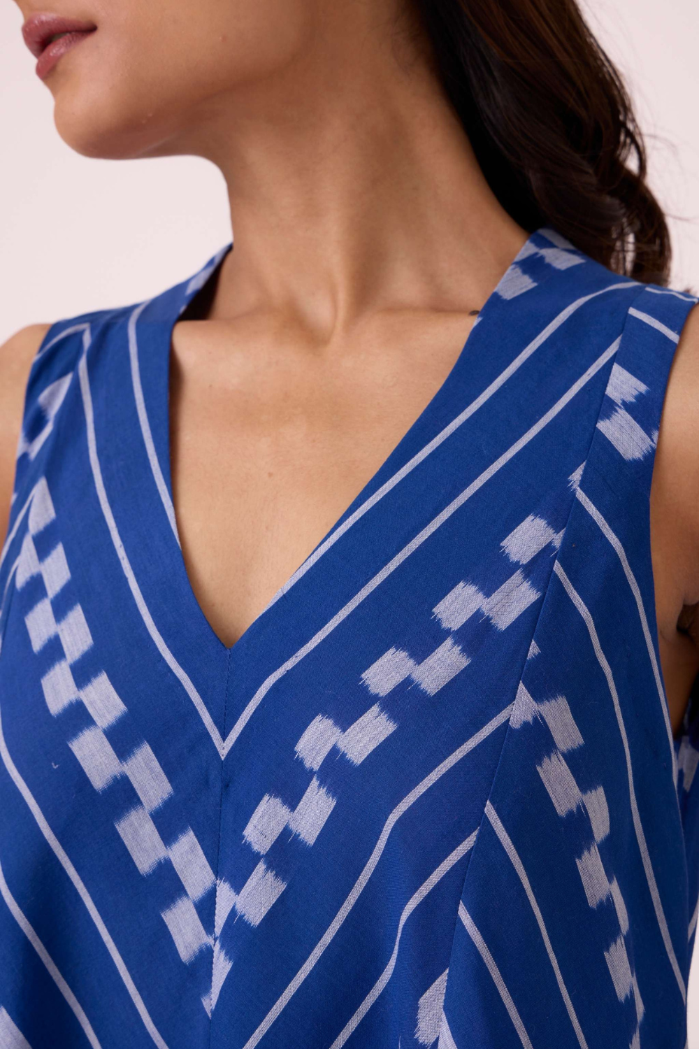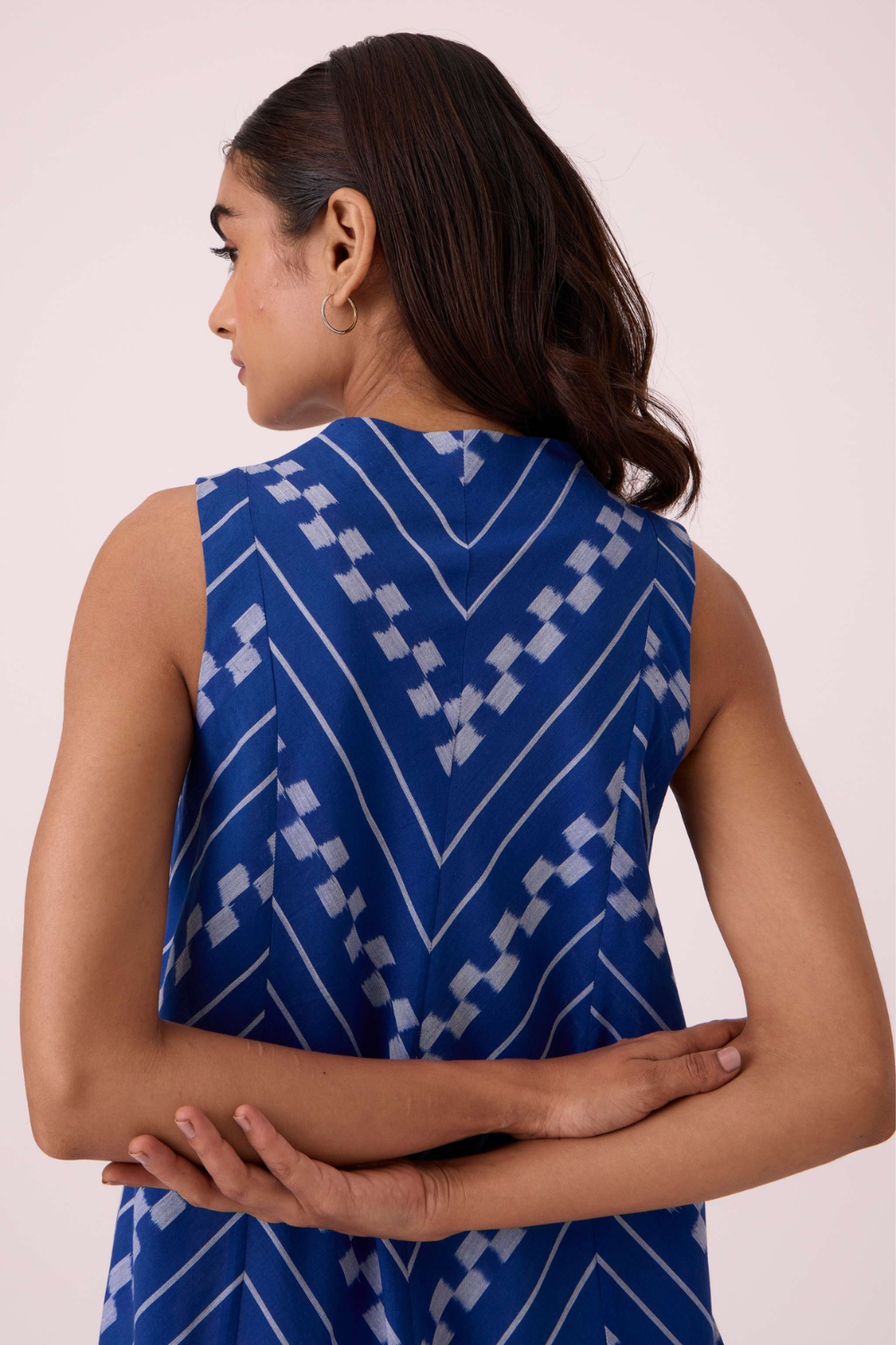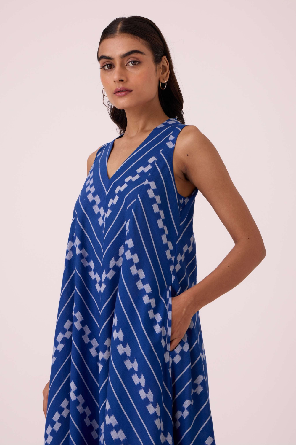 This Ikat design is developed in our studio and handwoven by artisans in Telangana. Slight irregularities are common and speak to the hand processes involved.