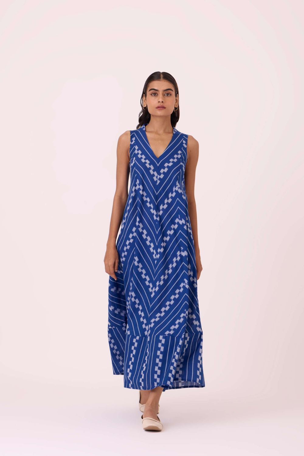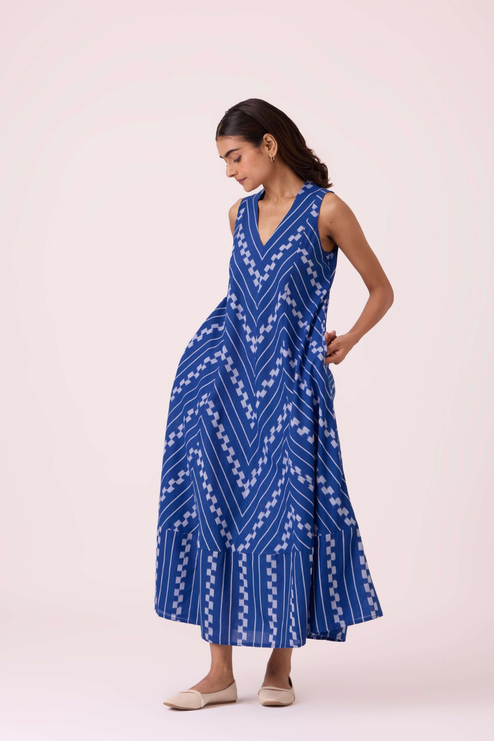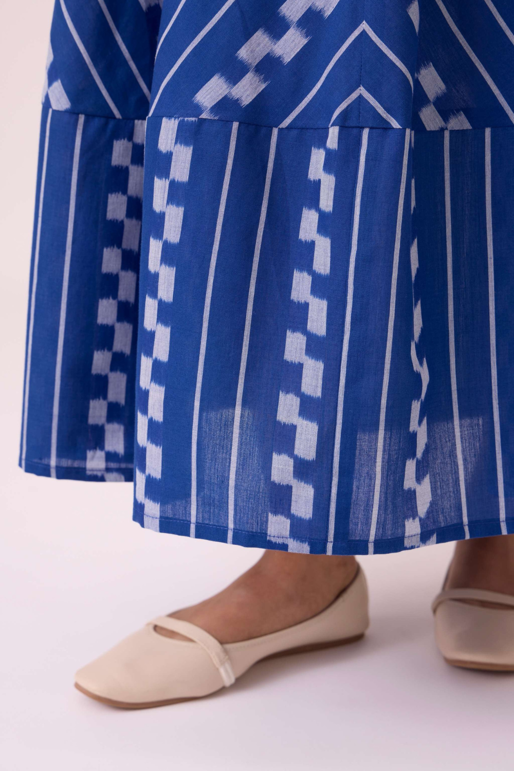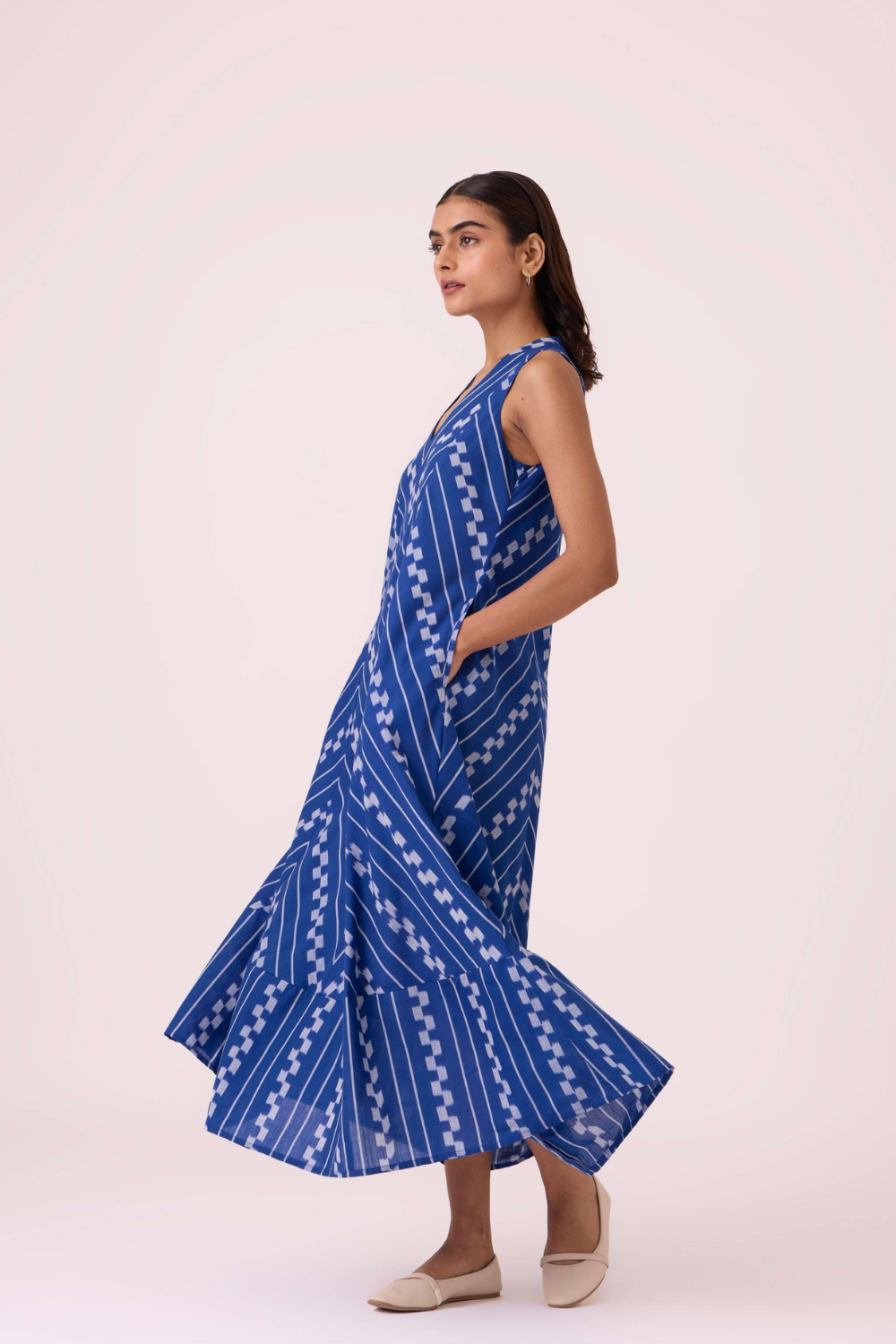 This Ikat design is developed in our studio and handwoven by artisans in Telangana. Slight irregularities are common and speak to the hand processes involved.