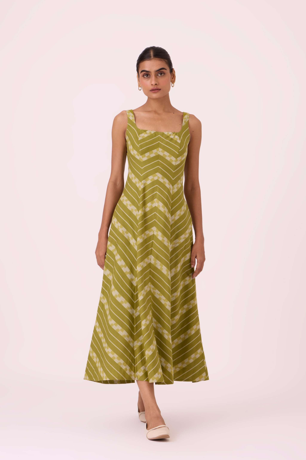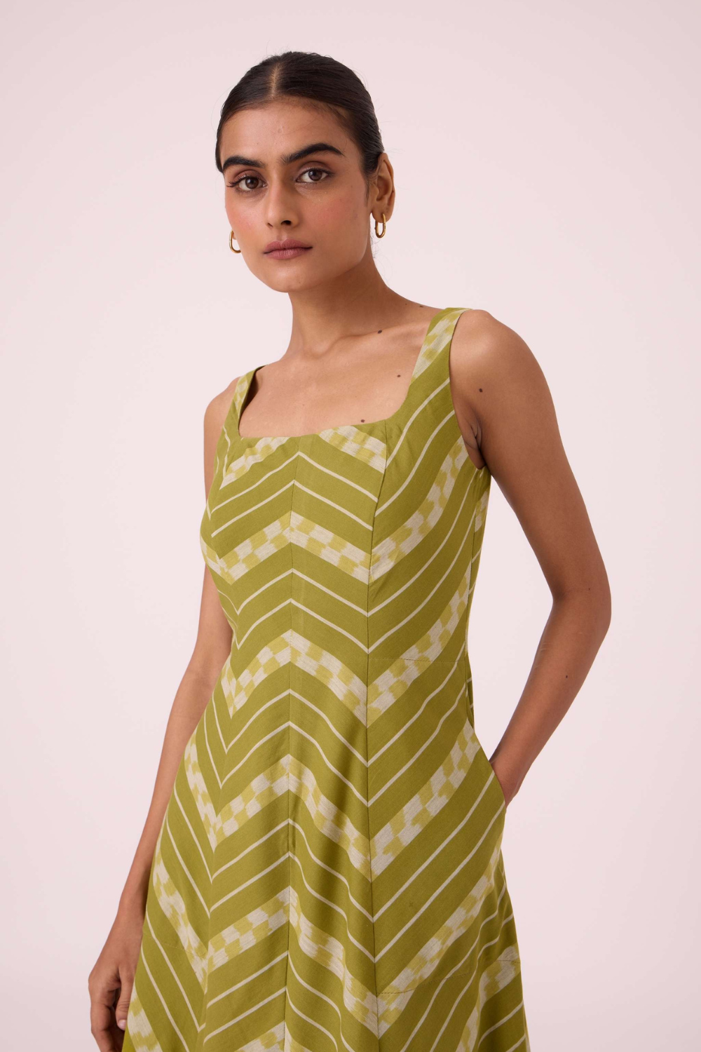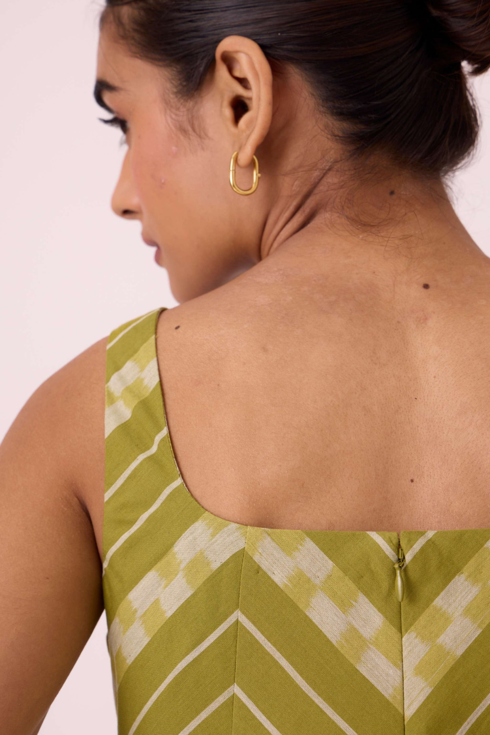 This Ikat design is developed in our studio and handwoven by artisans in Telangana. Slight irregularities are common and speak to the hand processes involved.