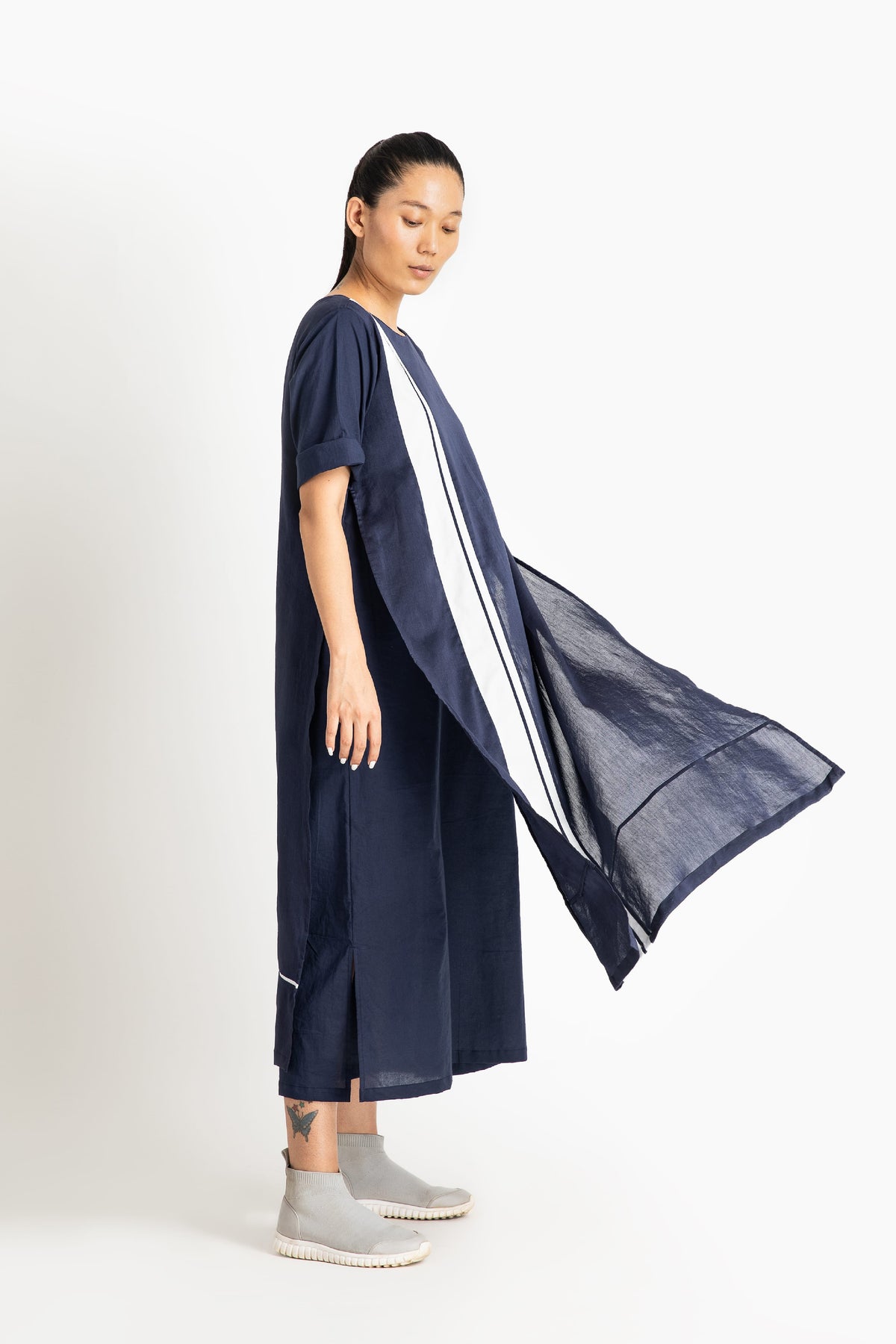 Clever cuts, asymmetric patterns, a neutral palette and simplicity of geometric details form the core aesthetic of the brand. Their love for asymmetry and imperfection clearly reflects in their silhouettes and hemlines. The label is a modern mix of conceptual and wearable clothing which defies age bar as the ensembles exude comfort, more so with their signature anti-fit coords.