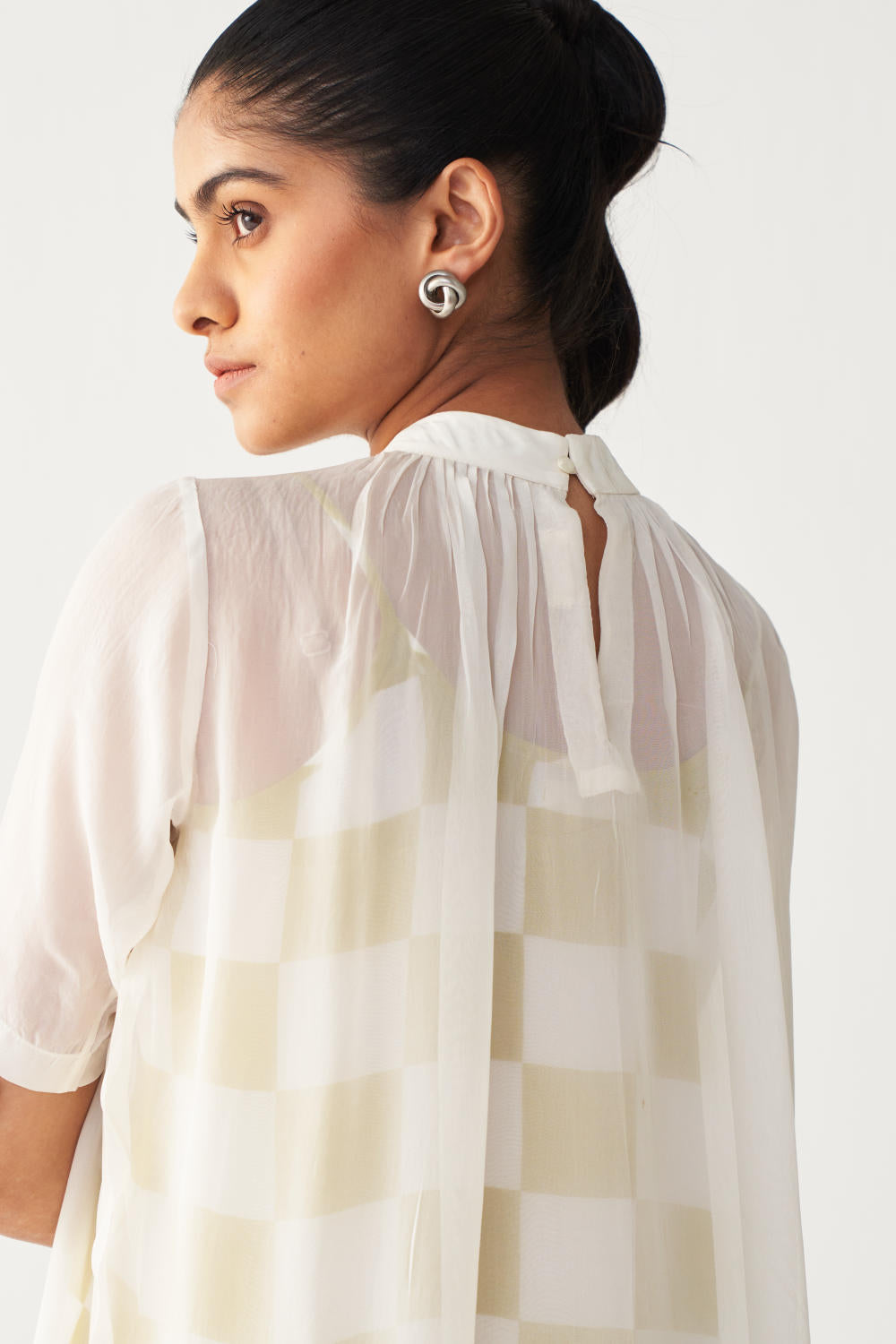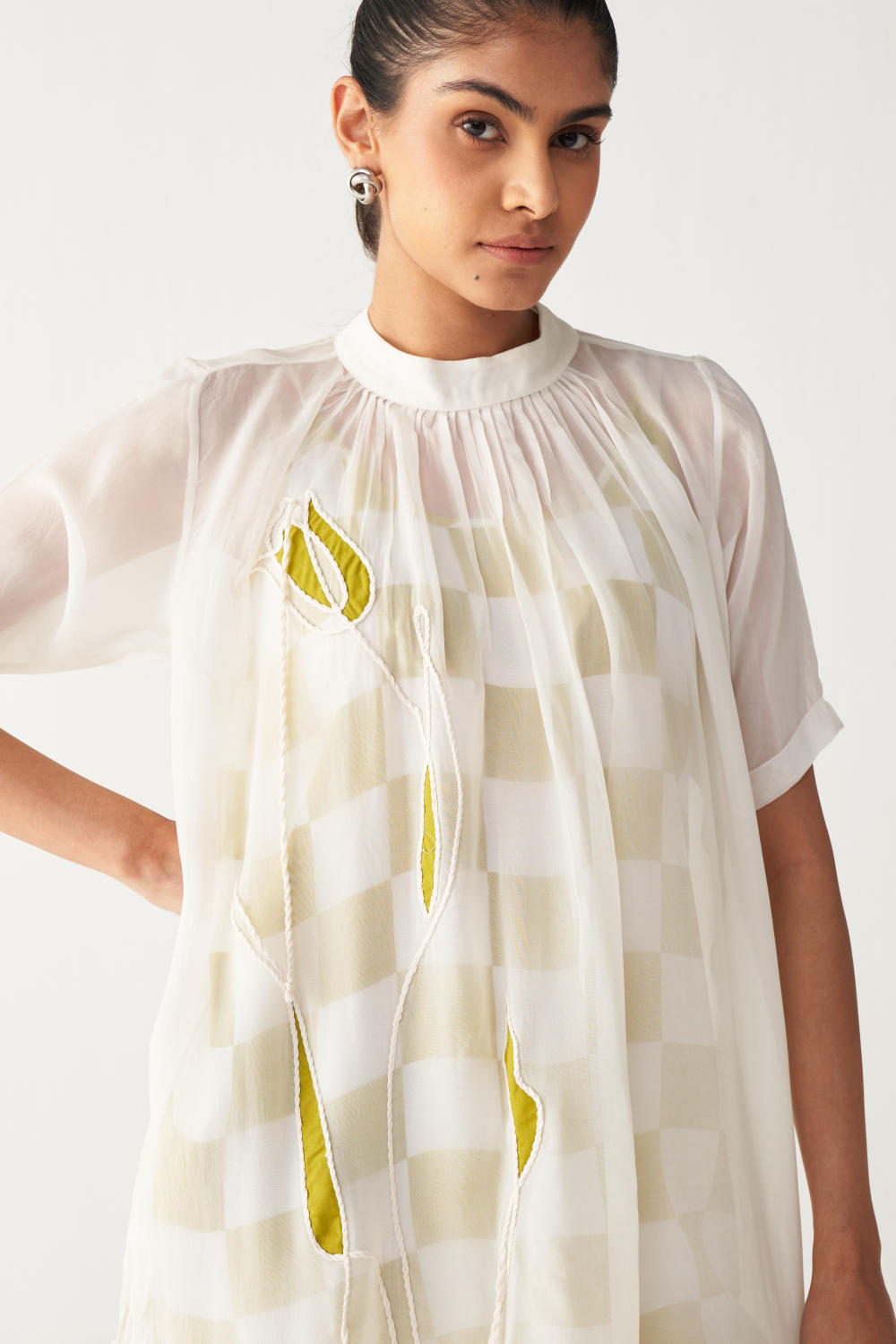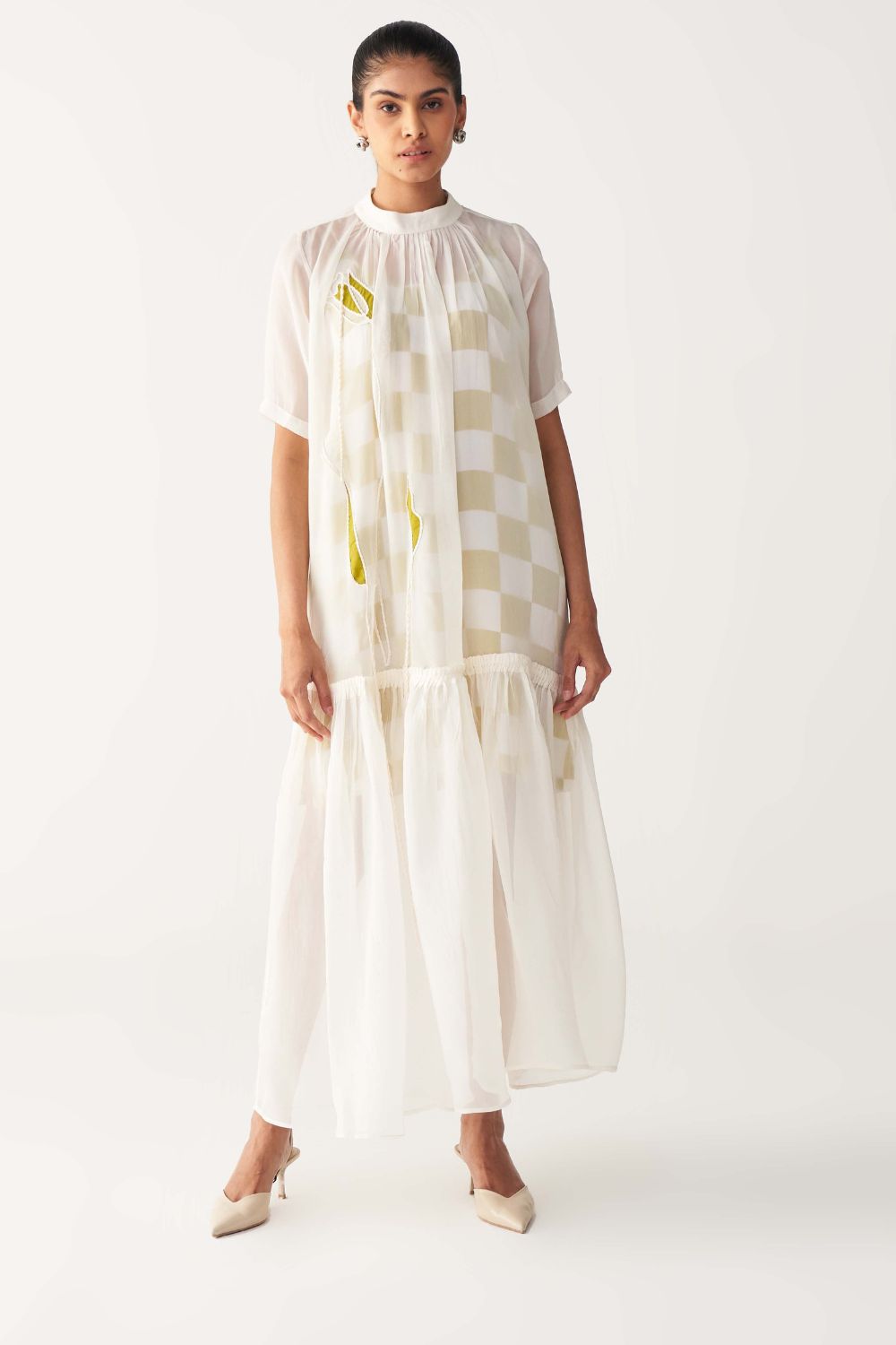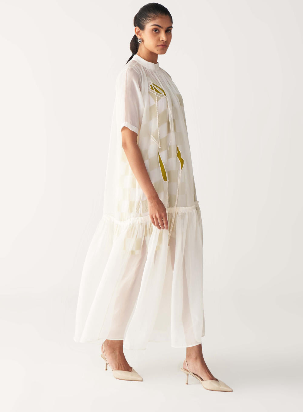 SHEER BOTTOM FRILL DRESS+CHECK SLIP-IVORY