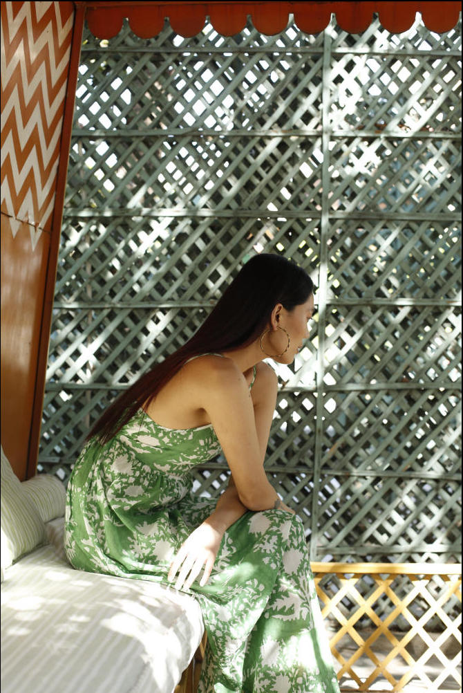 The silhouettes are simple but considered: relaxed cuts, thoughtful details, and fabrics that breathe — from handwoven cottons to delicately finished textiles rooted in Rajasthan’s craft culture. Colours stay close to the earth: muted florals, soft neutrals, and tones that age gracefully rather than fall out of season.