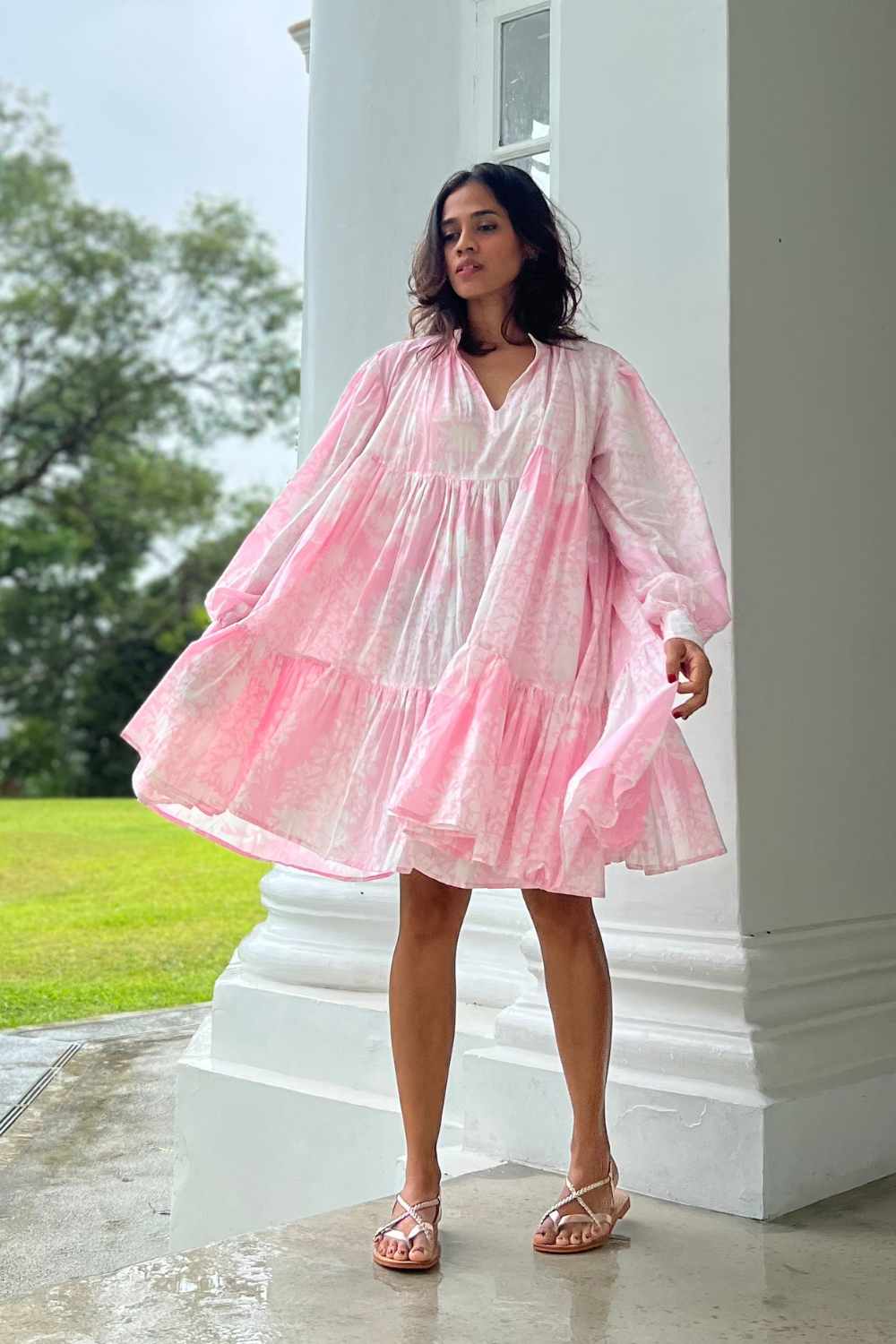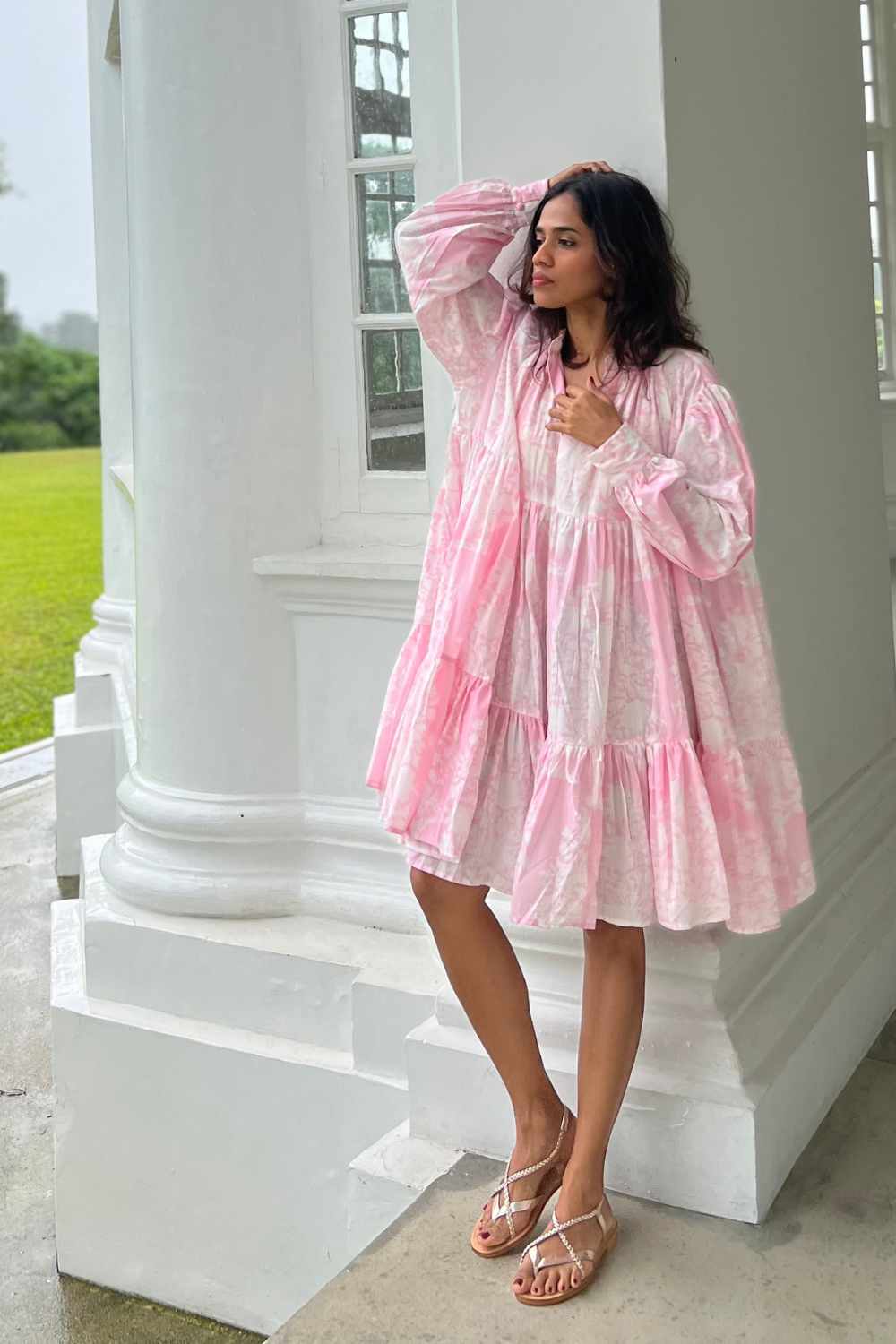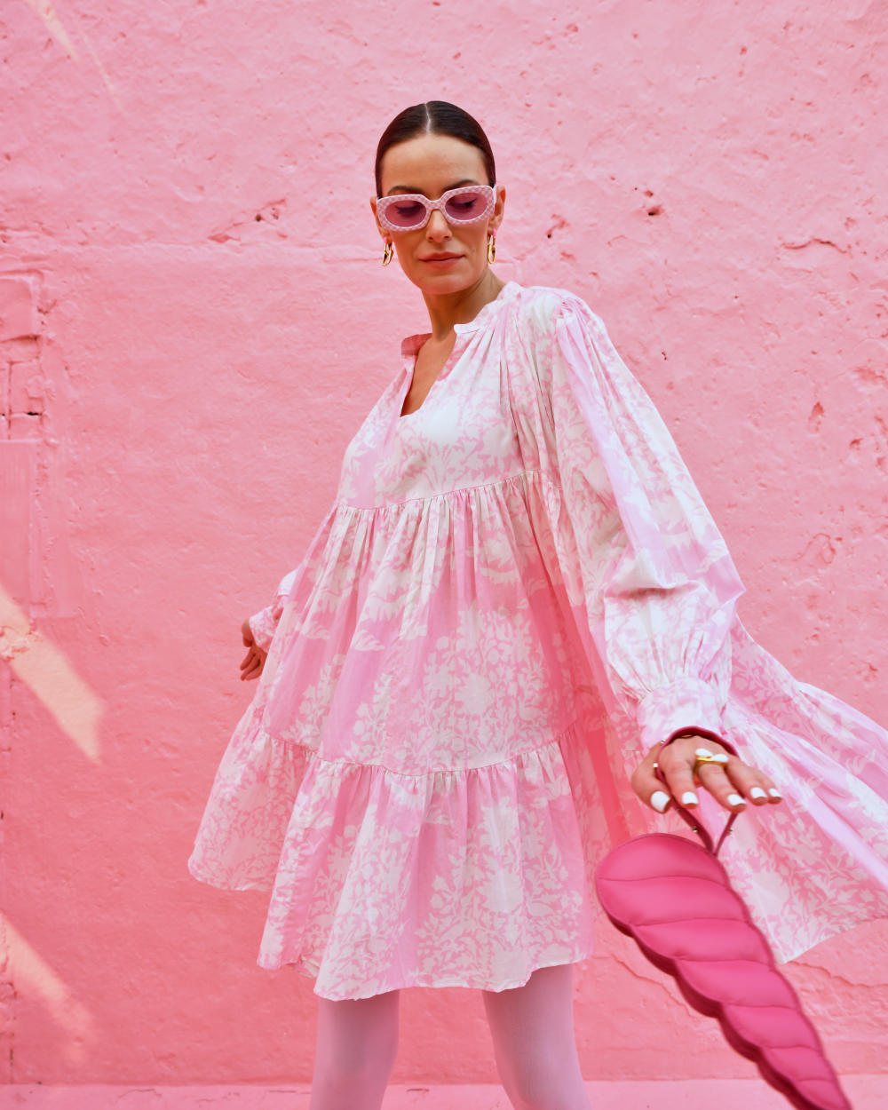 This dress is handblock printed by our partner artisans in the nearby village of Sanganer.