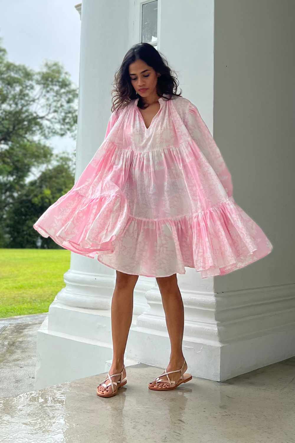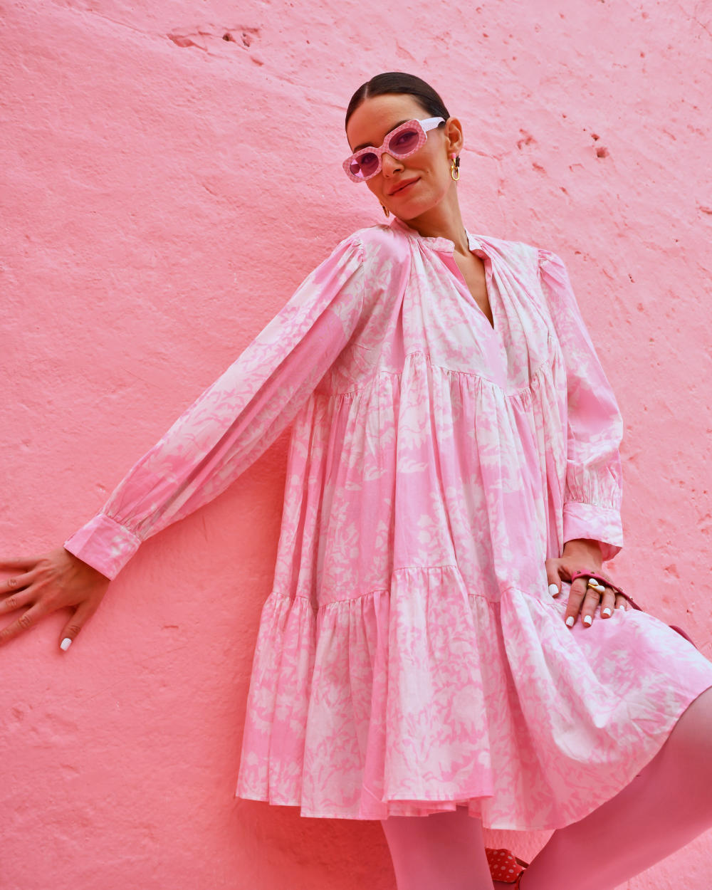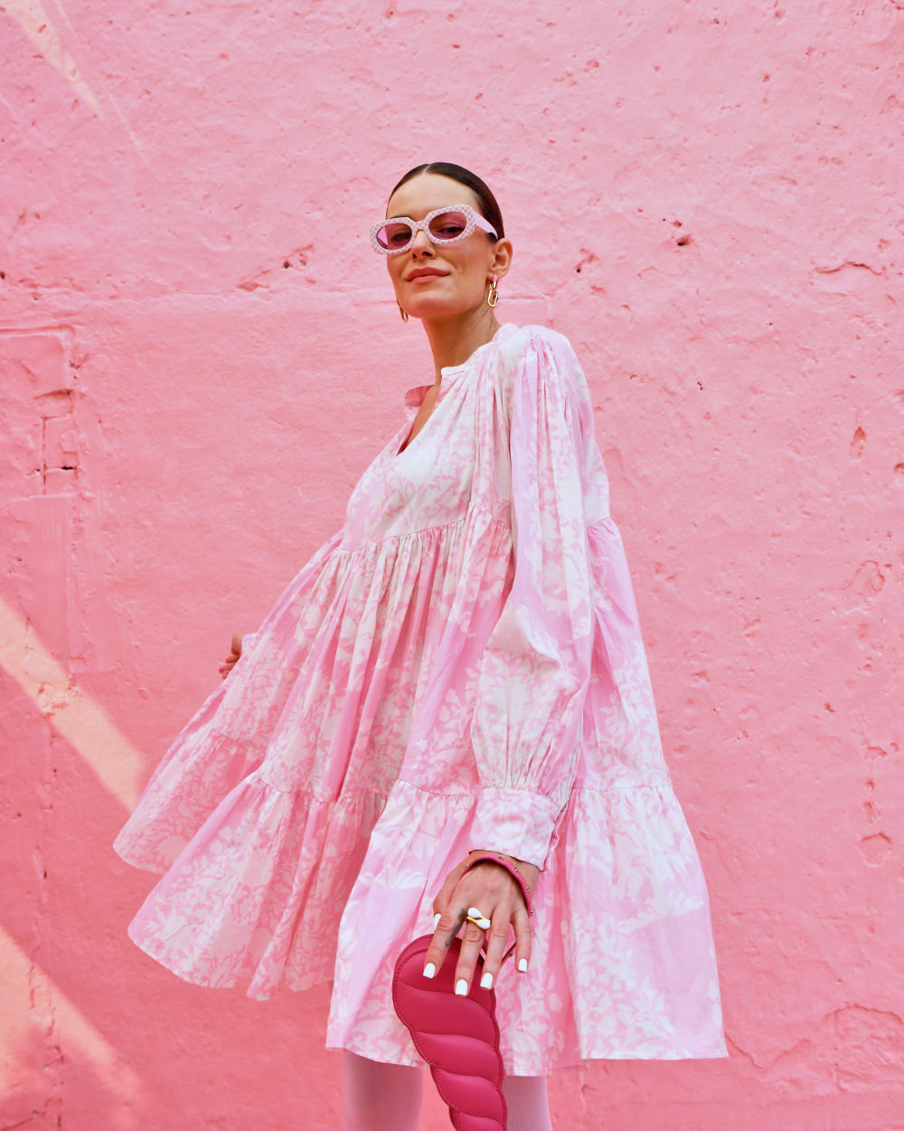 This dress is handblock printed by our partner artisans in the nearby village of Sanganer.