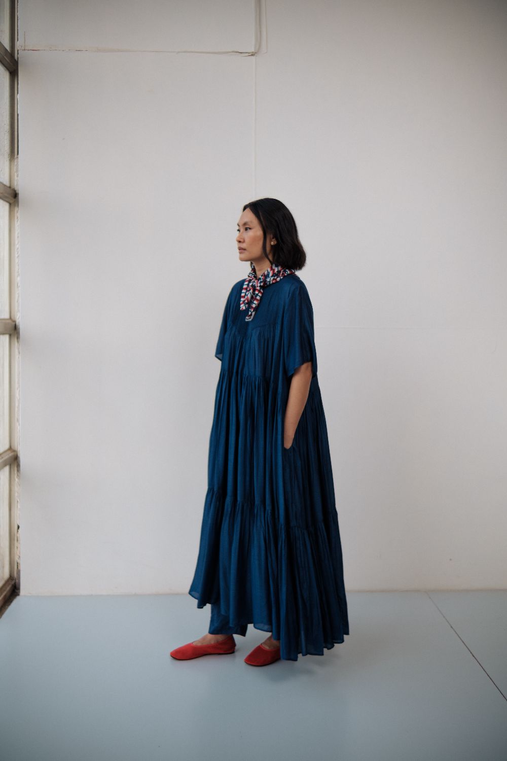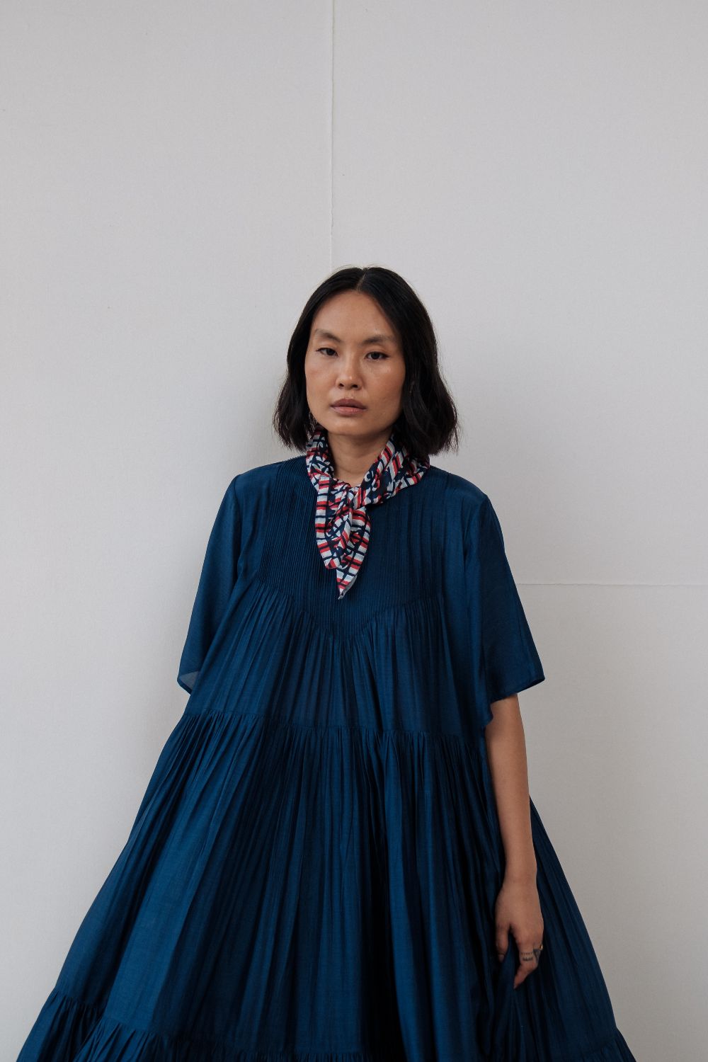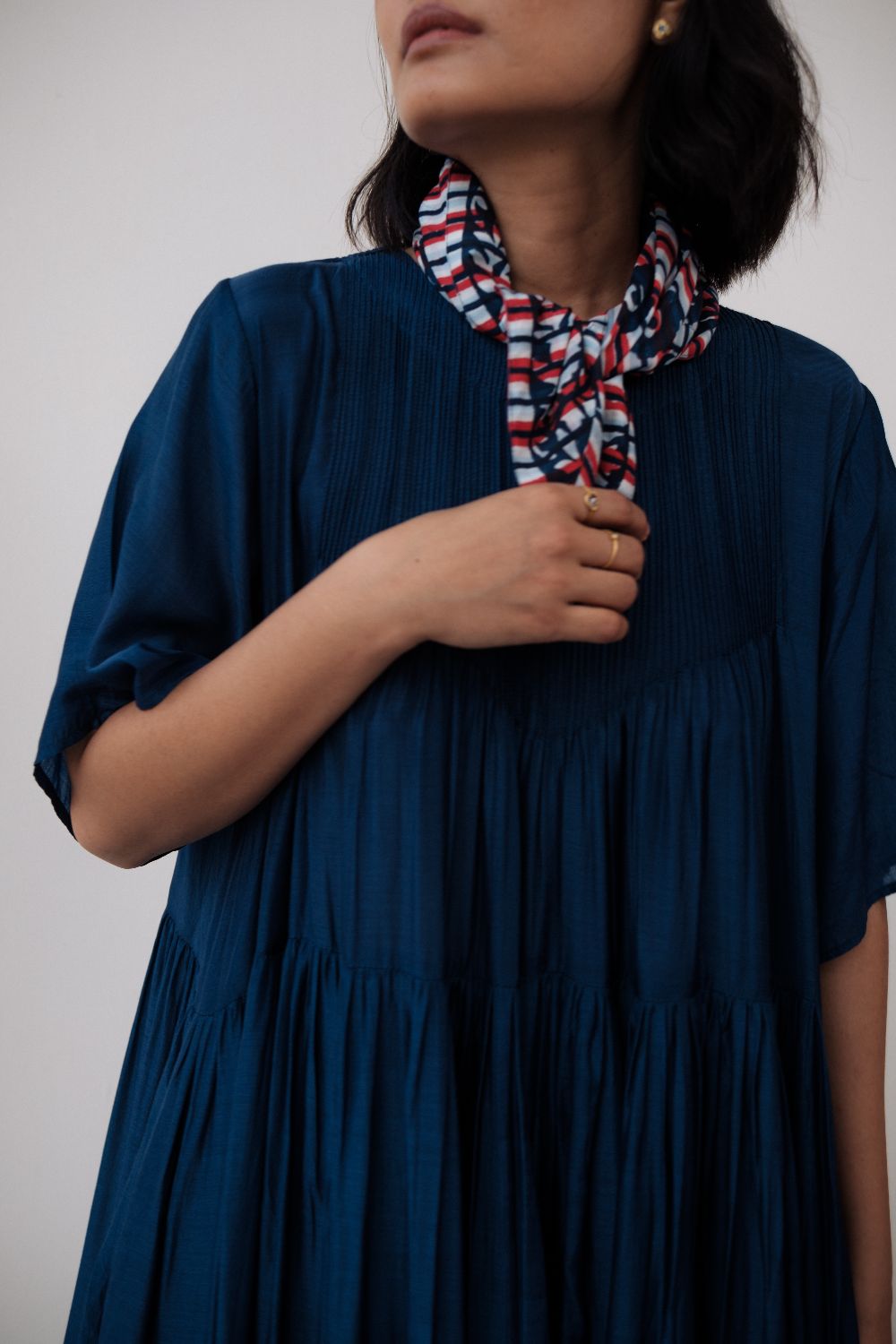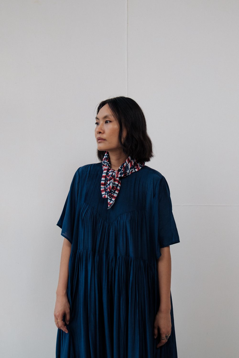 Bamber modal dress with details in front and back.Seen here paired with a hand-block printed bandana in cotton.