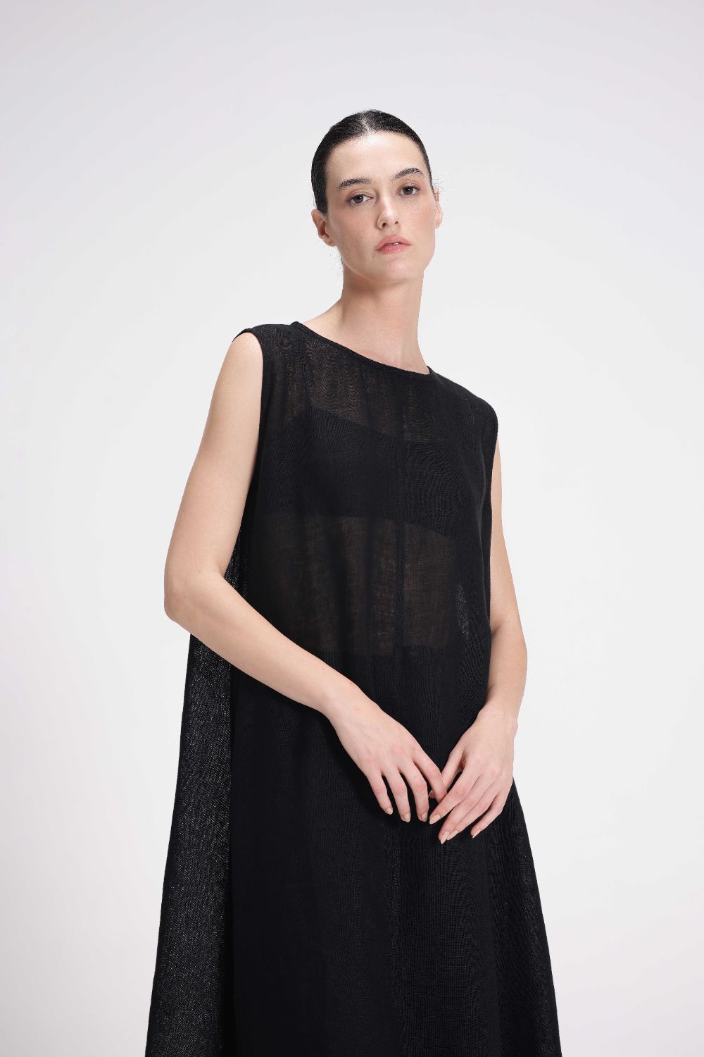 The slip dress comes with a flattering round neck and a mid-length A-line silhouette. Crafted in delicate linen gauze it is perfectly versatile for layering or wearing as a single piece. Since it’s sheer, you’ll need to wear something underneath.