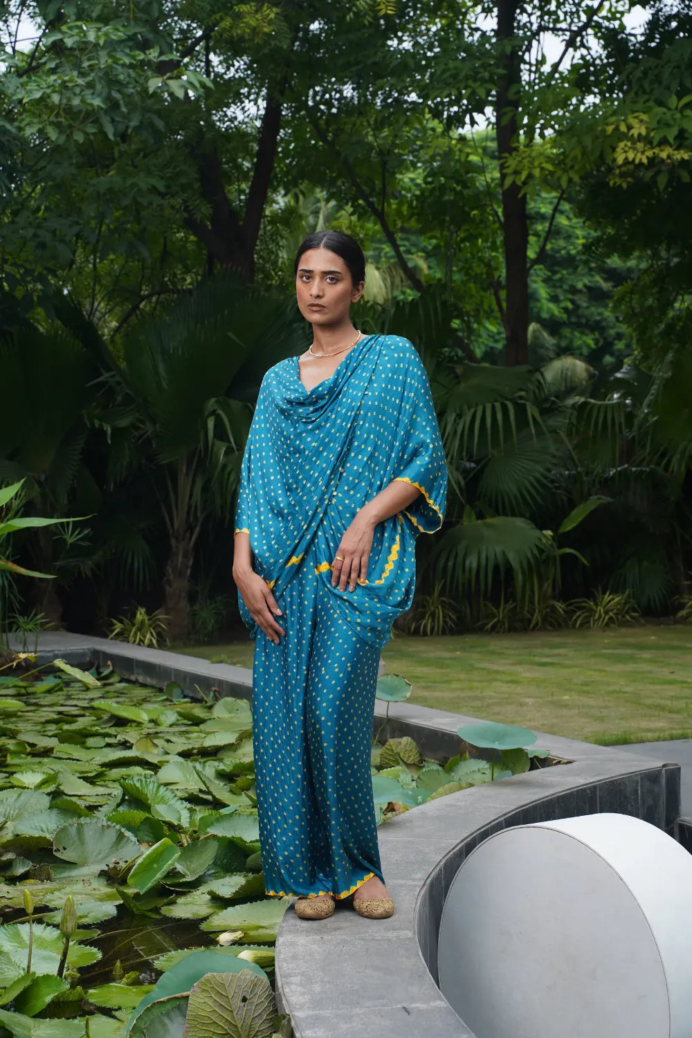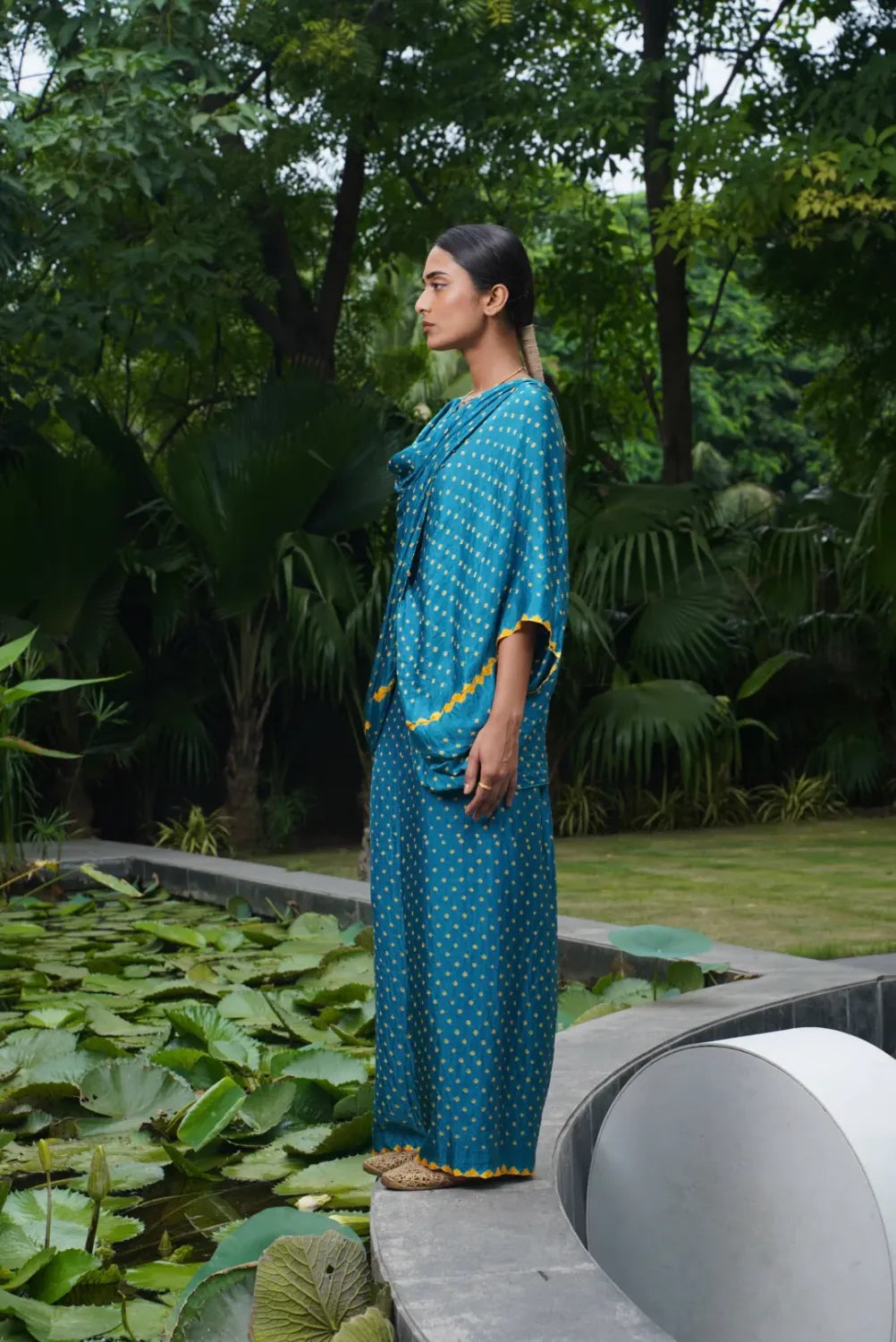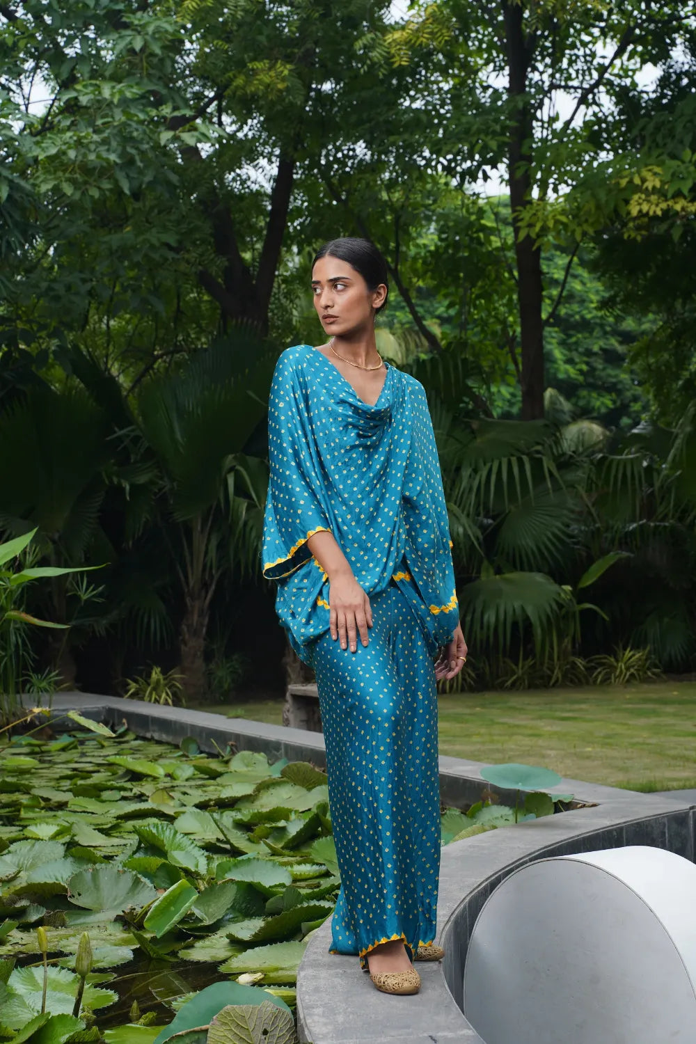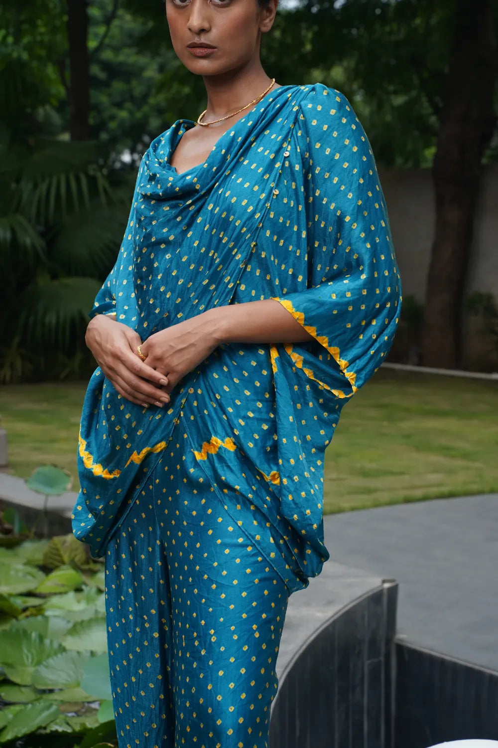 Heritage, Evolved: Dyelogue retains the soul of Bandhani — the delicate dots, the meditative tying process — but refreshes it through global cuts and fluid forms.