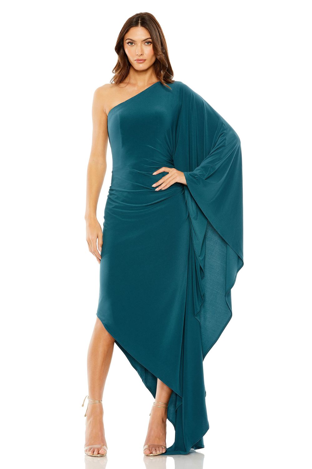 One Shoulder Cape Sleeve Ruched Detail Jersey Gown
