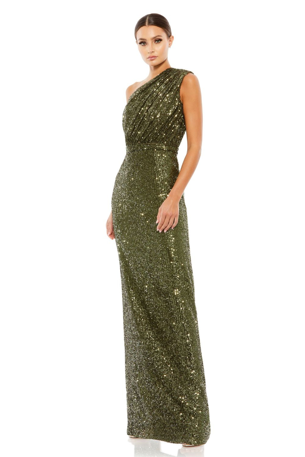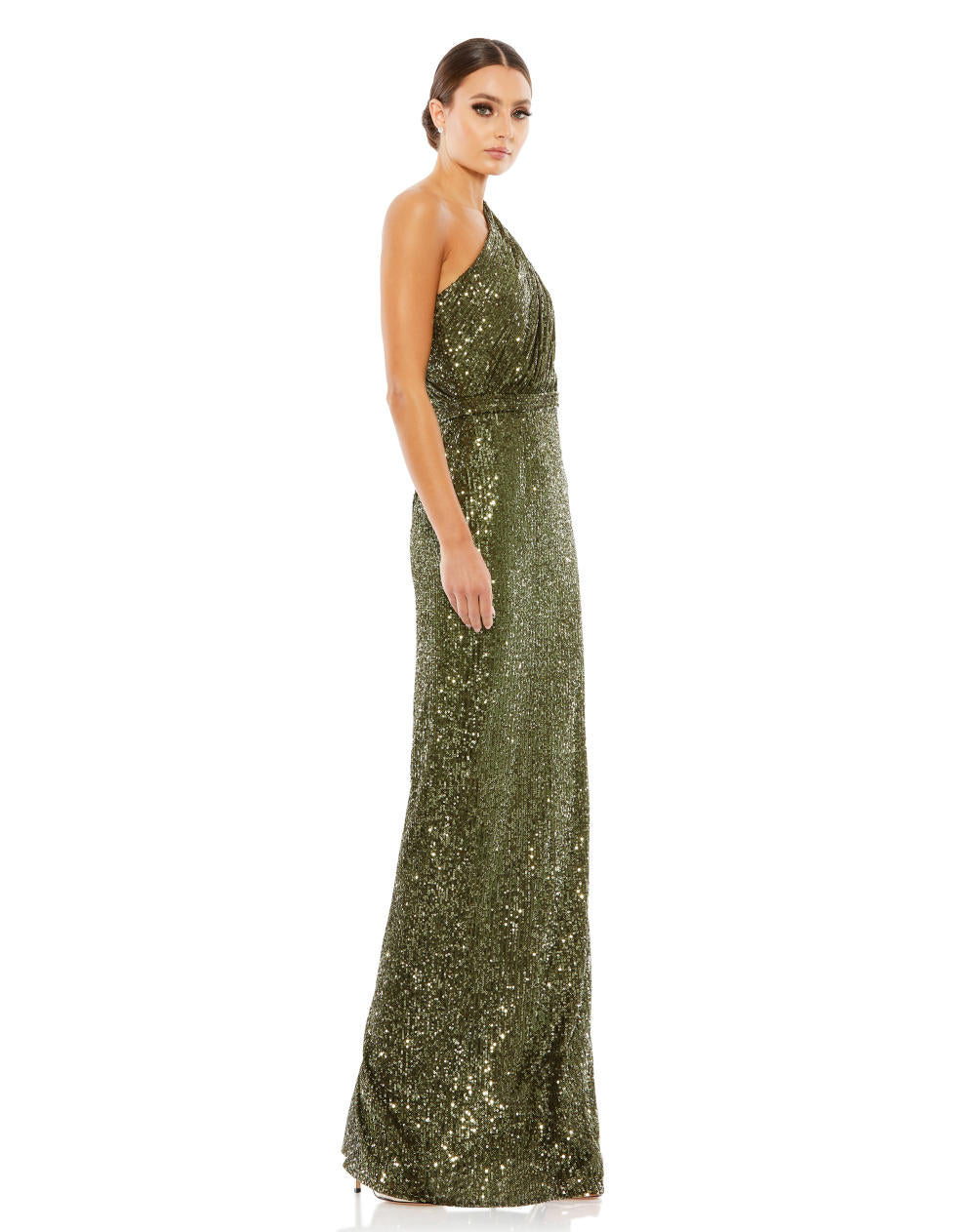 Illuminate the night in our Sequined Ruched One Shoulder Gown, crafted from dazzling sequin fabric, this gown is a show-stopping look. Featuring a chic one-shoulder neckline and sleeveless design, it's is your go-to for making a statement at any special occasion.