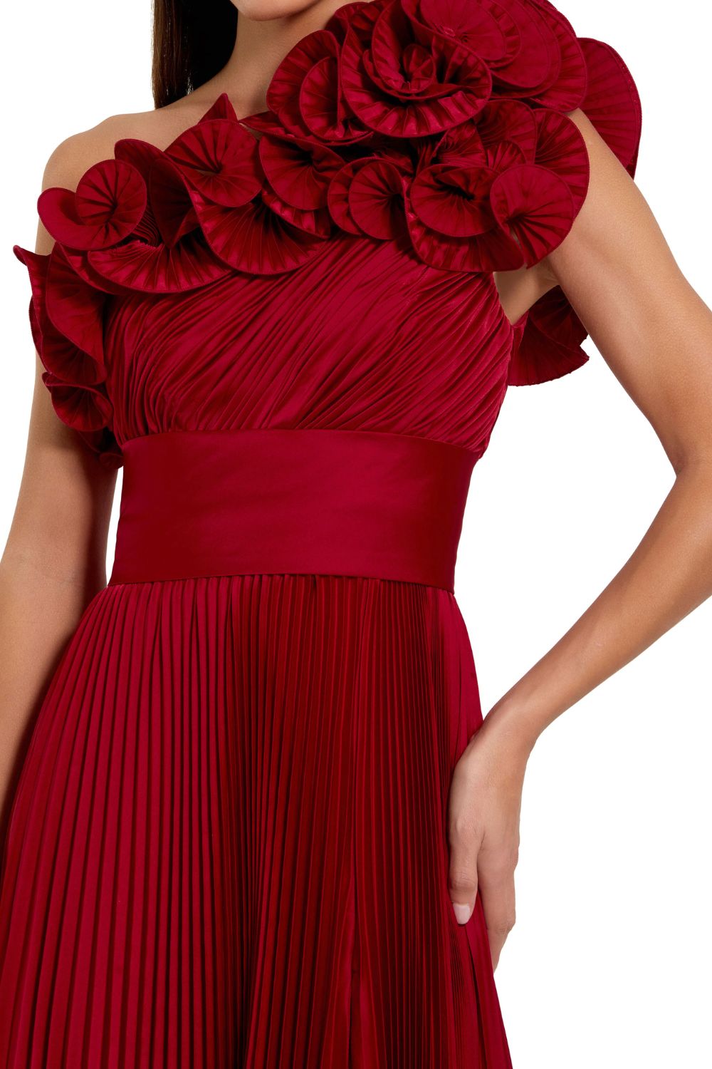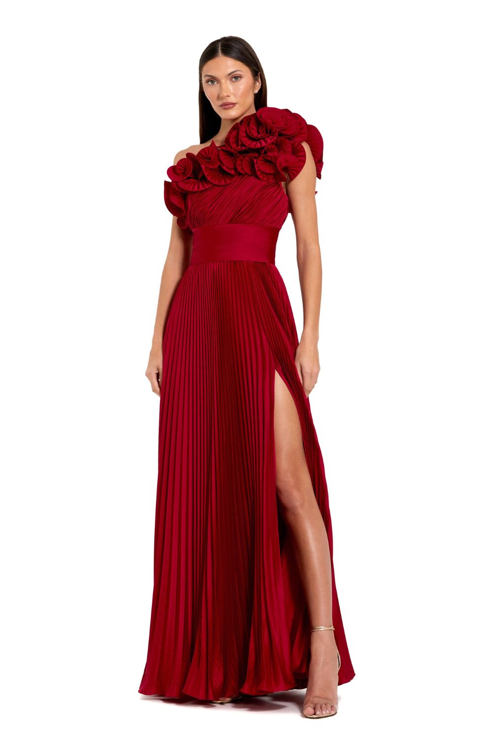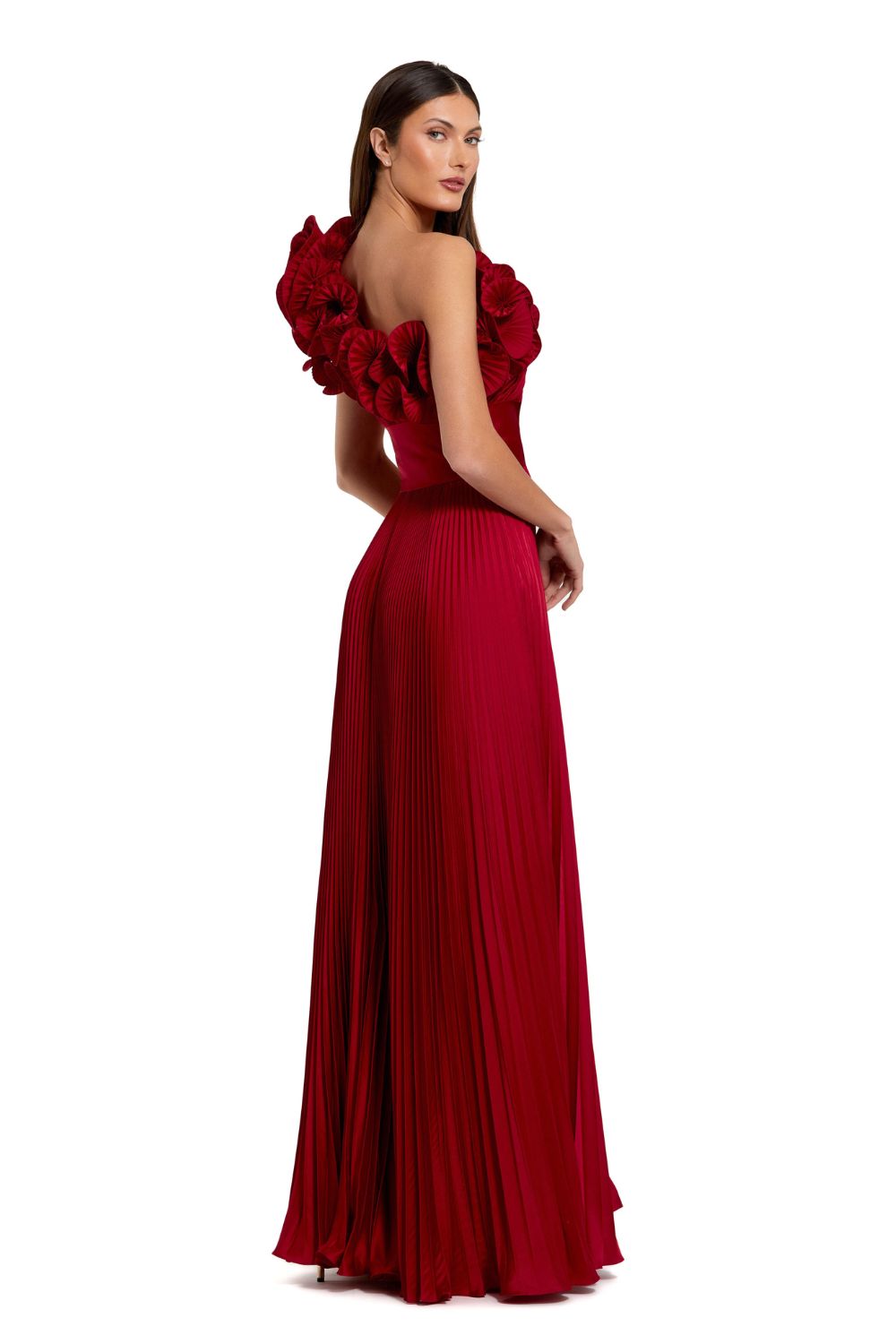 49902-Pleated Charmeuse One Shoulder Ruffle Gown