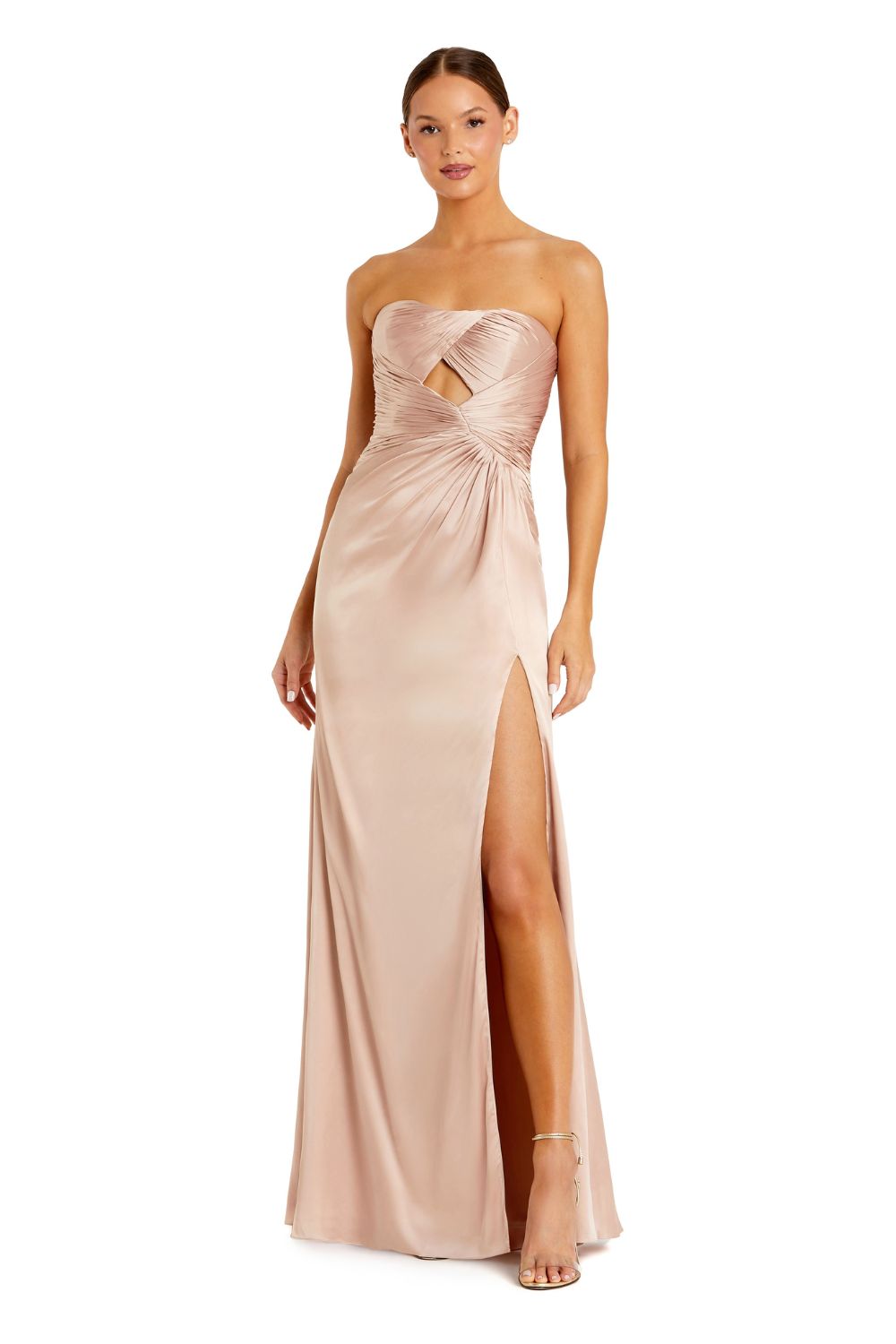 Pink Strapless Charmeuse Wrap Gown With Cutout Detail
