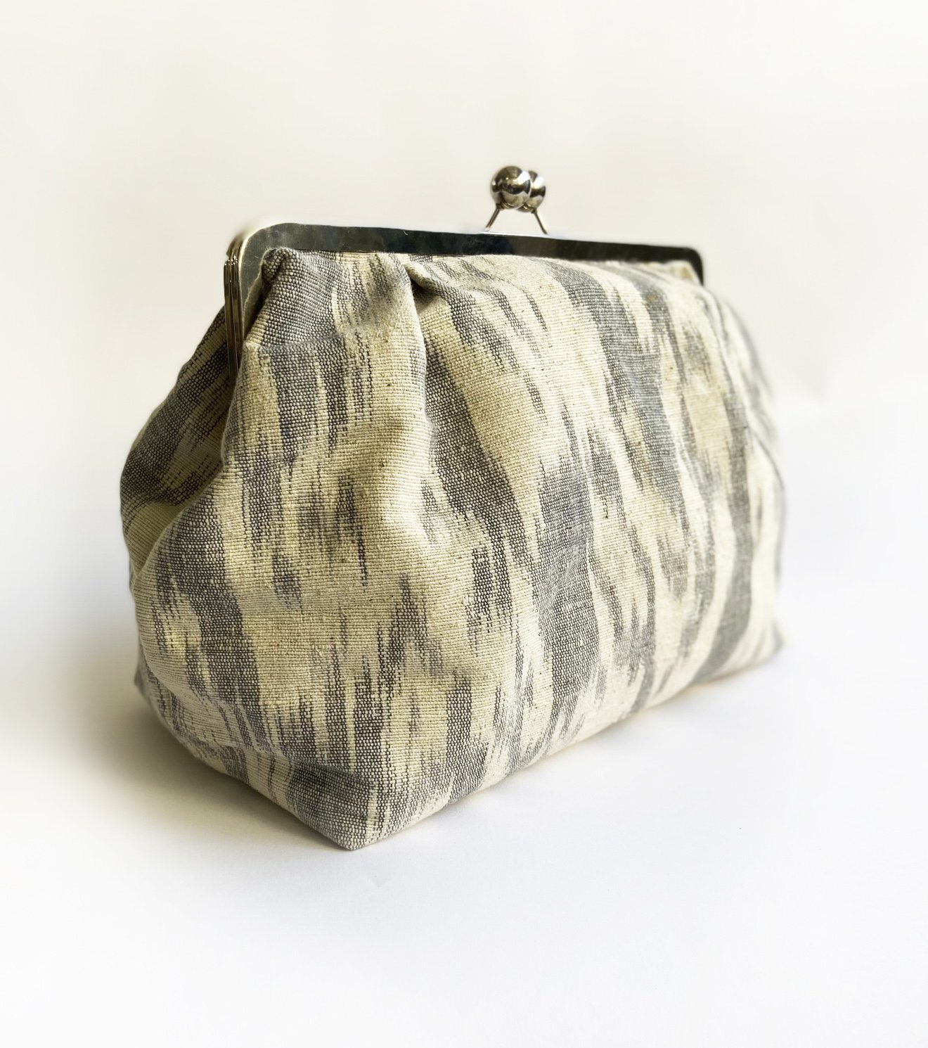 A spacious ikat clutch handcrafted in handloom cotton. She comes with two inside pockets. A perfect bag to carry when you want to carry your essentials and standout at the same time.