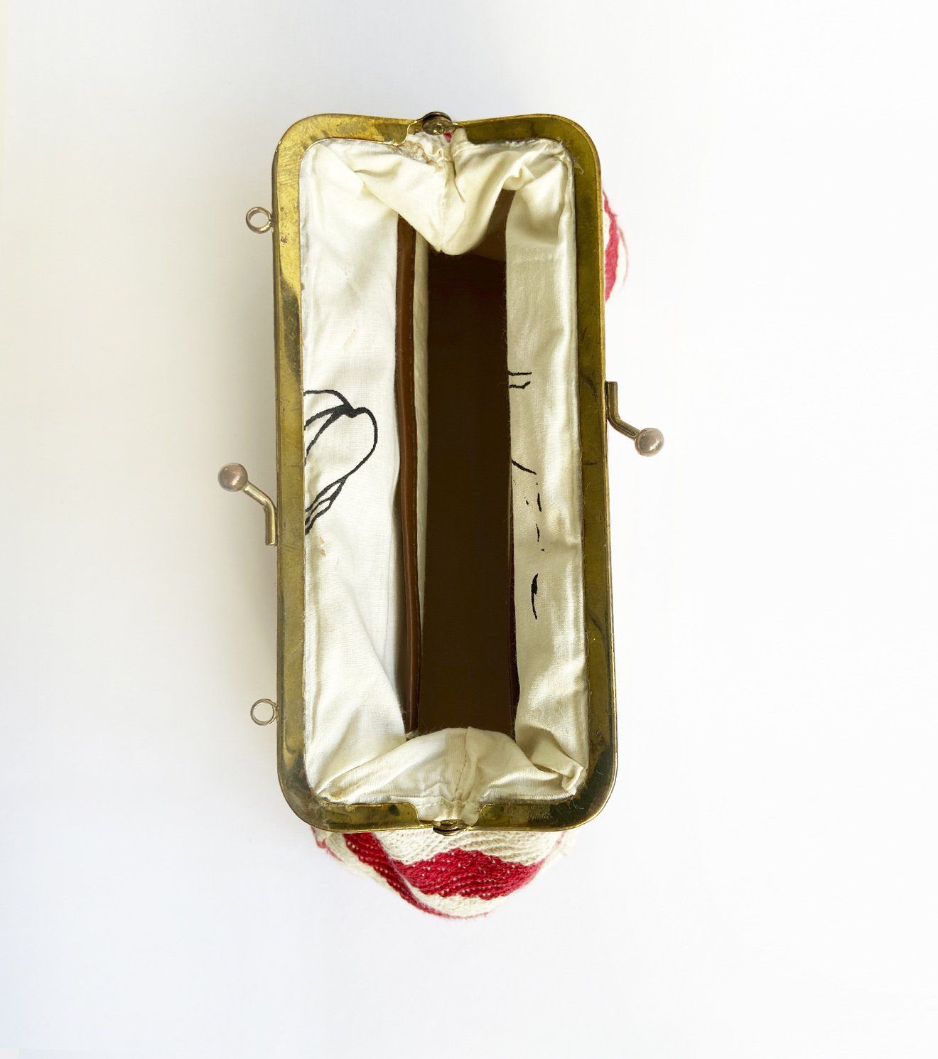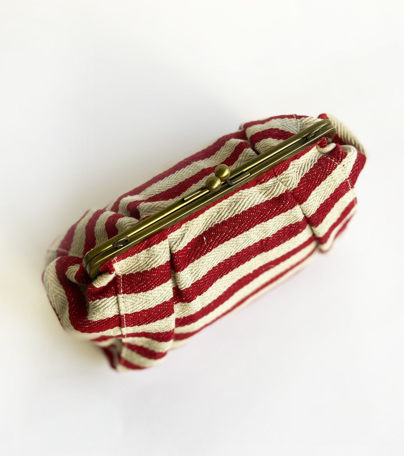 A red striped clutch handcrafted in handloom cotton. She comes with two inside pockets. A perfect bag to carry when you want to carry your essentials and standout at the same time.