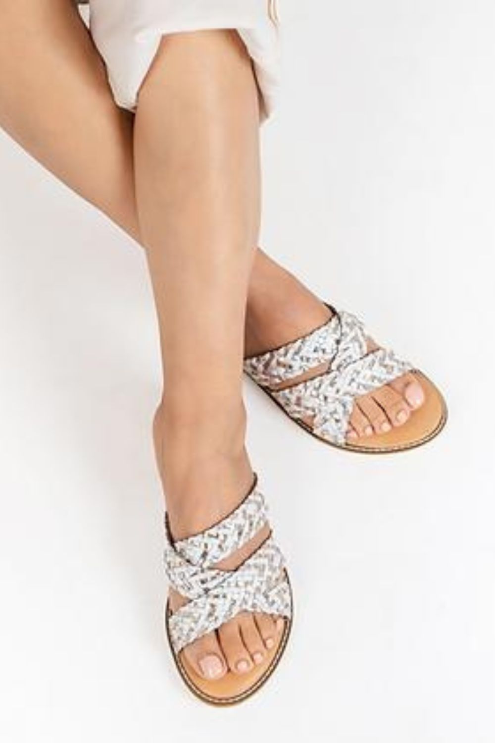 Handcrafted slides in shades of light, designed for those who want to wander and explore new sights. Comfortable flats with woven straps, the Drifters travel with you whenever your thoughts drift to new lands. Best worn for a day out on the boardwalk, sipping sangria and taking in the sunlight.