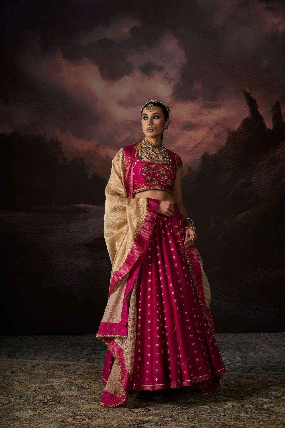 Her Chanderi carries its signature translucence and soft sheen, but with a subtlety that feels almost ethereal — printed slowly, consciously, through hand block printing that heightens the fabric's inherent delicacy.