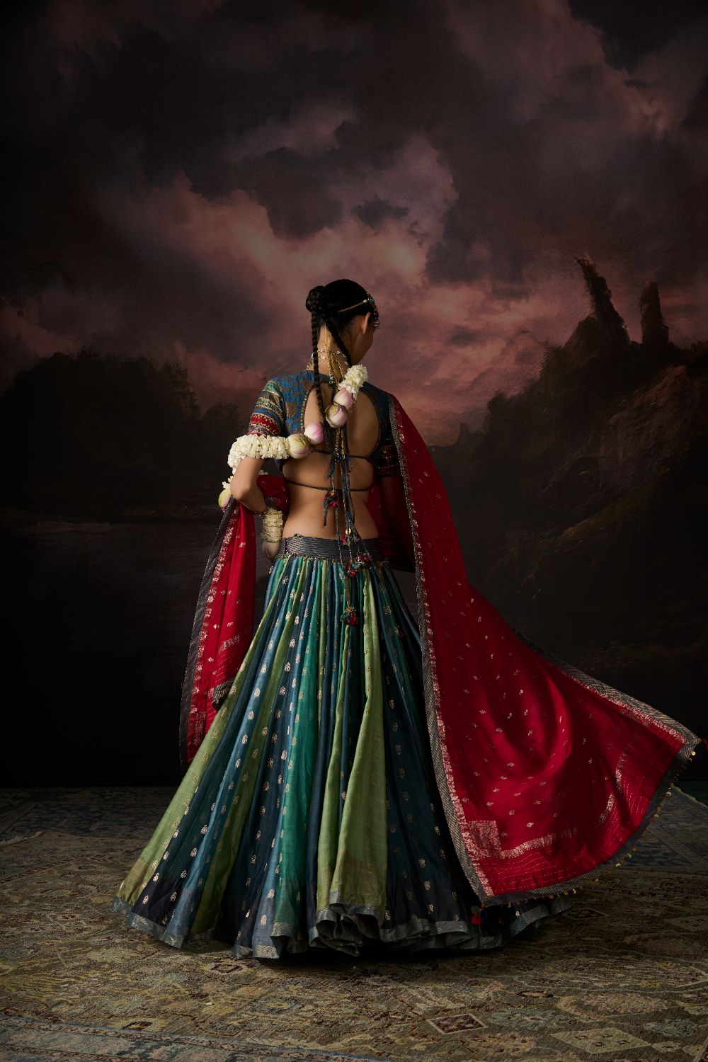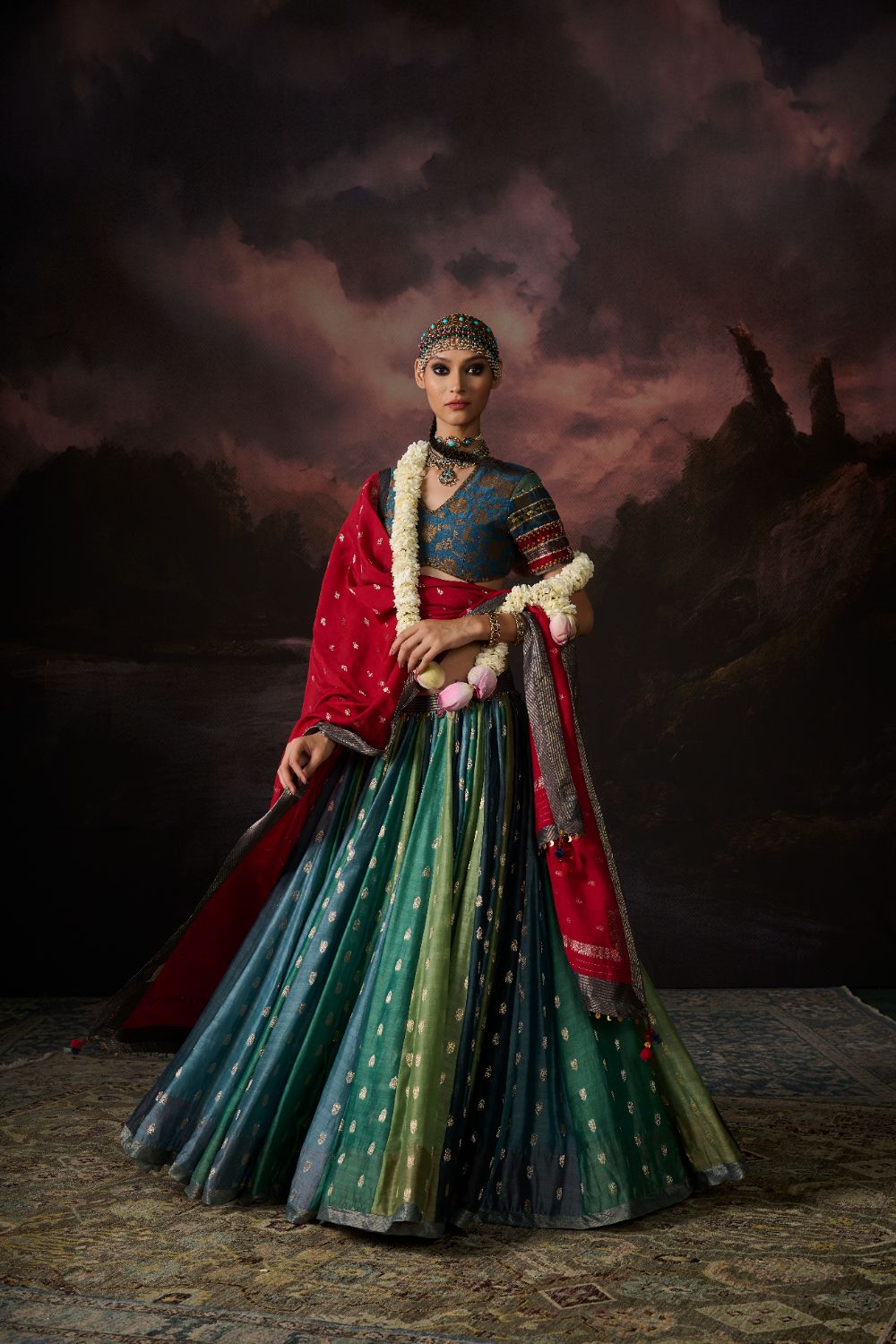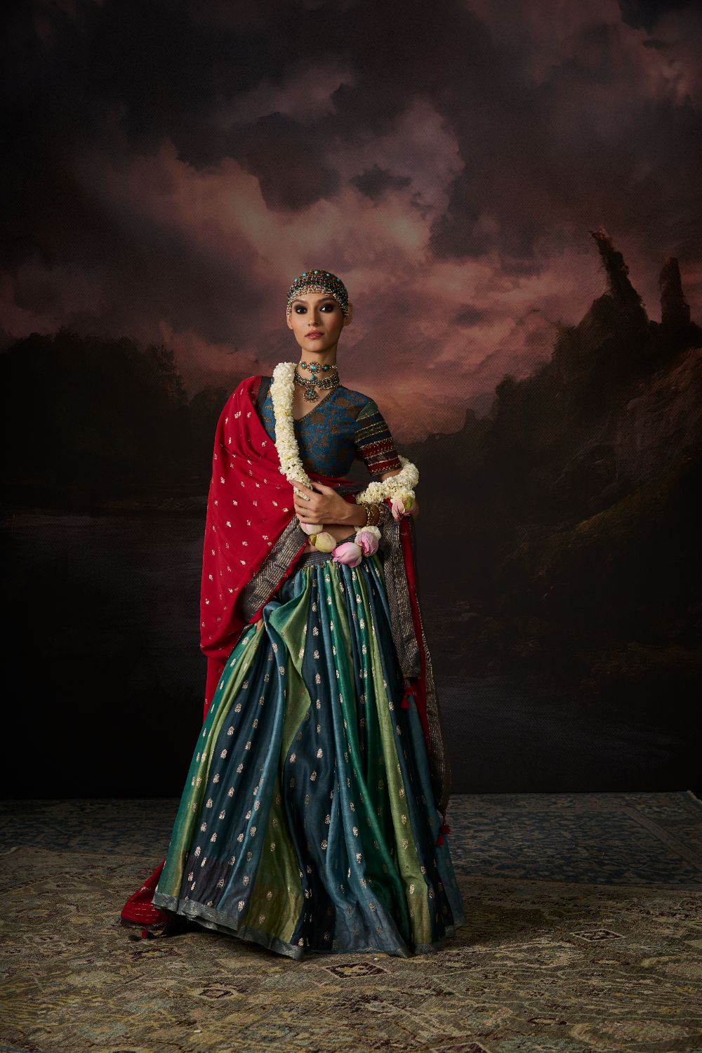 Her Chanderi carries its signature translucence and soft sheen, but with a subtlety that feels almost ethereal — printed slowly, consciously, through hand block printing that heightens the fabric's inherent delicacy.