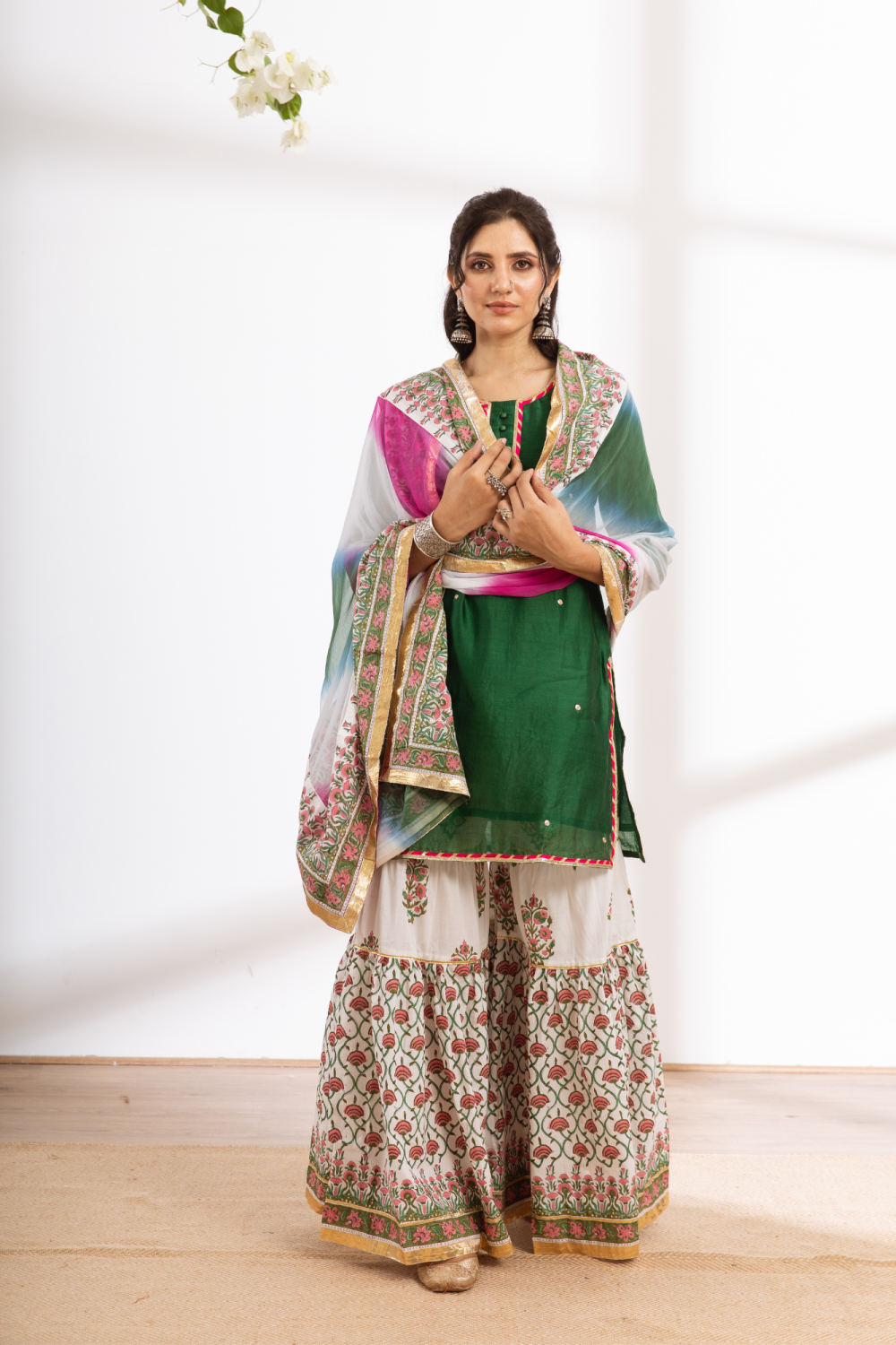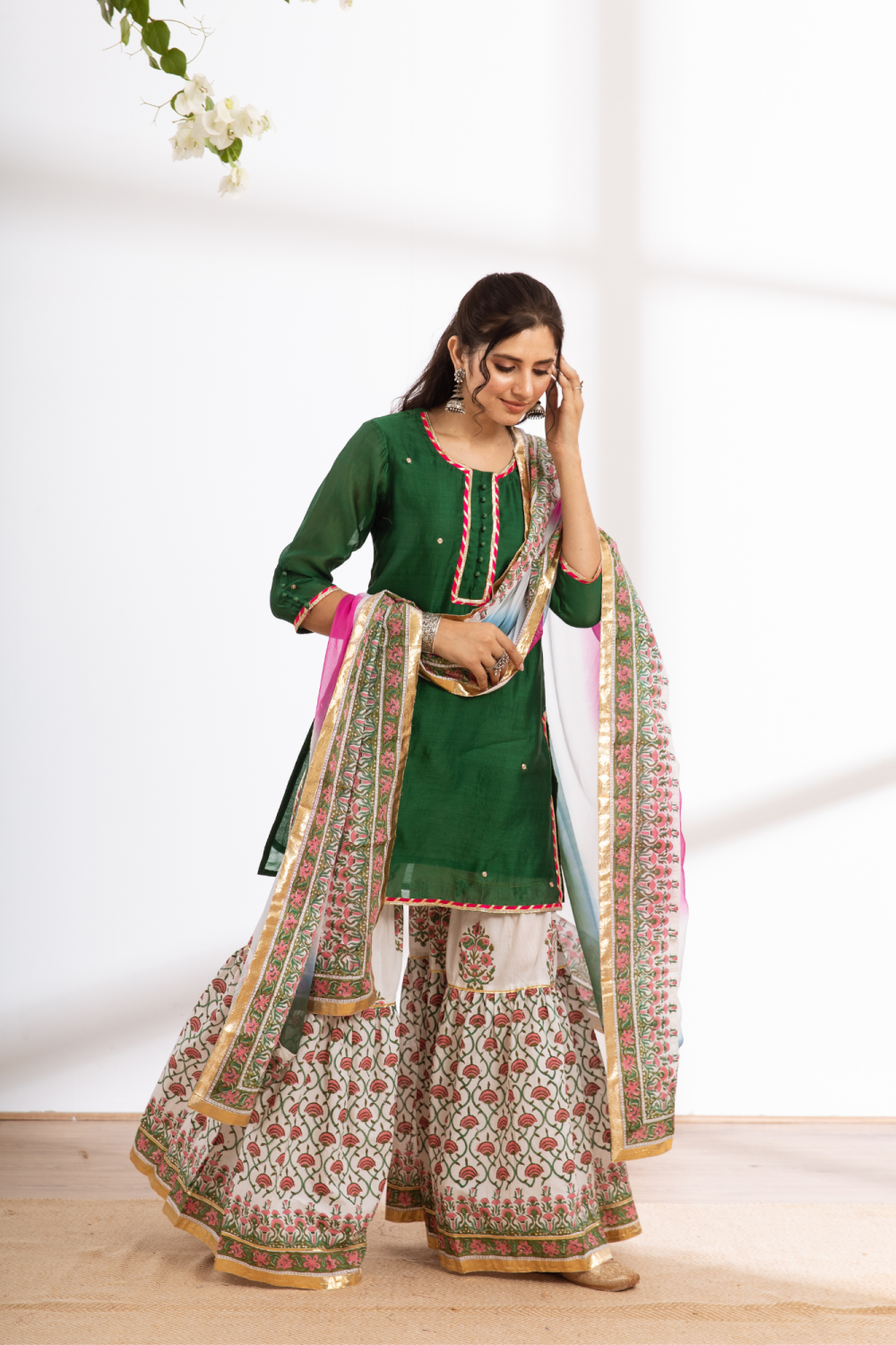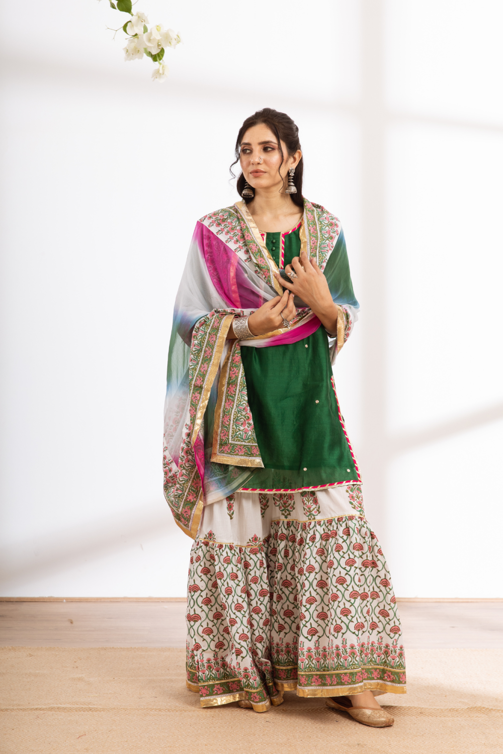 Rasika Harita Sharara Set - green hand block printed chanderi sharara set