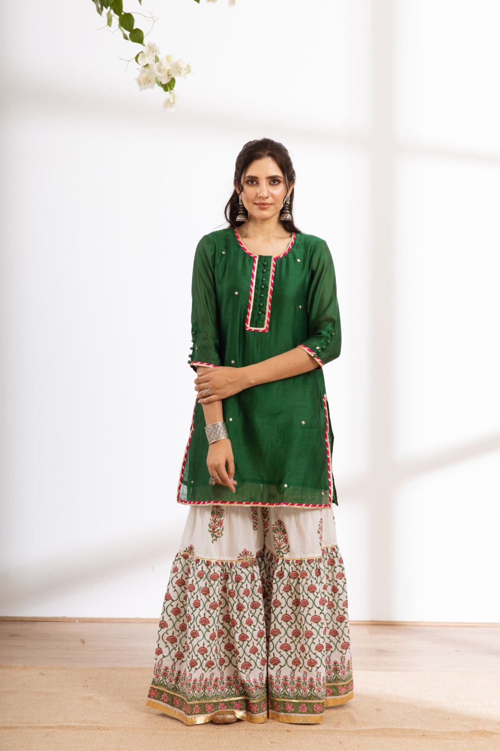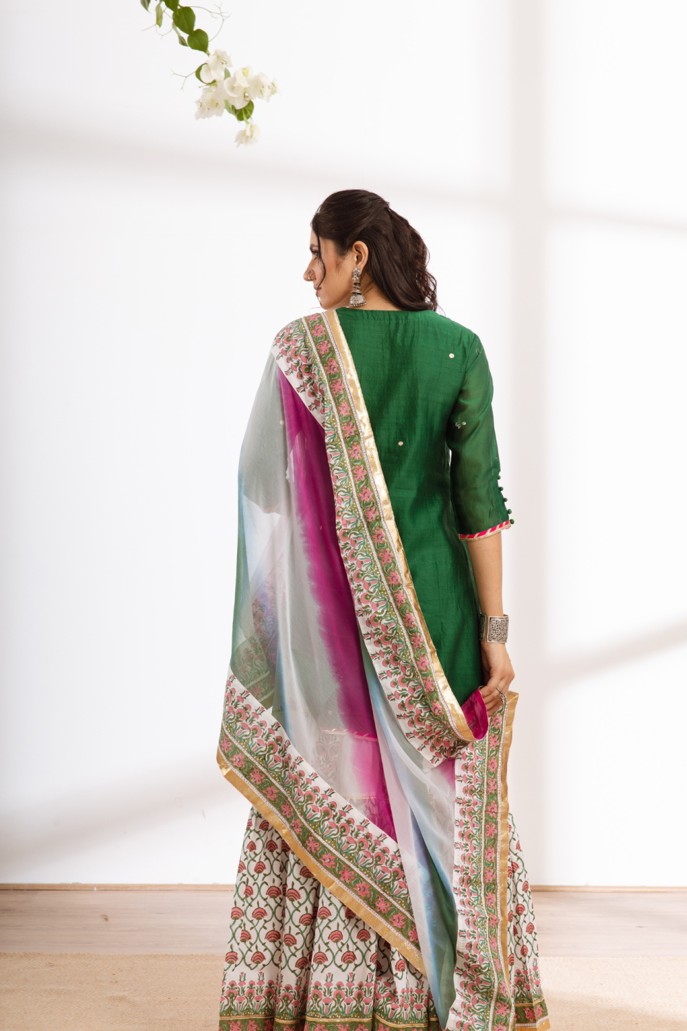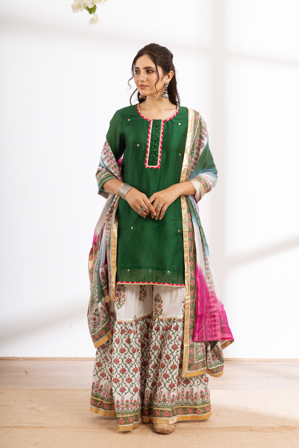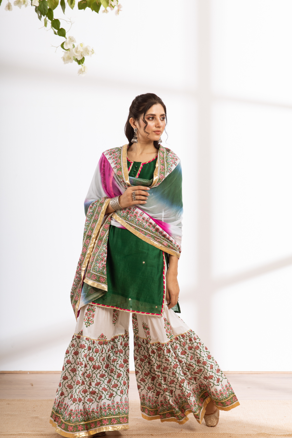 Rasika Harita Sharara Set - green hand block printed chanderi sharara set
