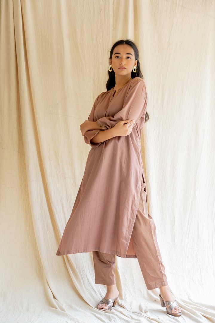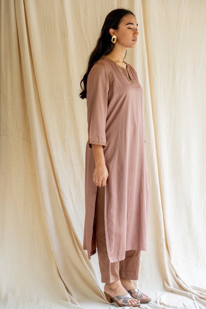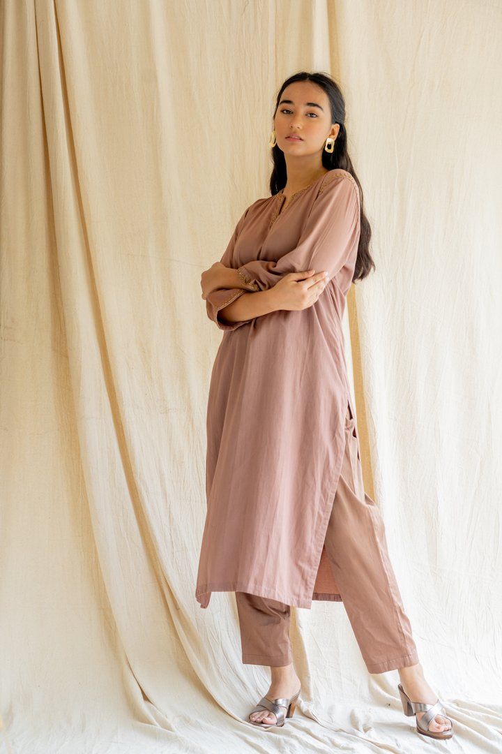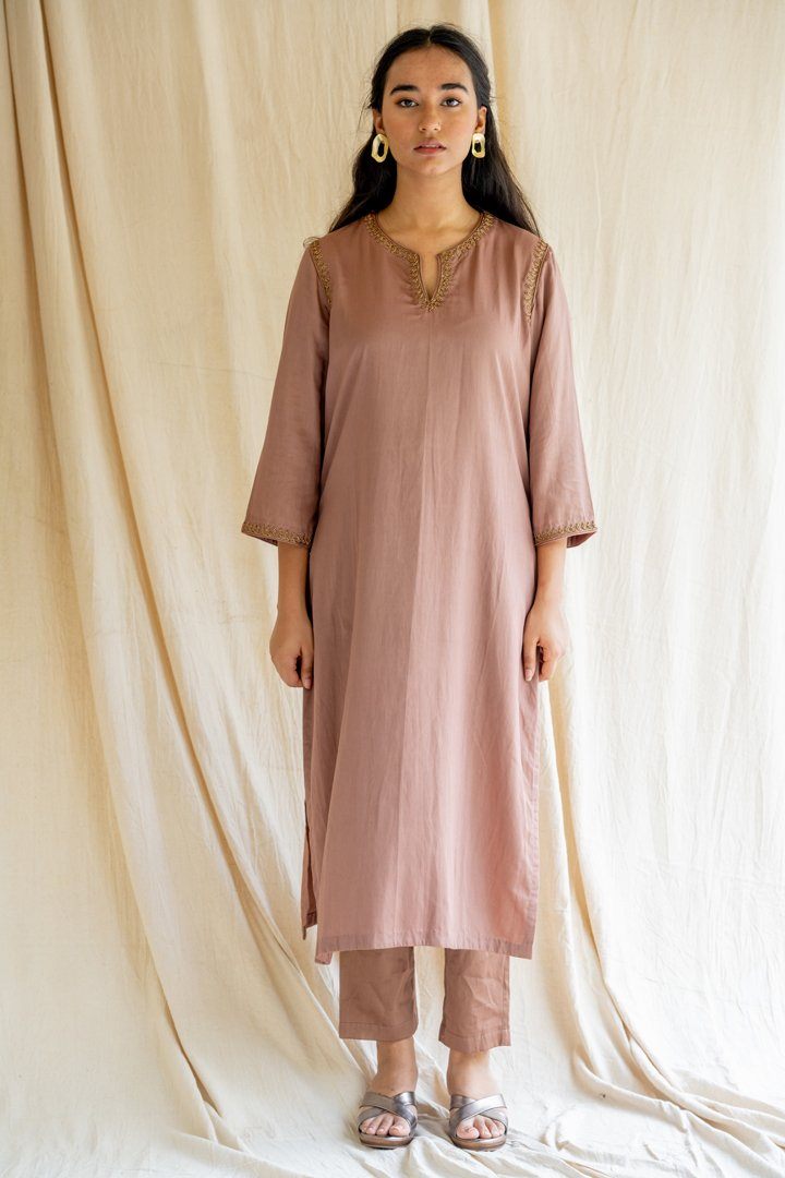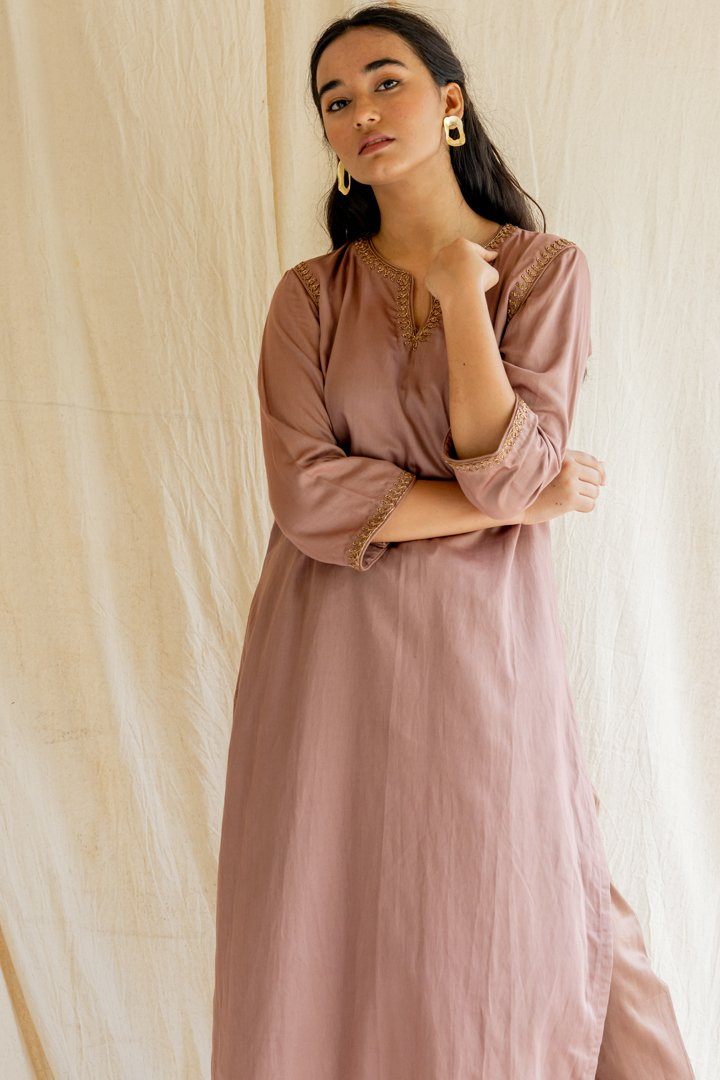 Old Rose Chaand Kurta Set Fashion Nirjara
