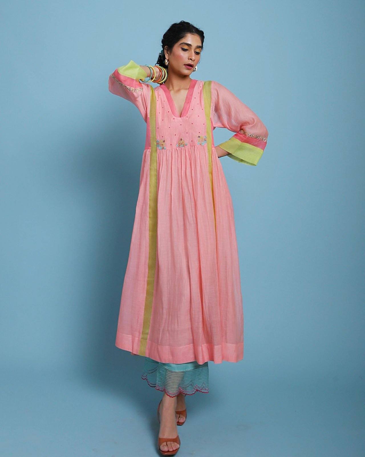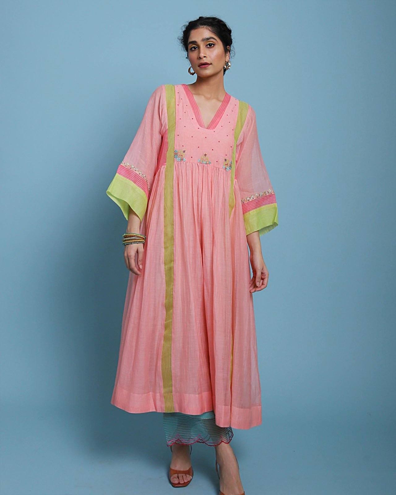 Their work is an ode to handcrafted Indian design — rooted in traditional embroidery techniques like zardozi, dabkaa, and fine threadwork, yet shaped into silhouettes that feel refreshingly contemporary. Clean cuts, relaxed forms, pure fabrics, and a distinctive palette come together to create pieces that travel seamlessly from India to Singapore and beyond.
